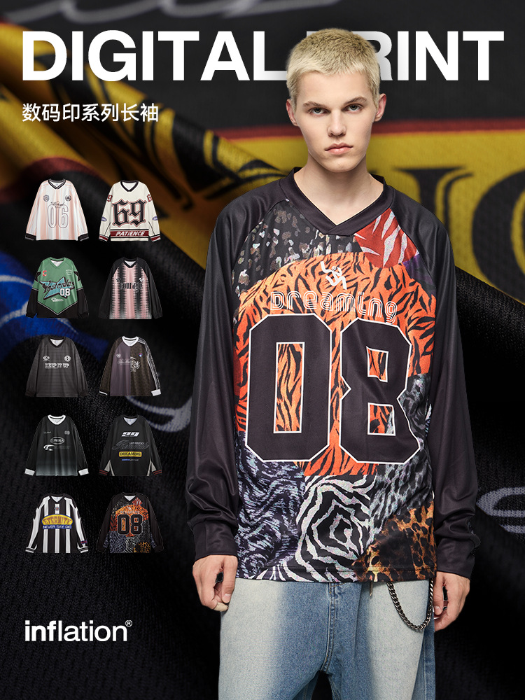 Pakaian Pria Jie Zhan | Kaus Olahraga Retro Amerika Cetak Digital 2025 Musim Gugur Merek Fashion Baru Pria Lengan Panjang Tipis Jalanan