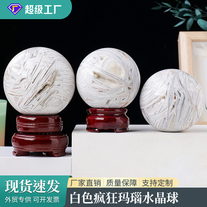 Ornamen hiasan rumah batu akik putih alami, bola kristal batu akik mengkilat batu kristal lubang kristal