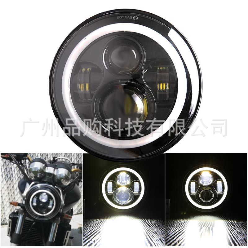 Lampu depan led mobil 7 inci, lampu depan mobil Harley off-road kendaraan lintas batas mata malaikat diskon besar