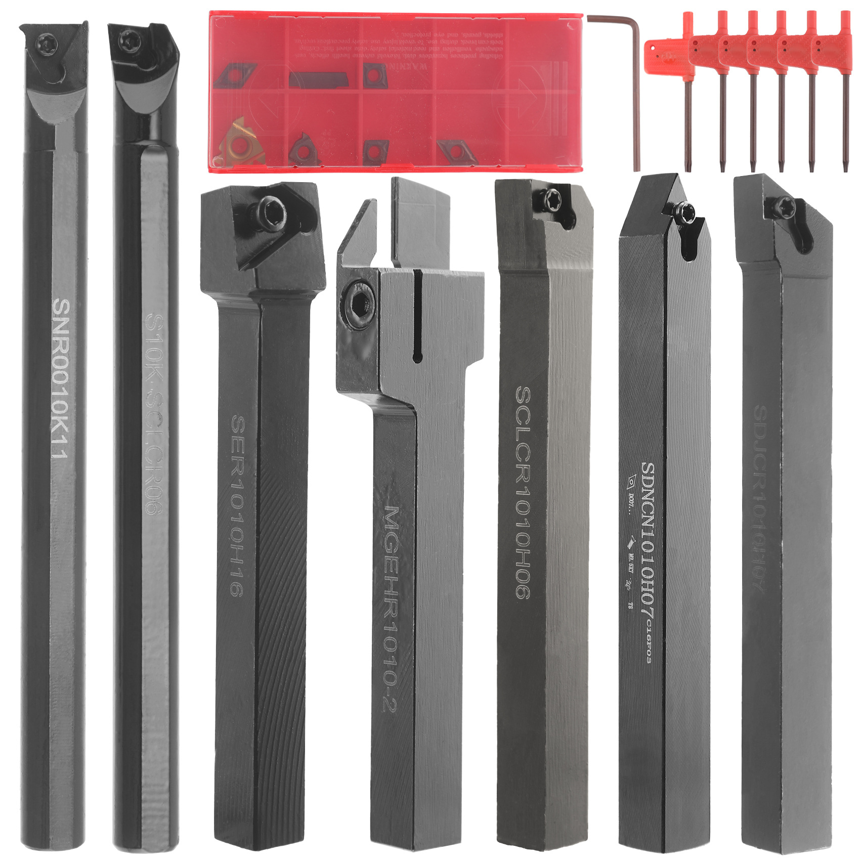 Set alat bubut lintas batas 7 buah, pemegang alat putar 10mm CNC 7 batang alat + 7 pisau + 7 kunci pas