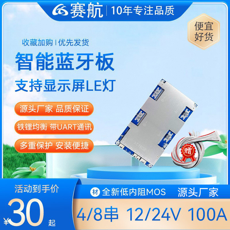 Saiwei Hang Memimpin Ke Papan Perangkat Lunak BMS Lithium Aplikasi Bluetooth Bawaan dengan 4 Senar Seimbang dan 8 Senar Papan Perlindungan Baterai Lithium 100A
