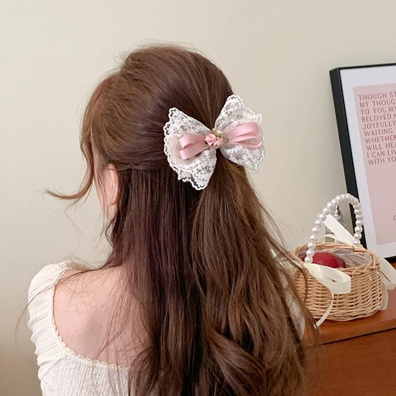 Klip bebek renda indah musim semi dan musim panas klip rambut setengah dasi selebriti internet manis aksesori rambut busur suasana bunga