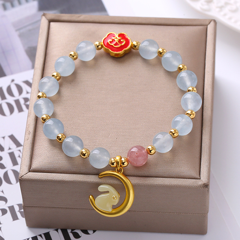 Gelang kelinci giok kristal aquamarine gaya baru gelang kelinci pelajar pacar gaya Tiongkok retro hadiah gelang Kelinci kristal