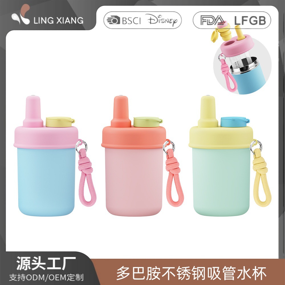 Internet selebriti portabel cangkir jerami portabel cangkir kopi tampilan tinggi cangkir pemisah teh cangkir termos anak-anak lucu cangkir perut besar