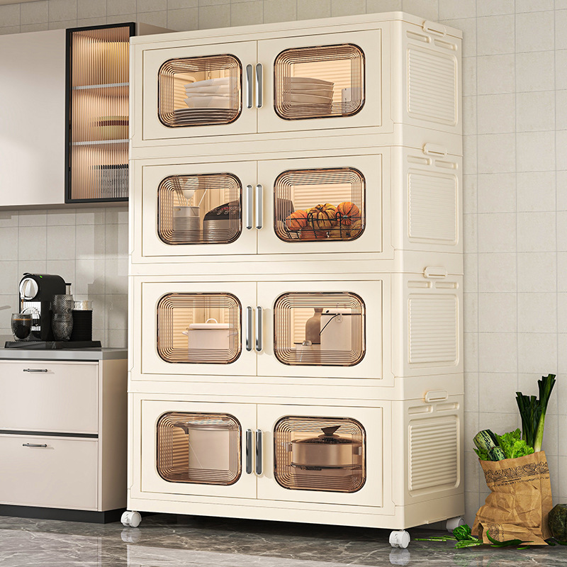 Kabinet penyimpanan pintu ganda lipat, pemasangan gratis 80cm lemari mainan loker plastik pakaian anak-anak lemari makanan ringan