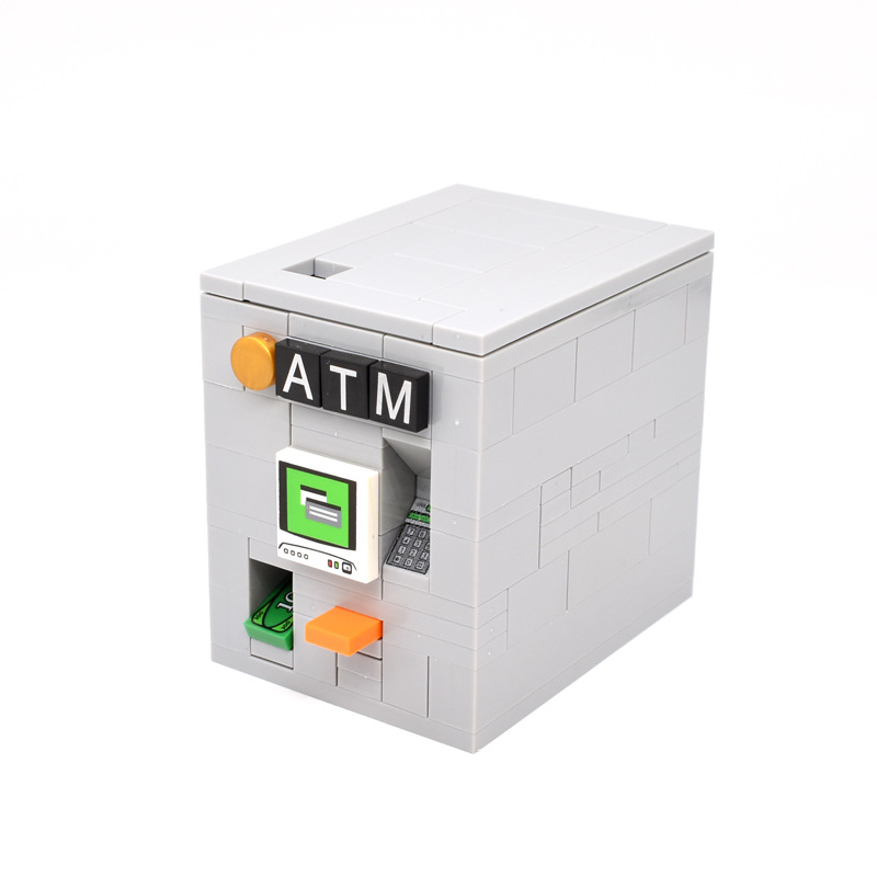 Blok bangunan partikel kecil domestik anak-anak, mainan blok bangunan kreatif dapat digerakkan, mesin uang ATM