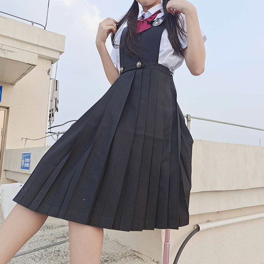 Gaun Perawatan Jepang jk rok berlipat anak perempuan seragam biru gelap leher V gaun rompi gaun dalam stok pengiriman satu bagian