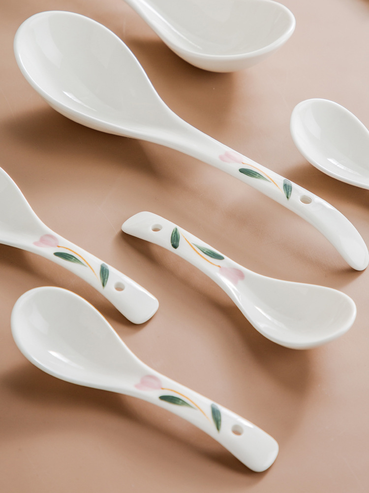 Sendok keramik rumah tangga gaya Jepang, sendok sup besar, sekop, sup besar, sendok makan, porselen, sendok sup kecil