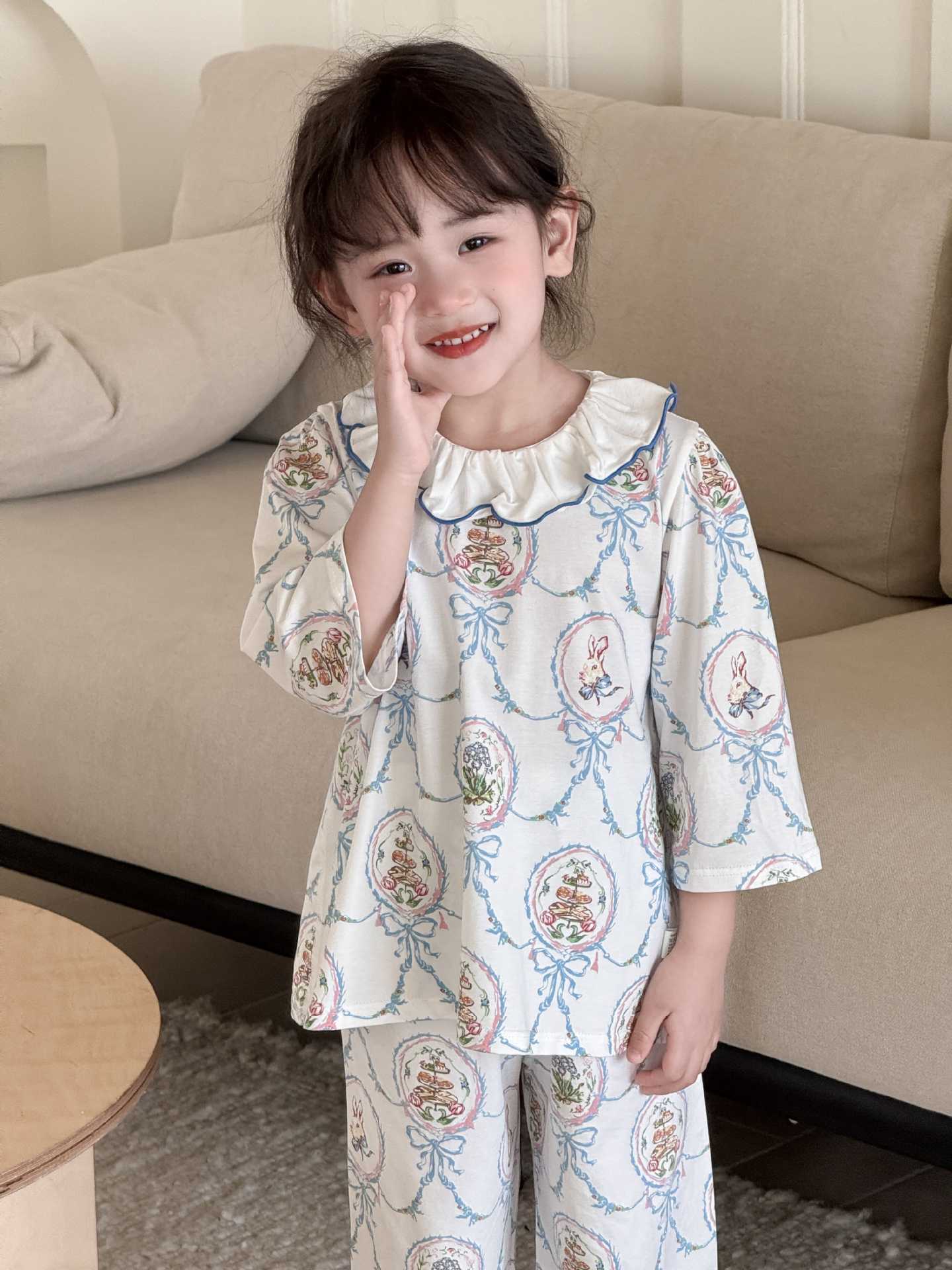 Baju Tidur Anak Perempuan Kerah Renda Renda Kecil Kelas A Pakaian Rumah Anak Perempuan Anak Perempuan Sedang Besar Setelan Pakaian Anak-Anak Gaya Instagram