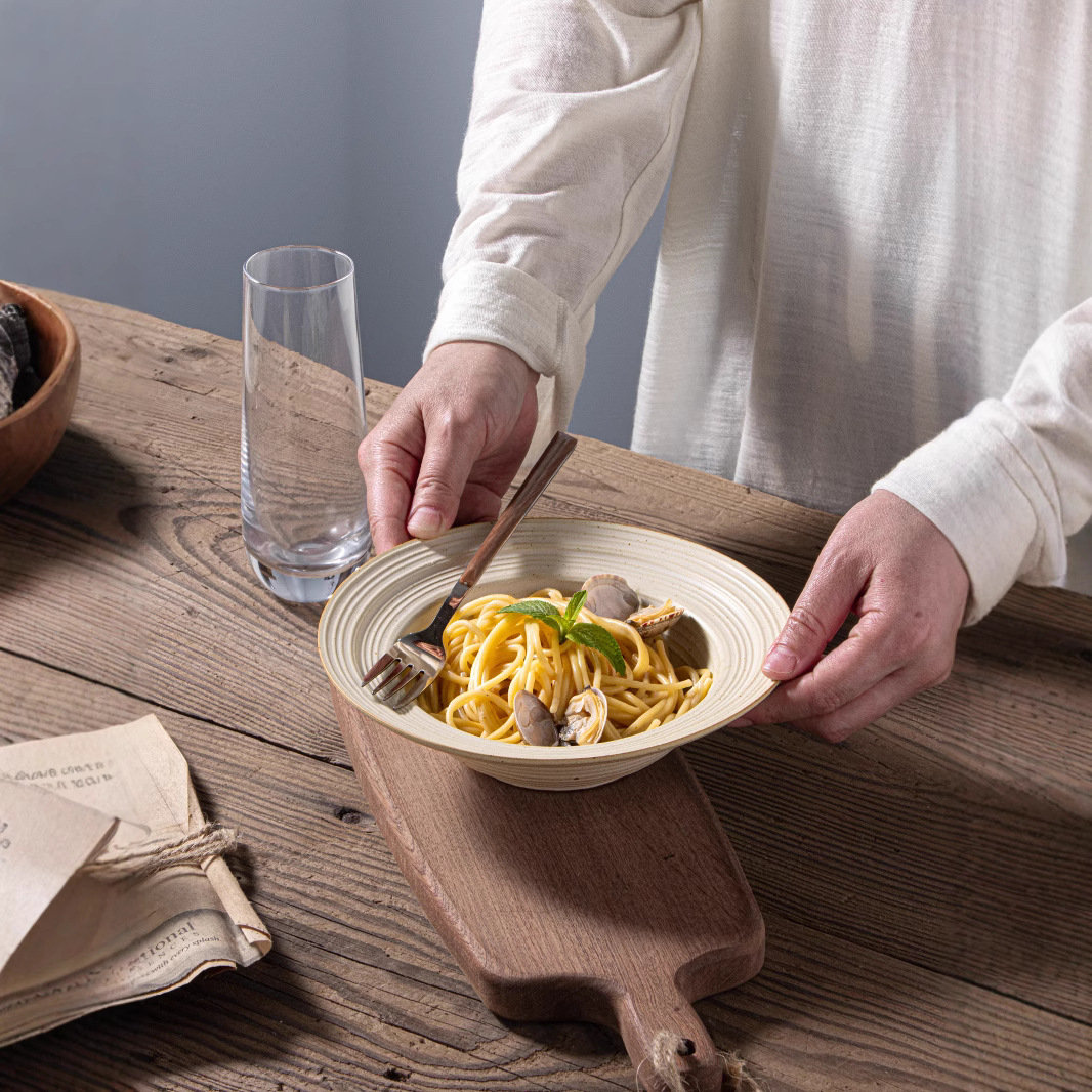 Peralatan makan keramik gaya Jepang INS buatan tangan, toples vintage bertema jerami, piring pasta, mangkuk kreatif, sumpit, piring salad untuk penggunaan di rumah