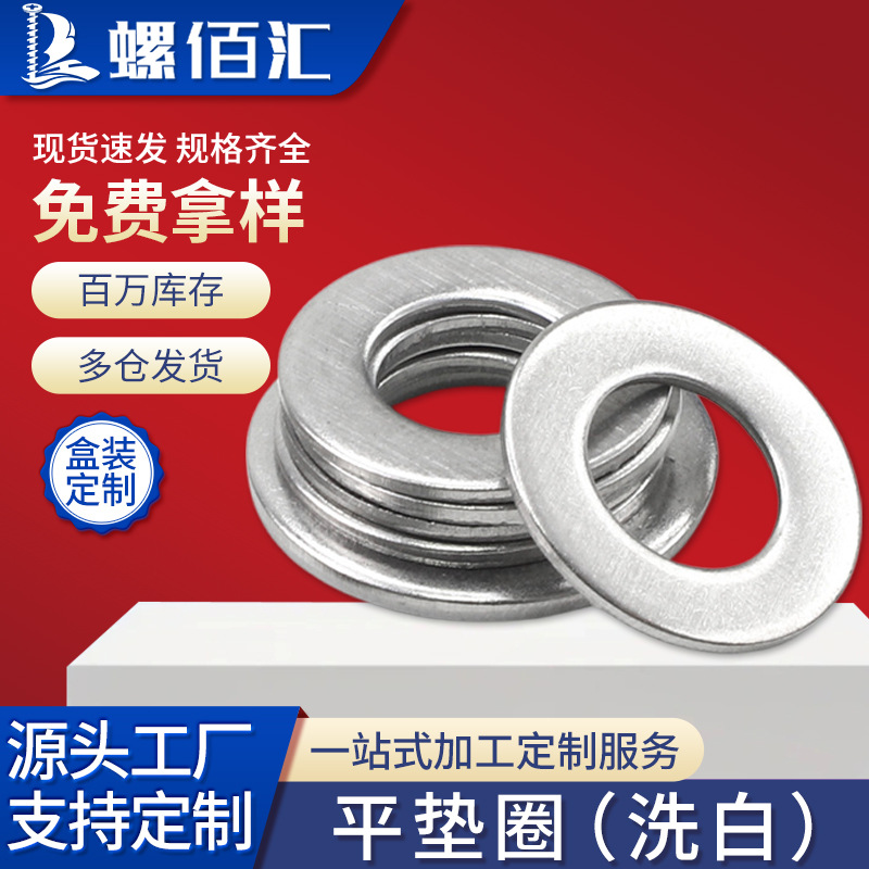 304不锈钢平垫片洗白圆形垫圈 DIN125防水防锈紧固加厚垫片介子