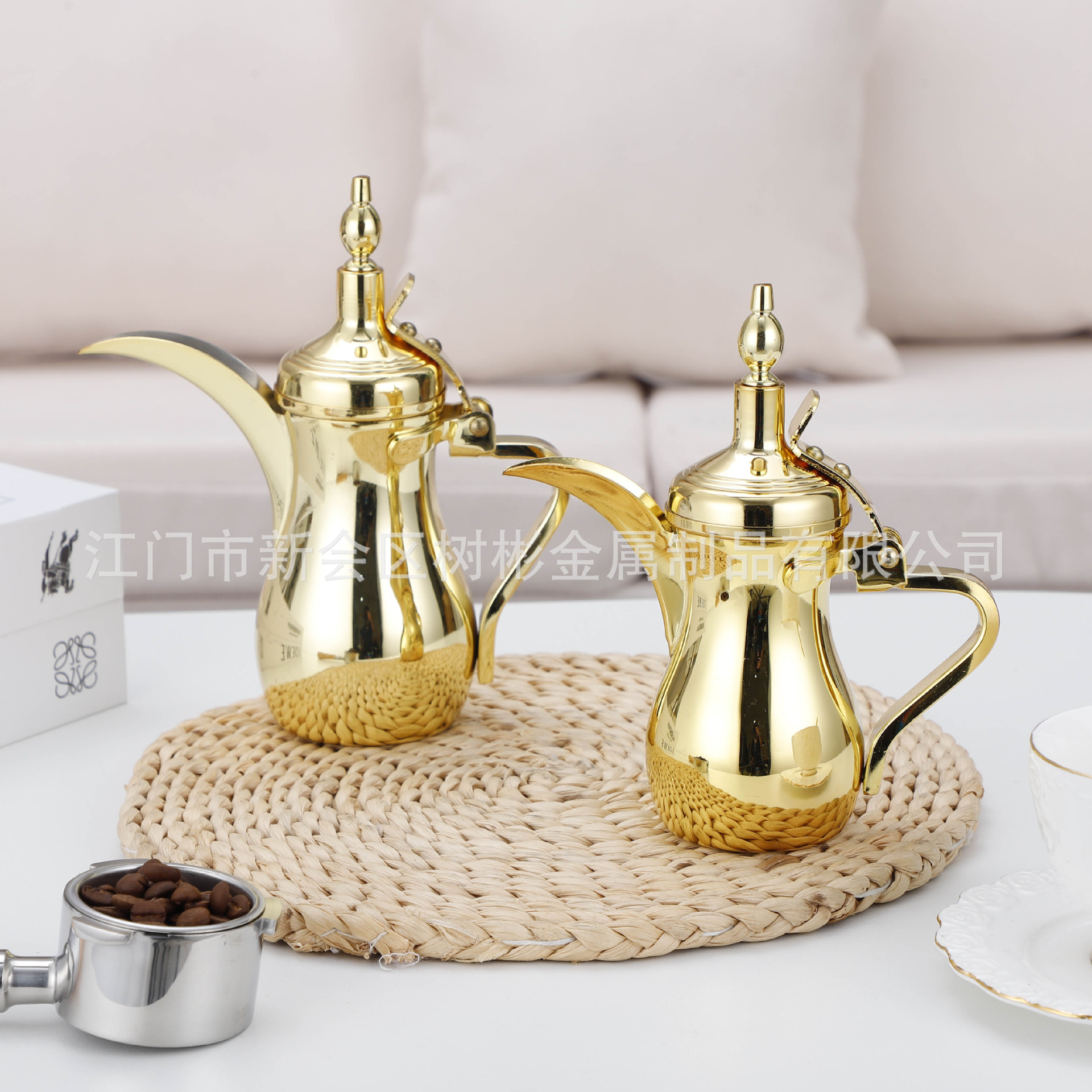Penjualan langsung pabrik teko kopi Timur Tengah dari baja tahan karat, teko kopi Arab, teko teh, warna emas perak, gaya Timur Tengah.