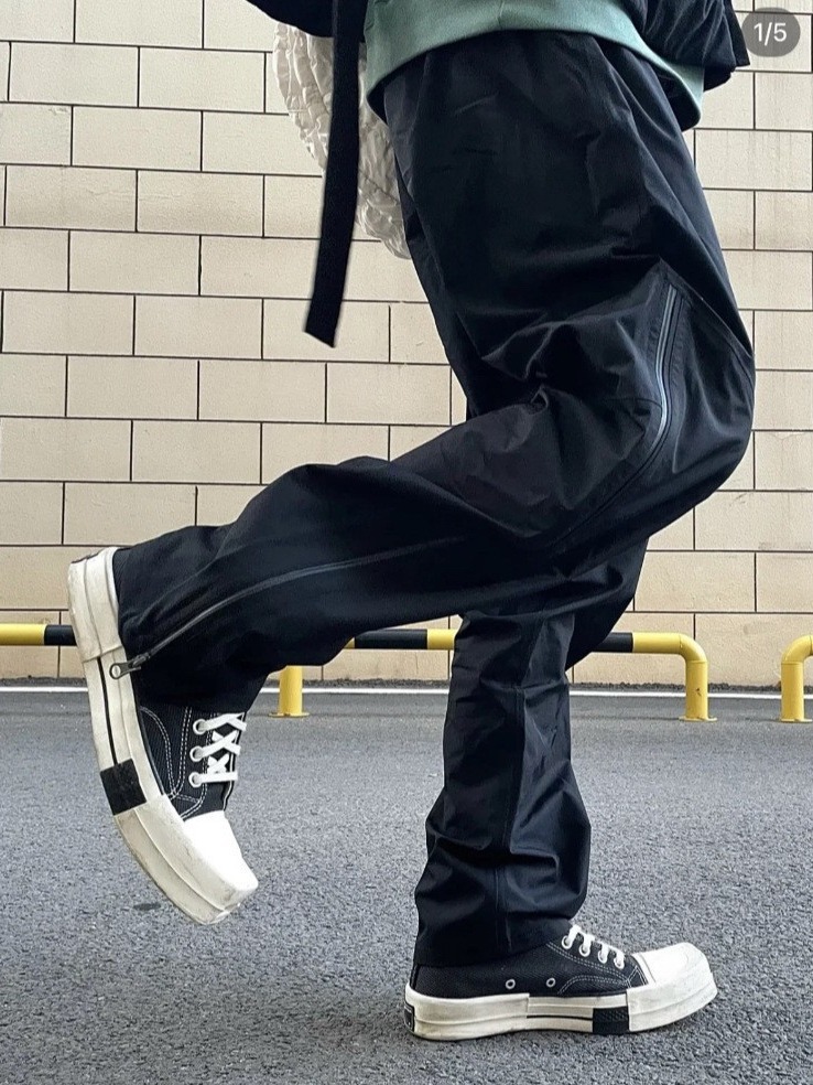 Celana panjang pria kasual longgar model lurus, bergaya high street, tahan air, dengan jahitan tersegel dan ritsleting, cocok untuk aktivitas luar ruangan.