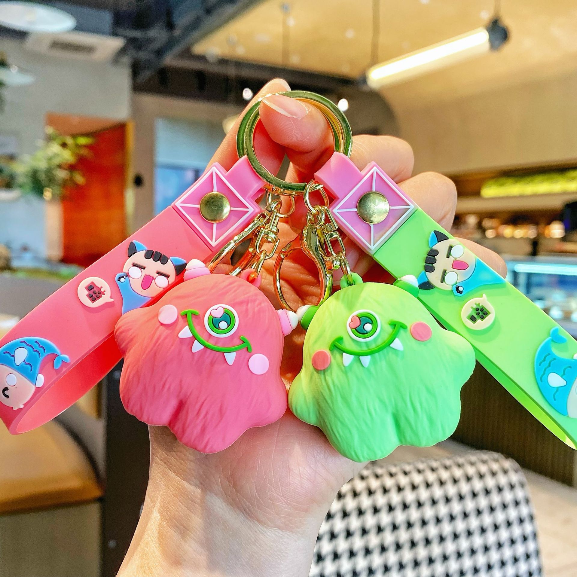 Gantungan Kunci silikon monster kecil, gantungan kunci pasangan, liontin mata besar, Gantungan Kunci dorong kecil