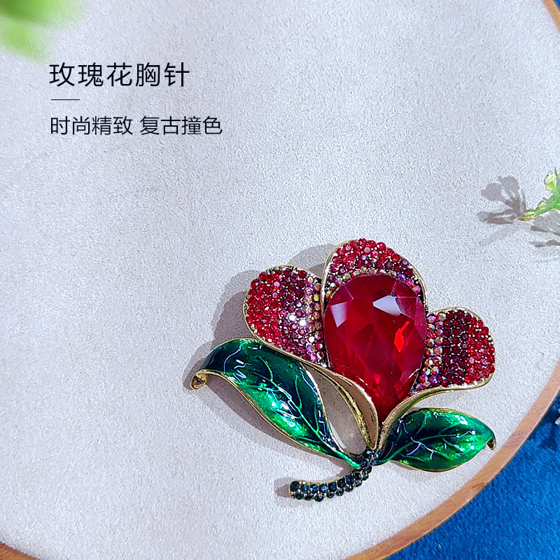 Bros mawar merah antik baru bros wanita high-end fashion antieksposur gesper pakaian kardigan Aksesori kerah