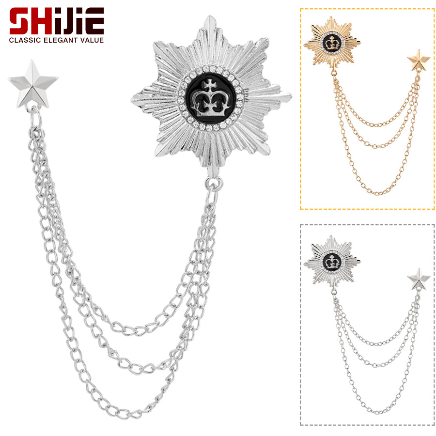 Vintage Inggris gaya preppy alami bintang matahari mahkota rumbai bros kerah pin lencana paduan hadiah perhiasan