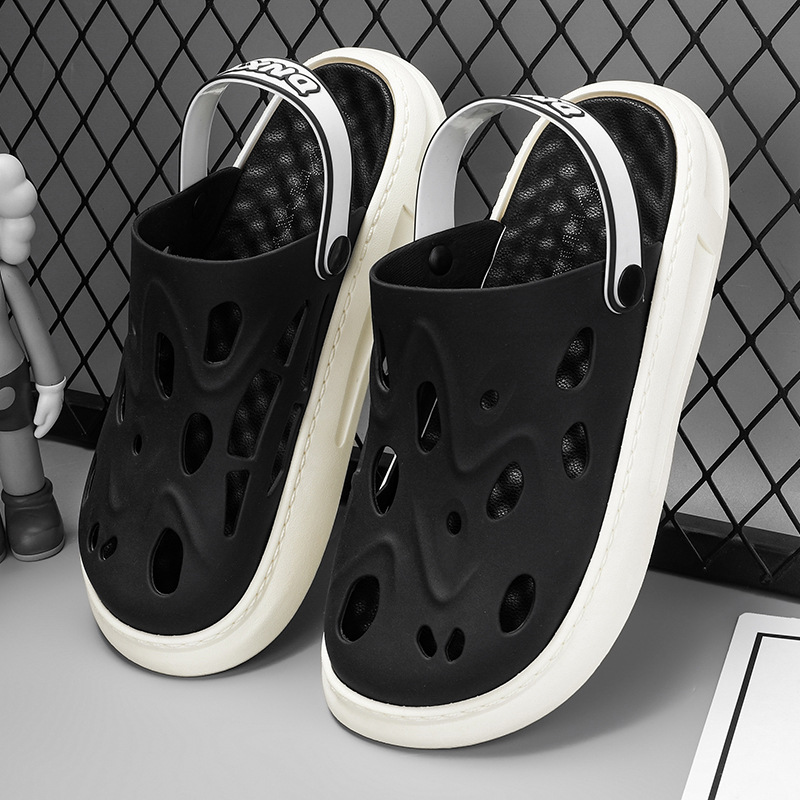 Sandal pantai pria, kasut luar ruangan berlubang, bawahan lembut ringan musim panas 2024
