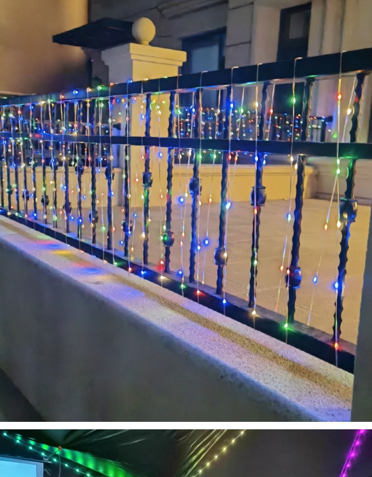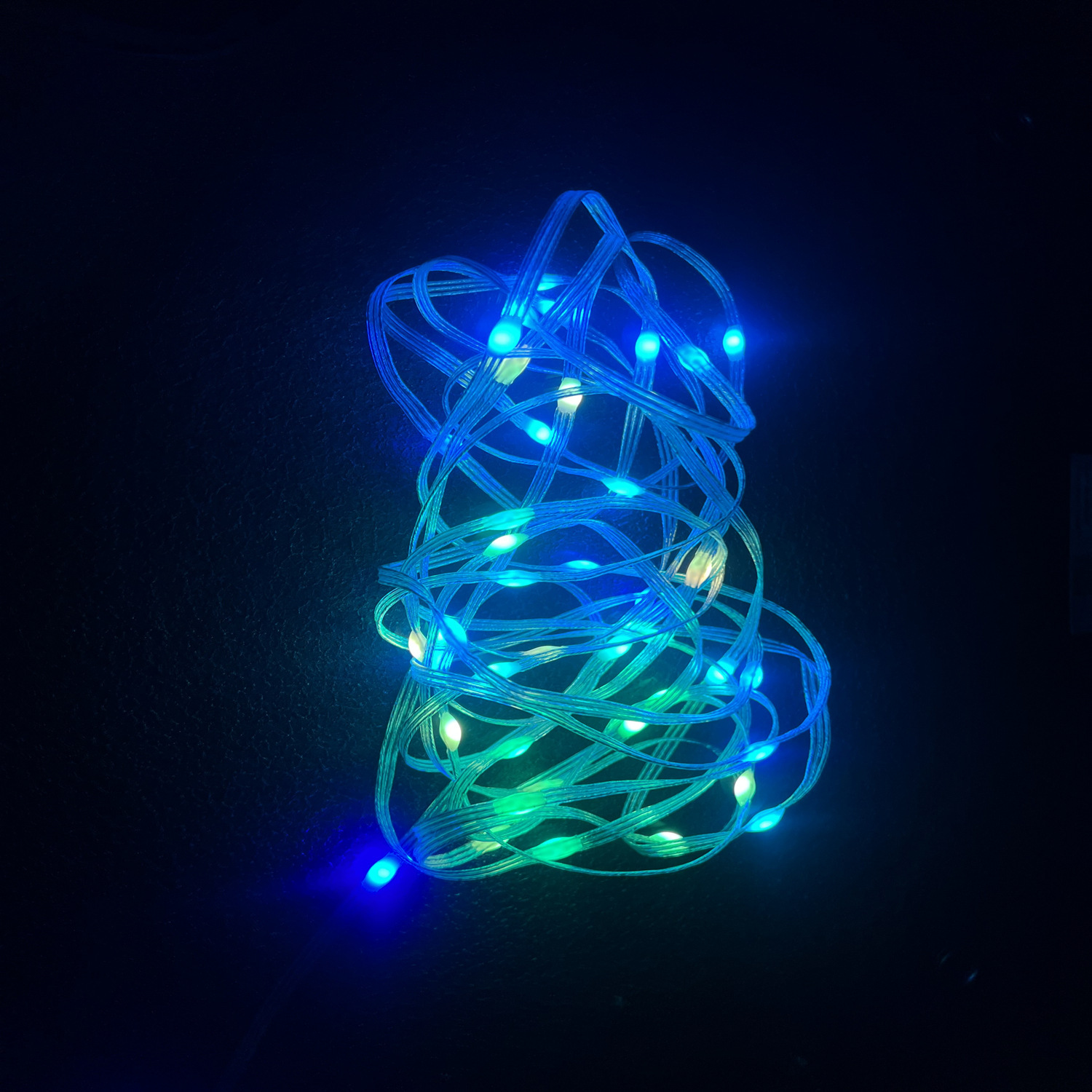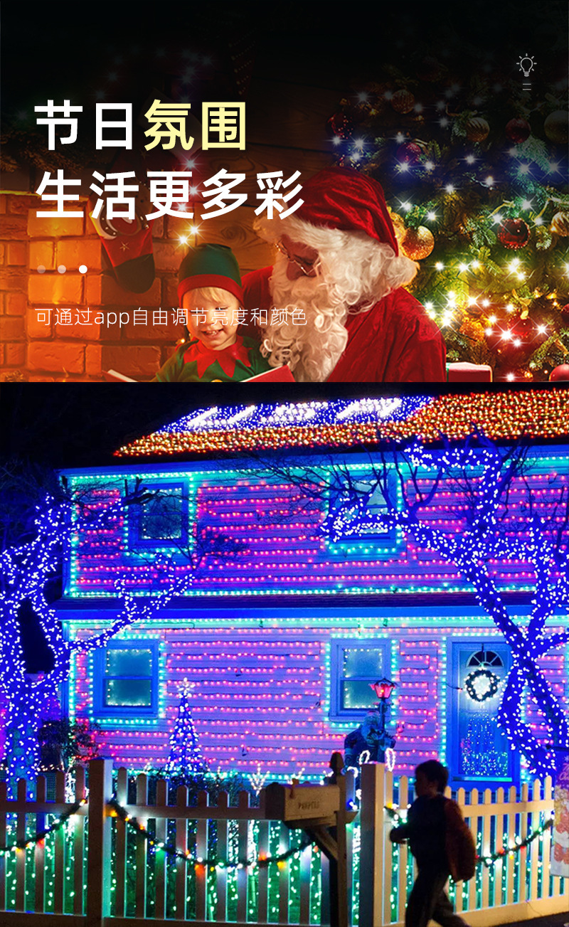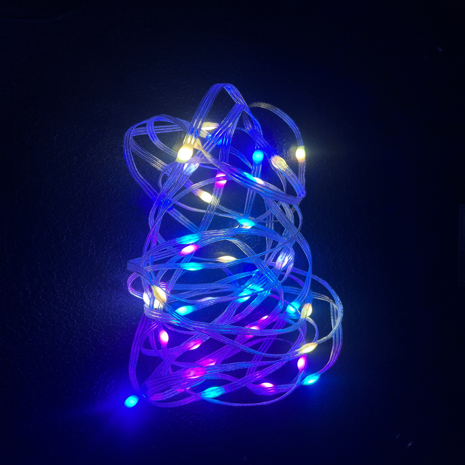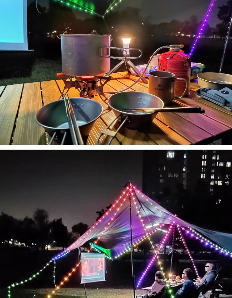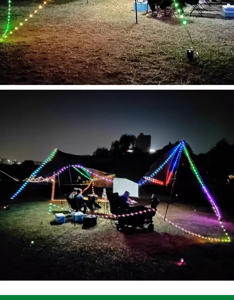Lampu string LED warna-warni Lampu string kontrol suara Bluetooth RGB efek air mengalir Dekorasi pohon Natal lampu string suasana berkemah lampu string luar ruangan