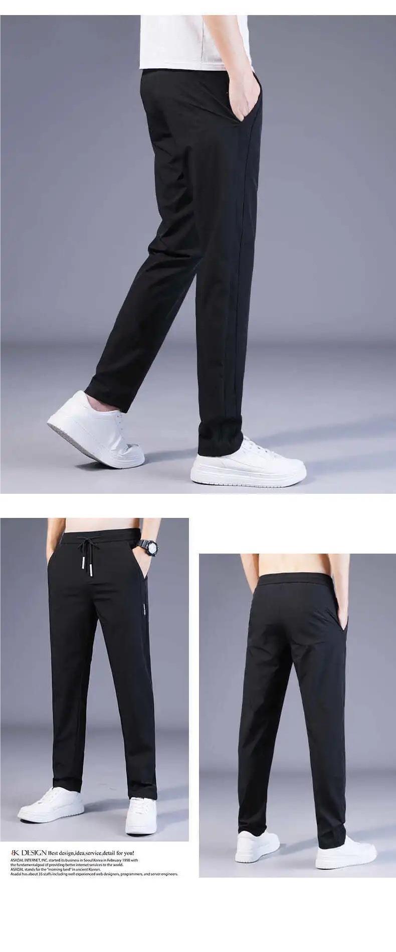 Celana panjang kasual longgar untuk pria, celana sutra es pria, celana longgar bersirkulasi lurus ramping kasual, celana olahraga musim panas tipis elastis