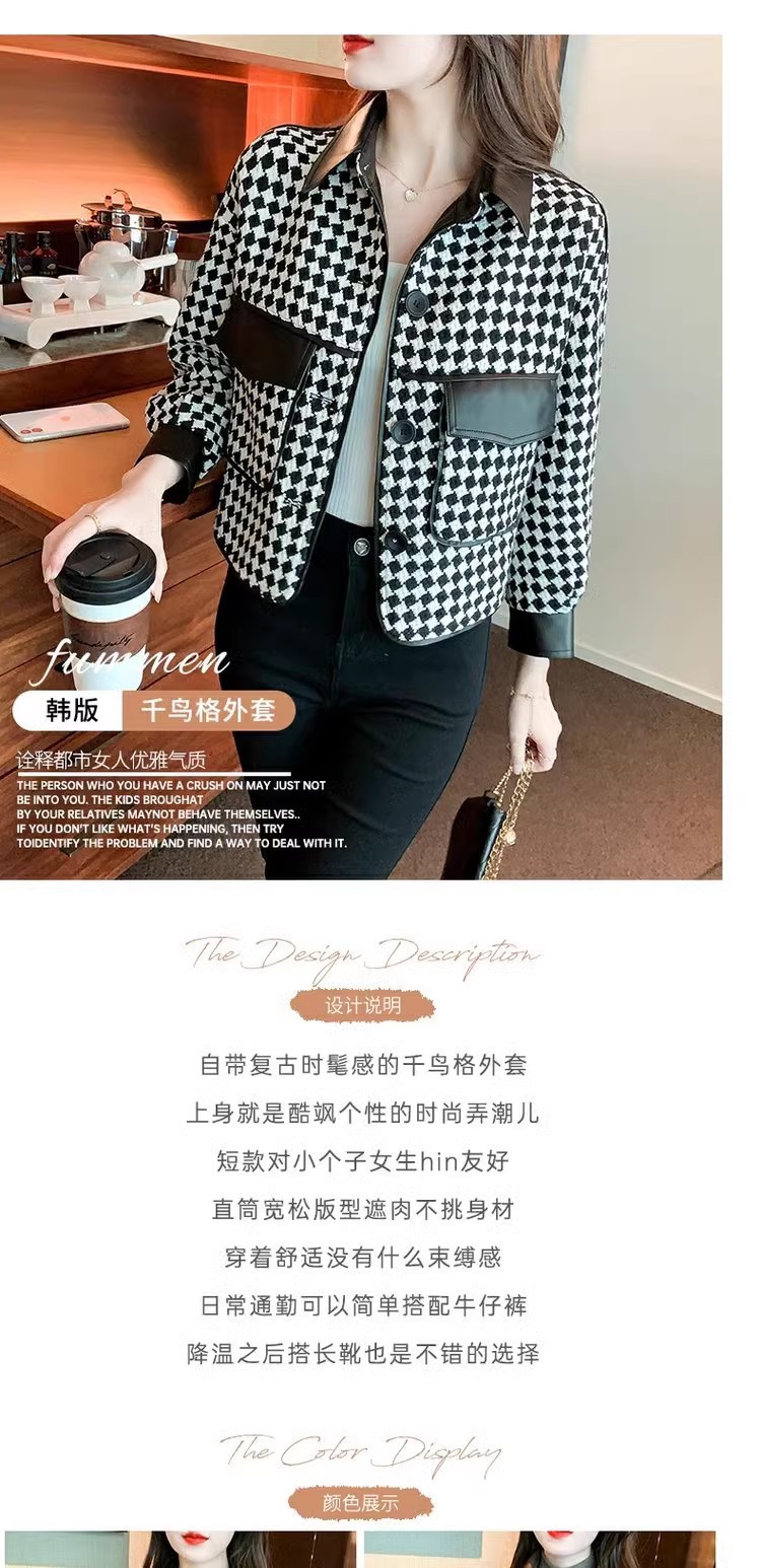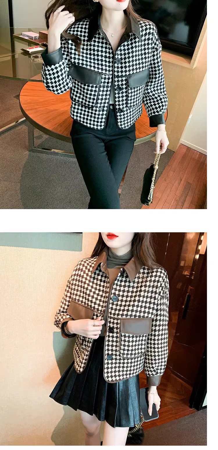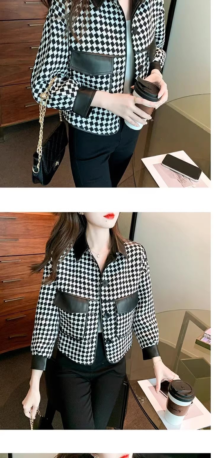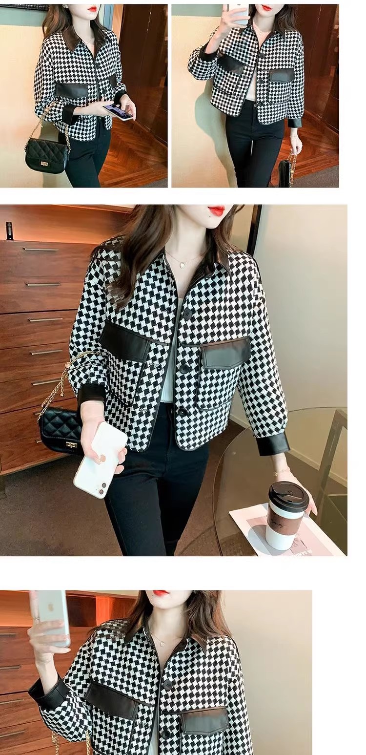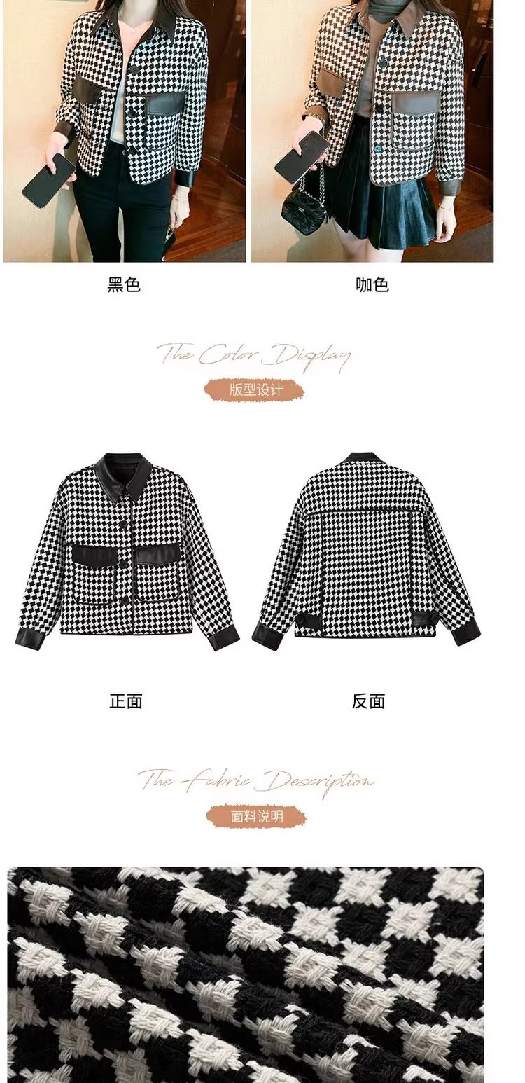 Jaket houndstooth modis untuk wanita, model pendek terinspirasi Chanel untuk musim semi, gugur, dan dingin 2025, cocok untuk tubuh berukuran kecil.