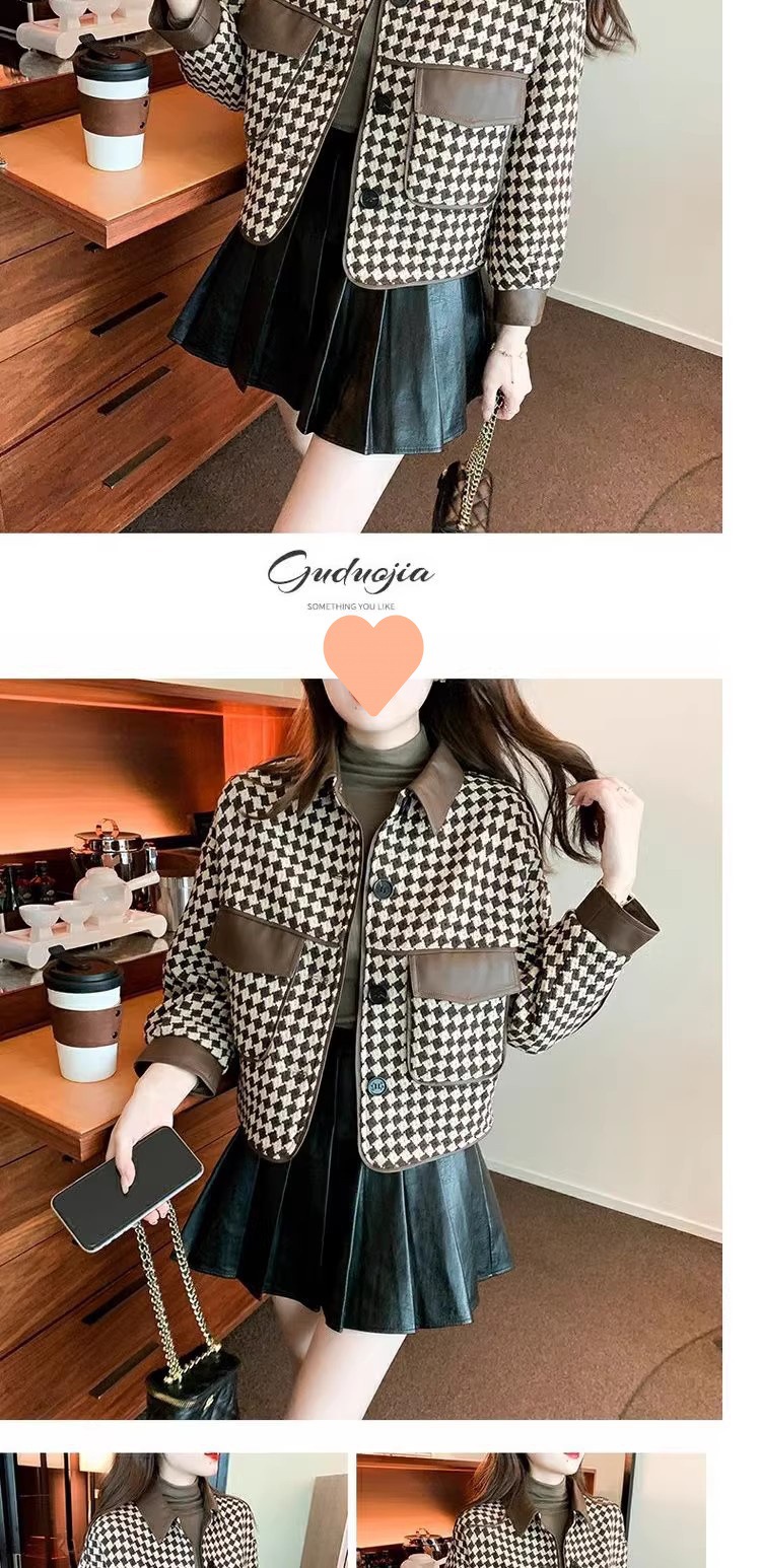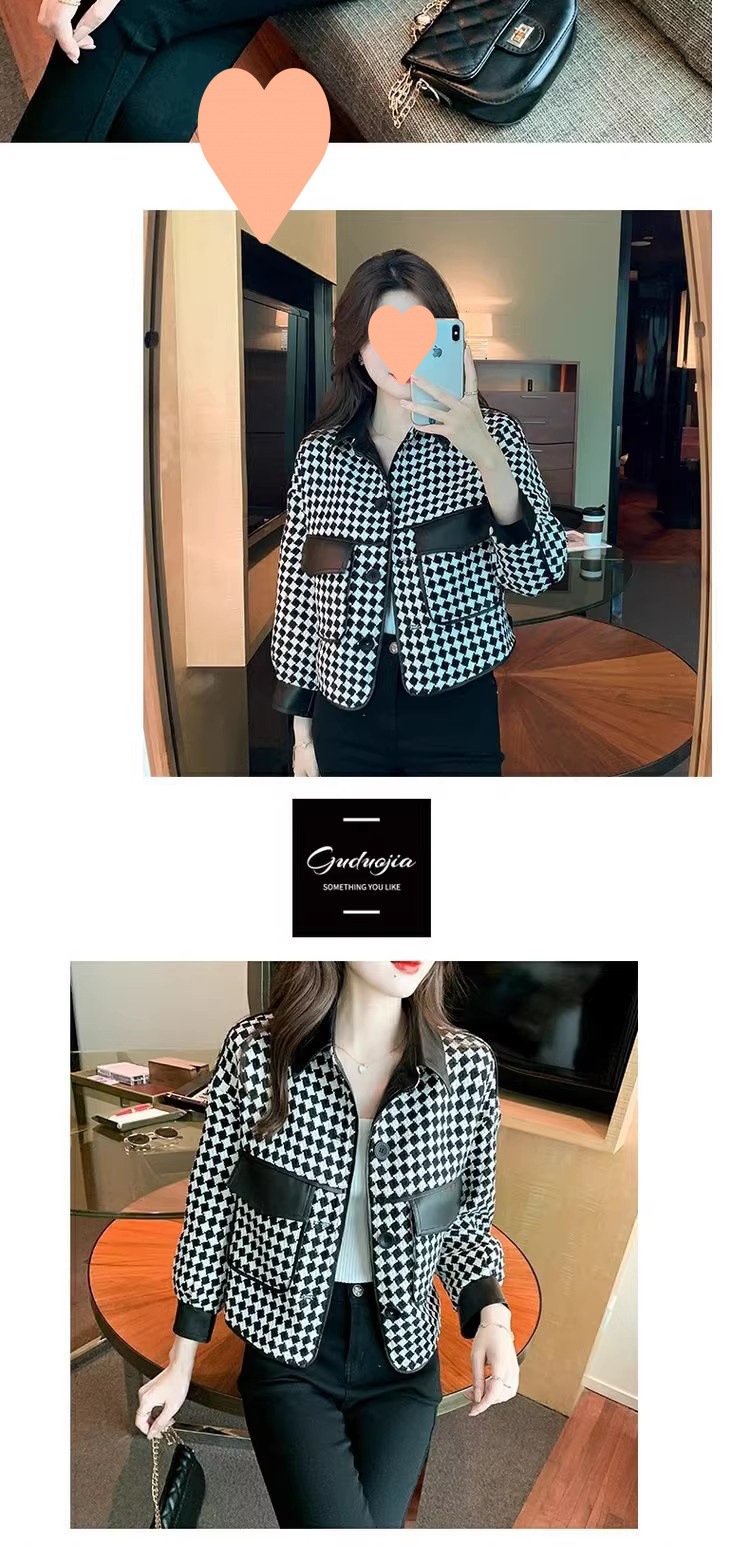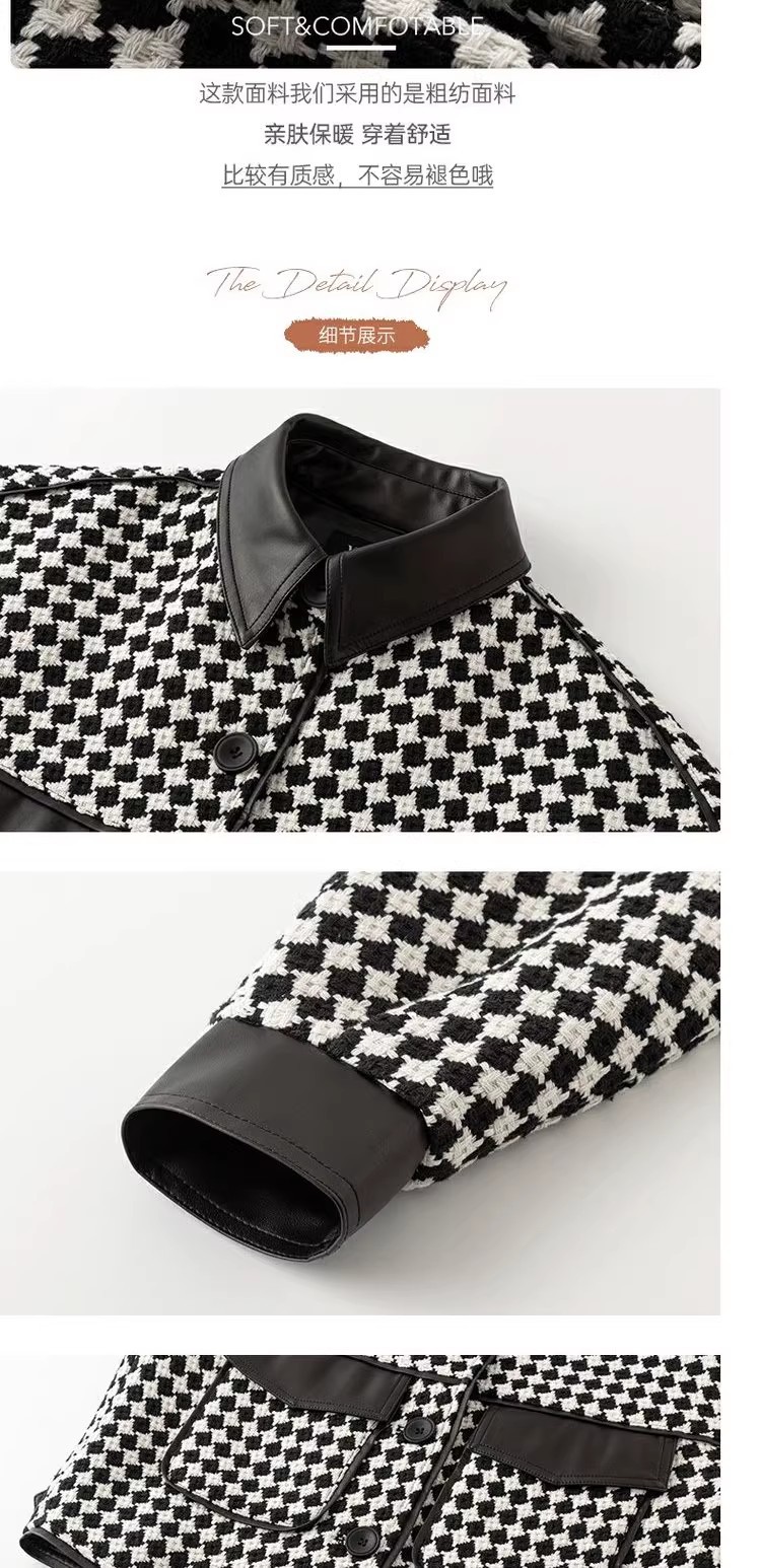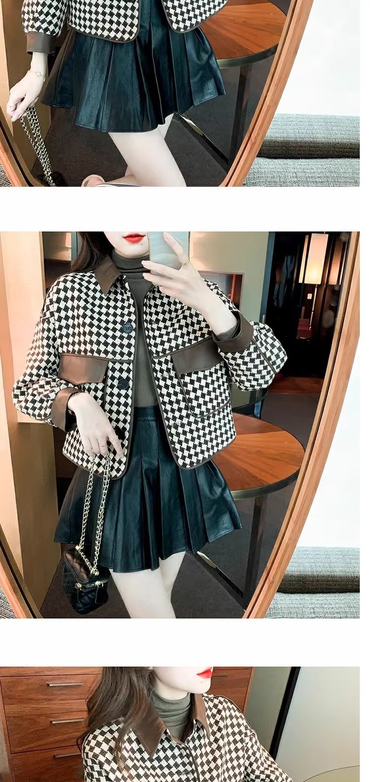 Jaket houndstooth modis untuk wanita, model pendek terinspirasi Chanel untuk musim semi, gugur, dan dingin 2025, cocok untuk tubuh berukuran kecil.