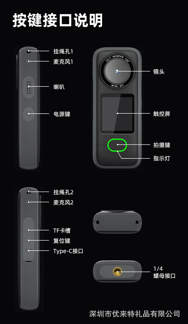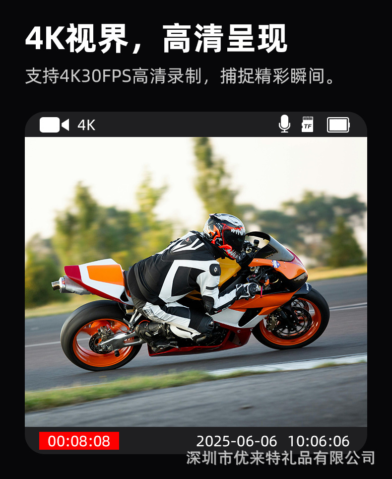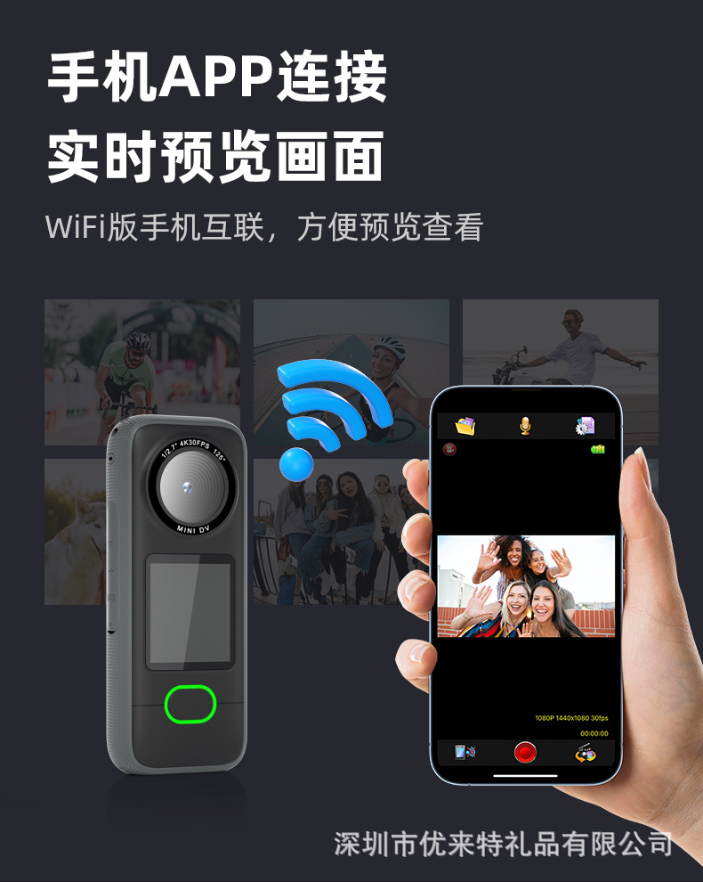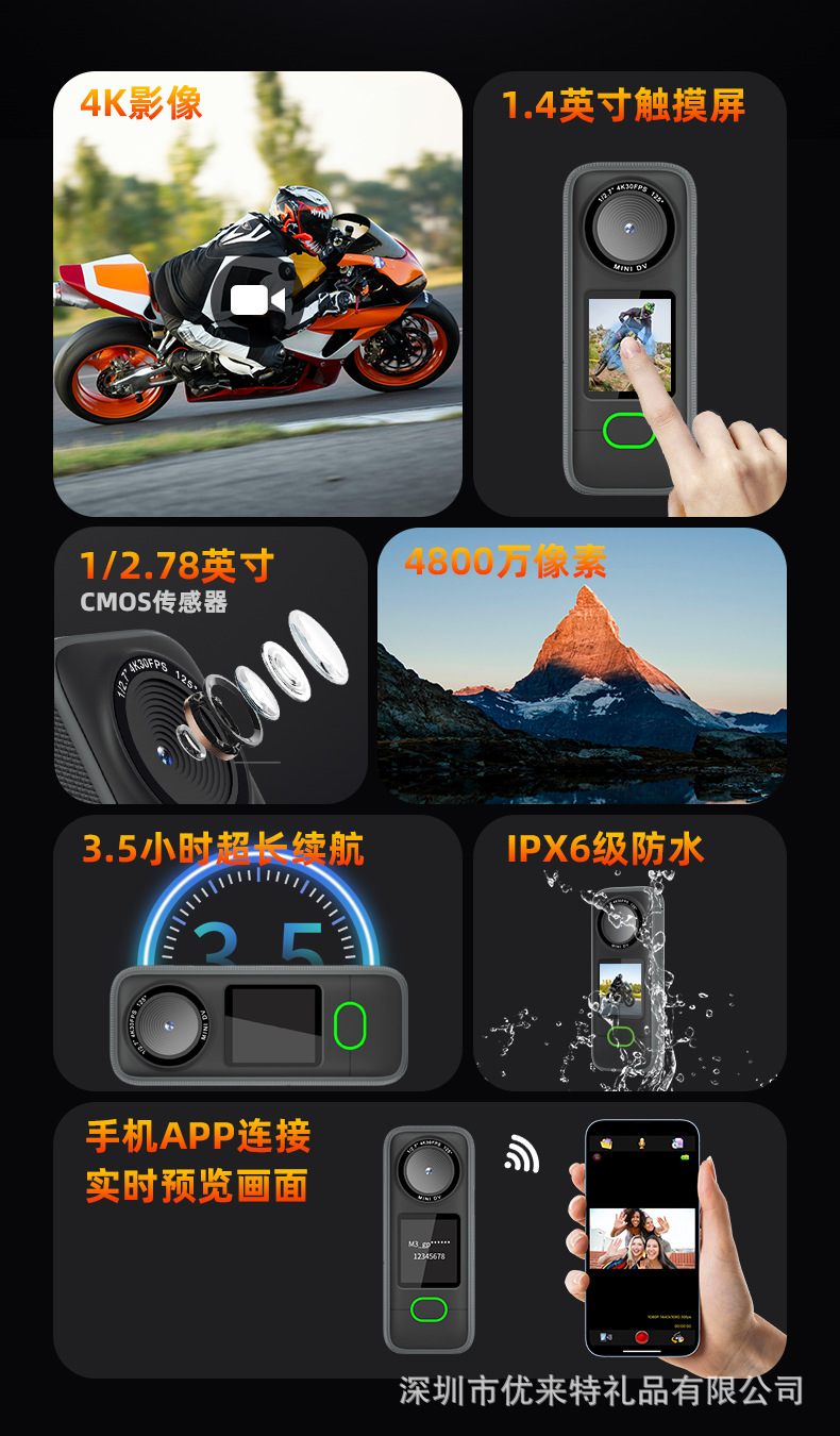 Kamera olahraga wifi portabel 4K dengan visi malam, kamera lintas batas, kamera mikro portabel definisi tinggi ultra-definisi tinggi.