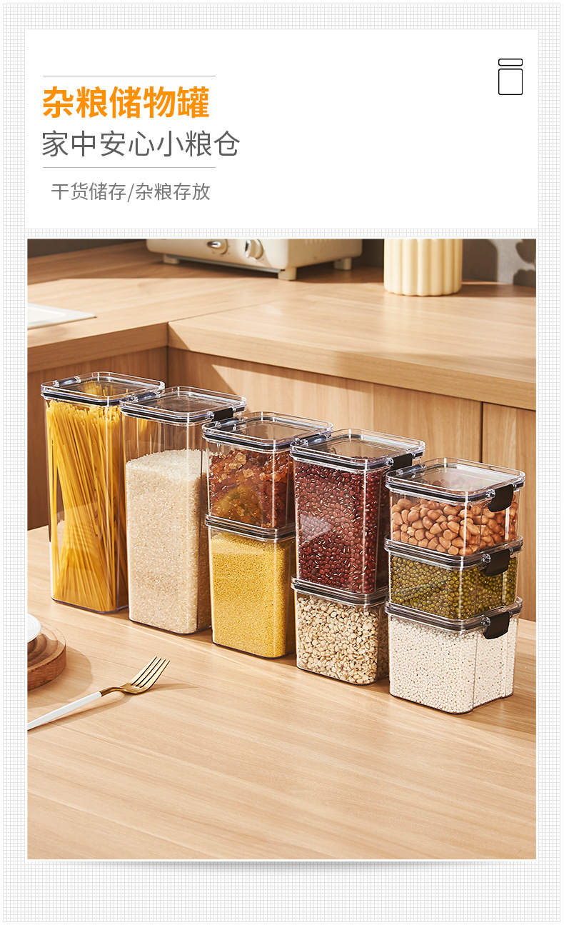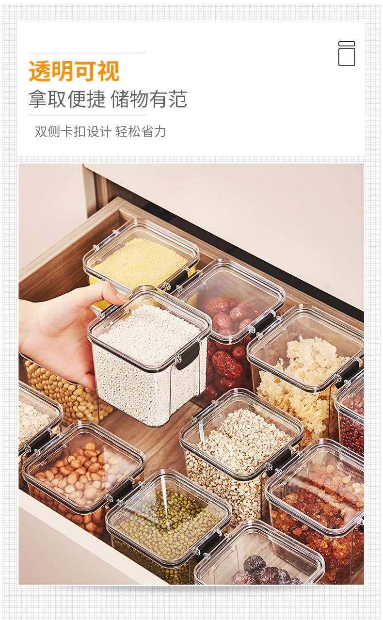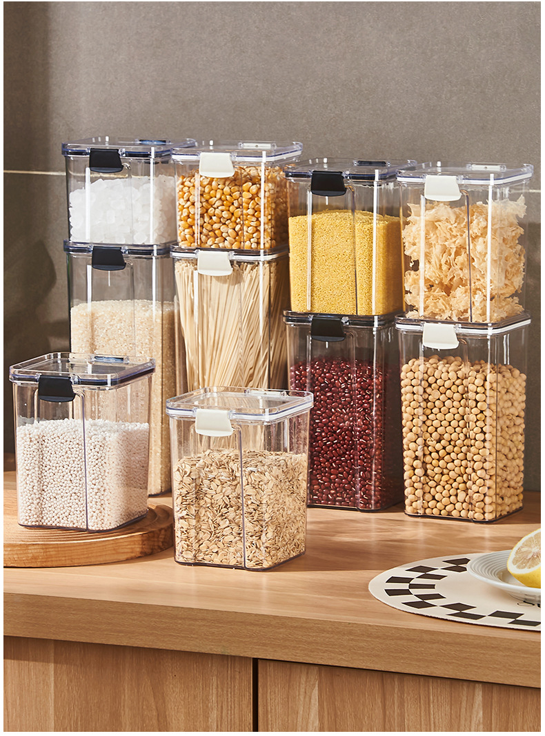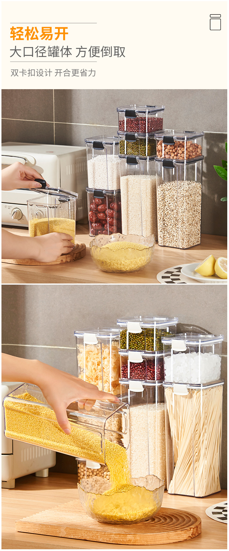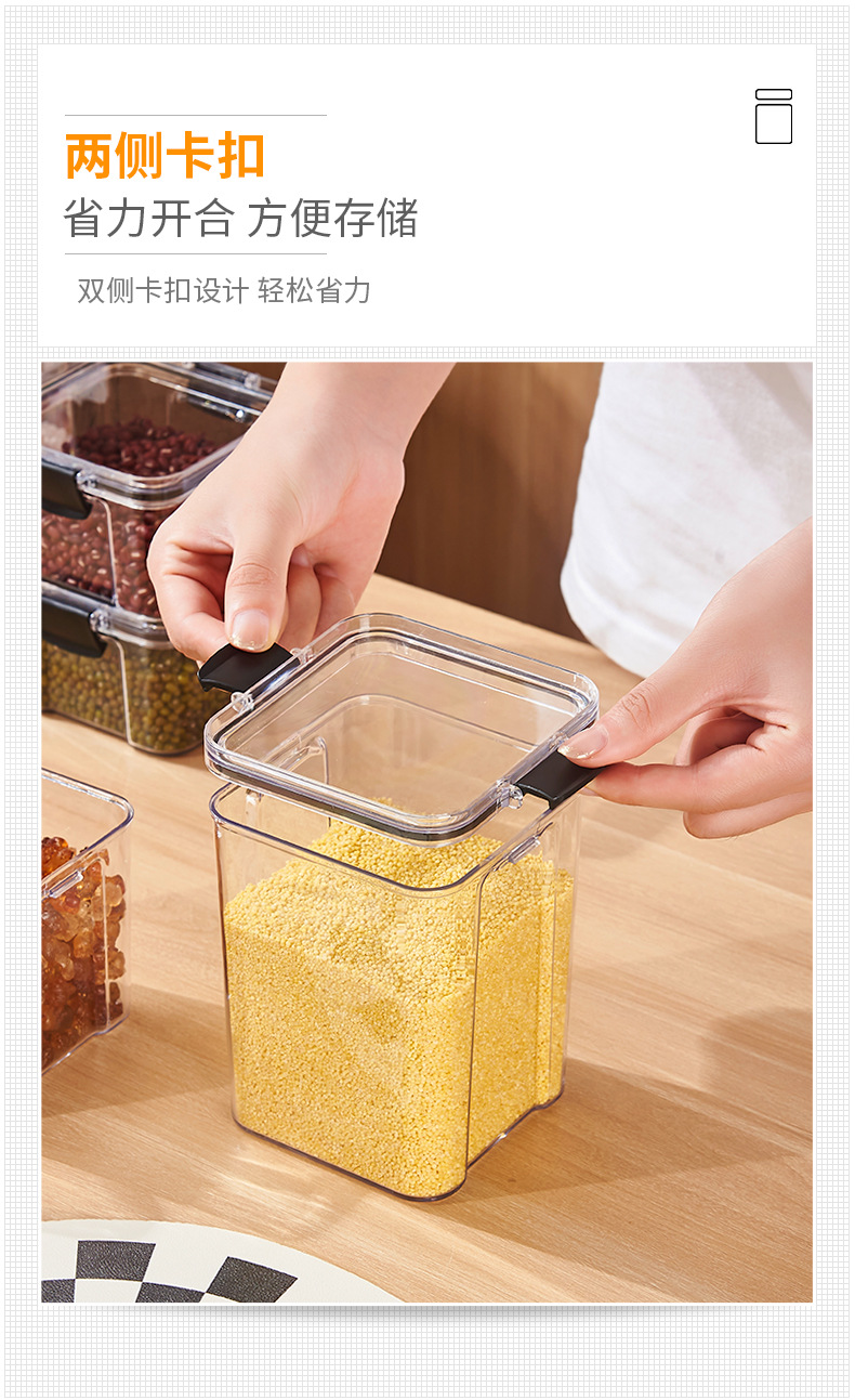 Toples penyimpan biji-bijian, toples penyimpanan biji-bijian permen kacang, toples penyimpanan kering gesper transparan persegi