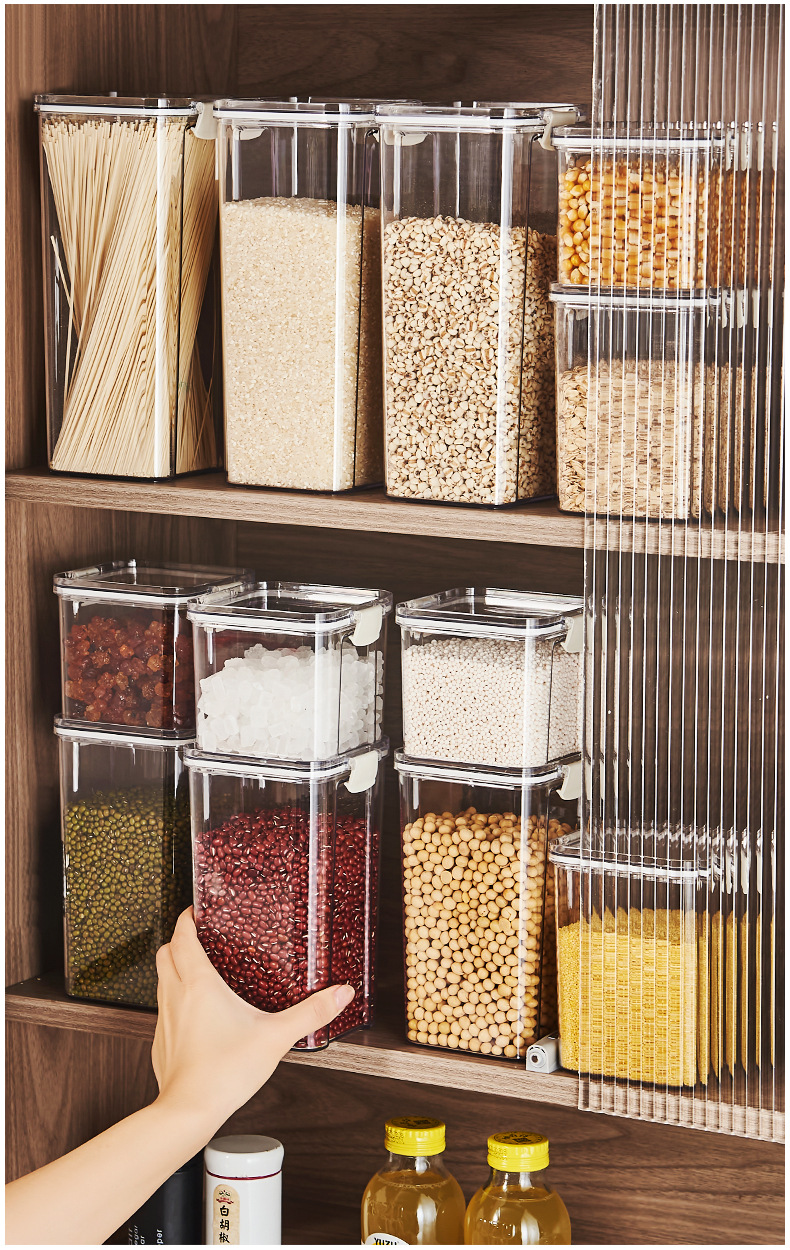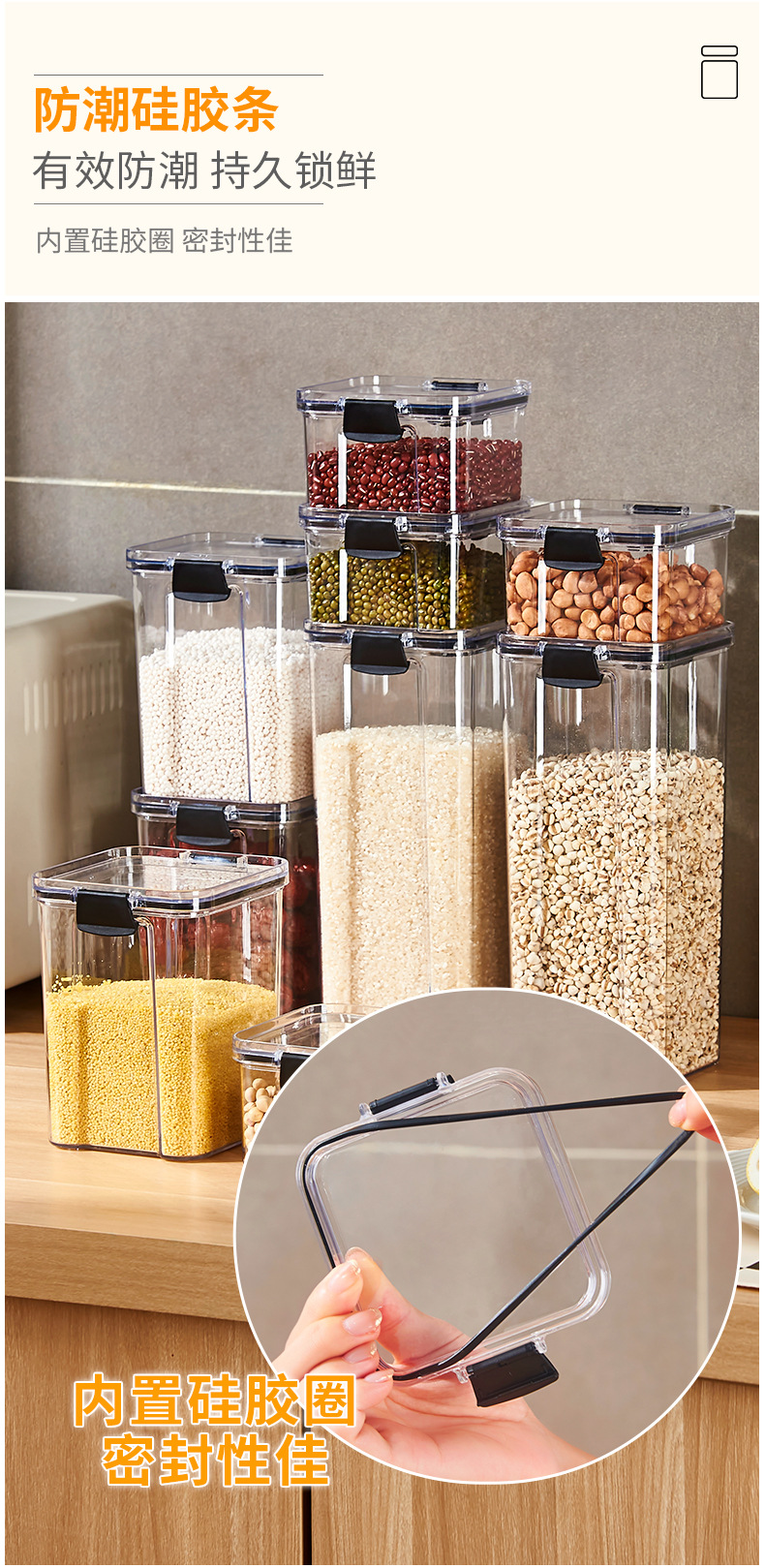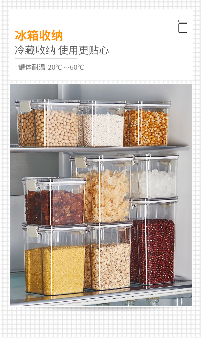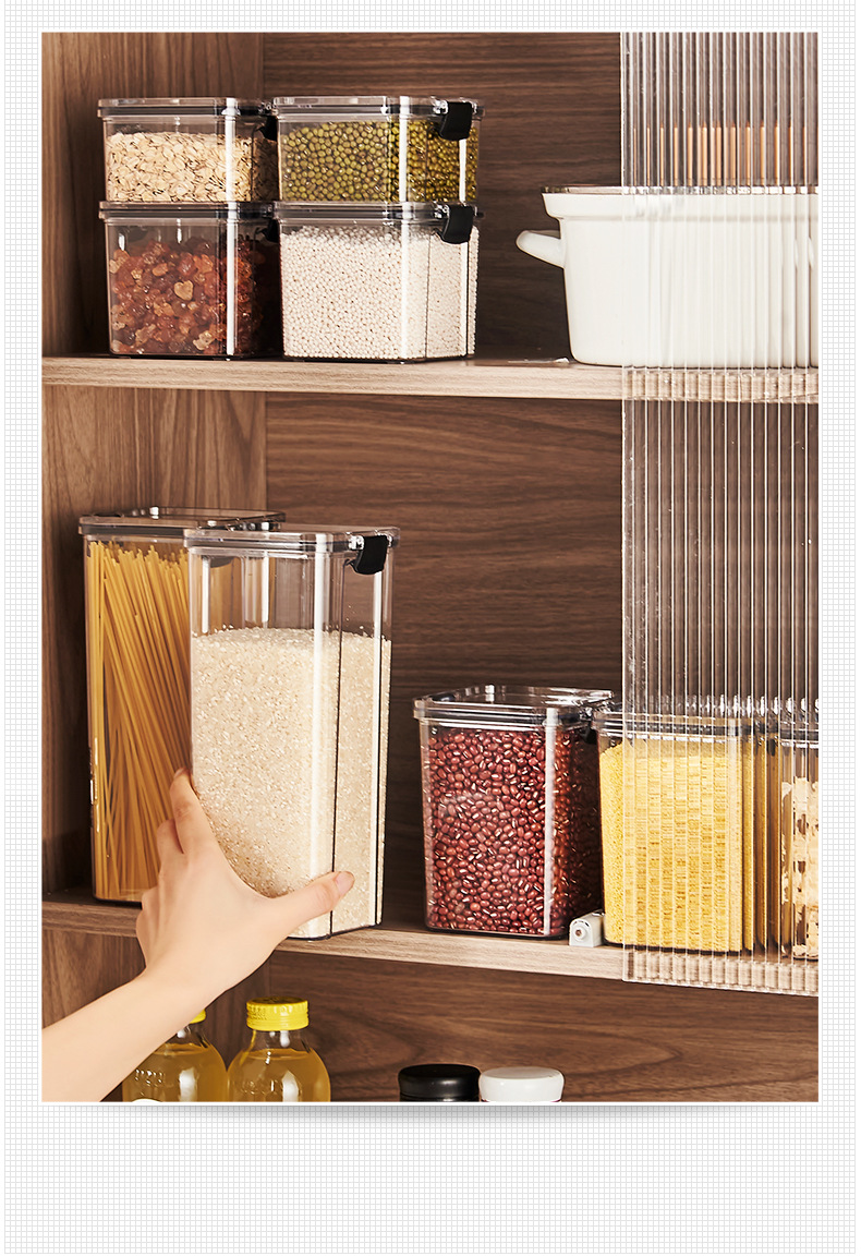 Toples penyimpan biji-bijian, toples penyimpanan biji-bijian permen kacang, toples penyimpanan kering gesper transparan persegi