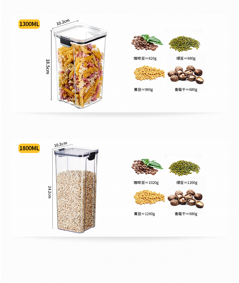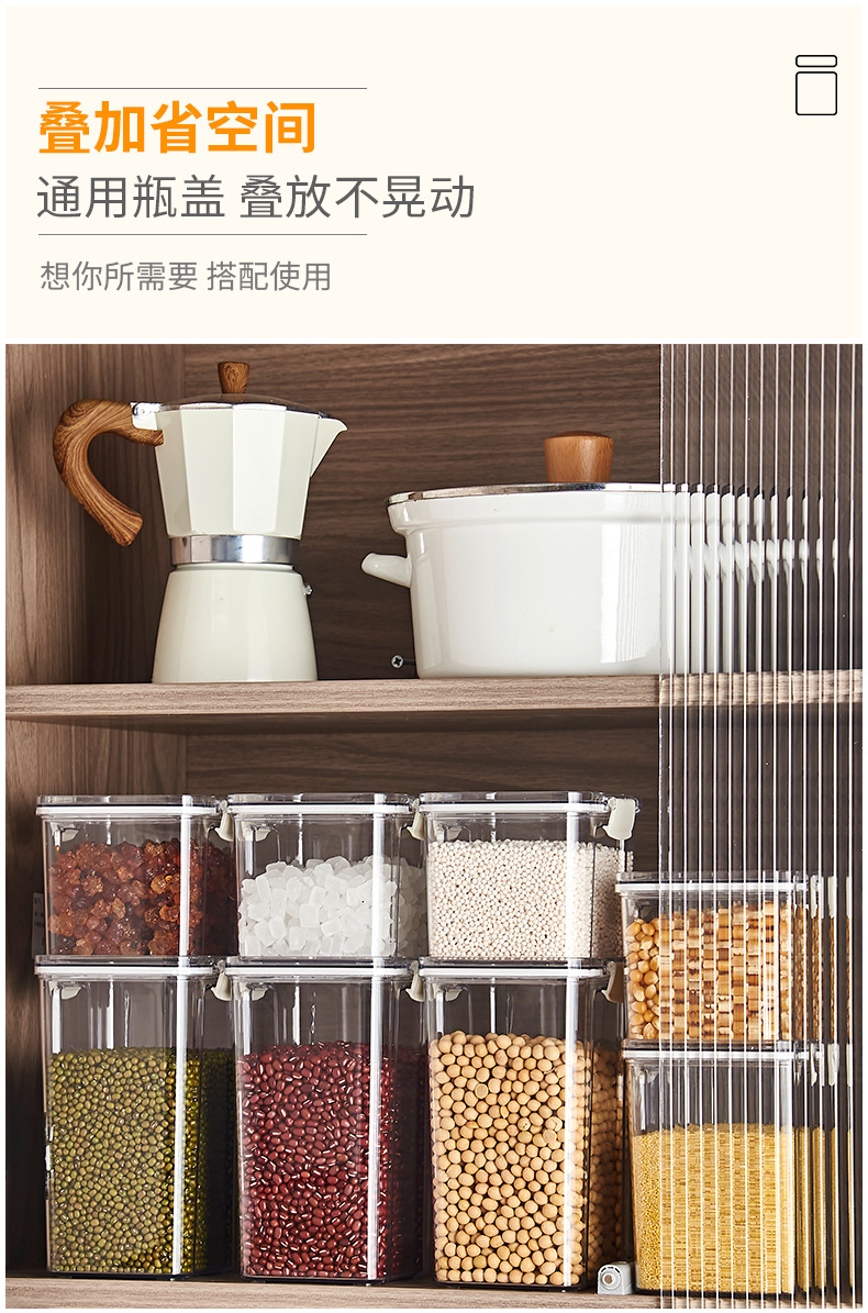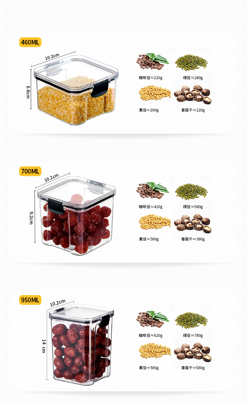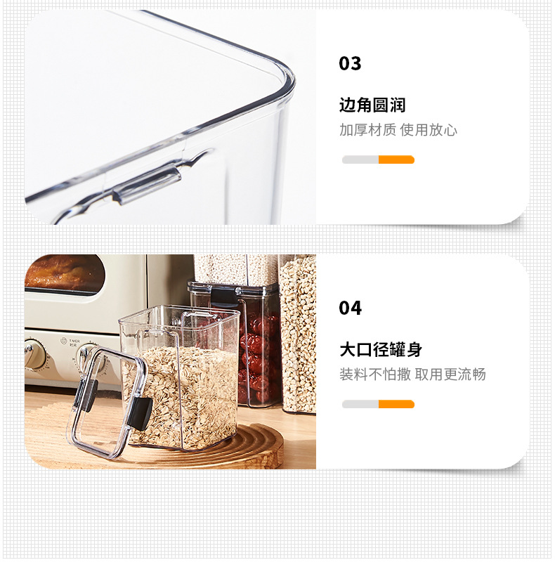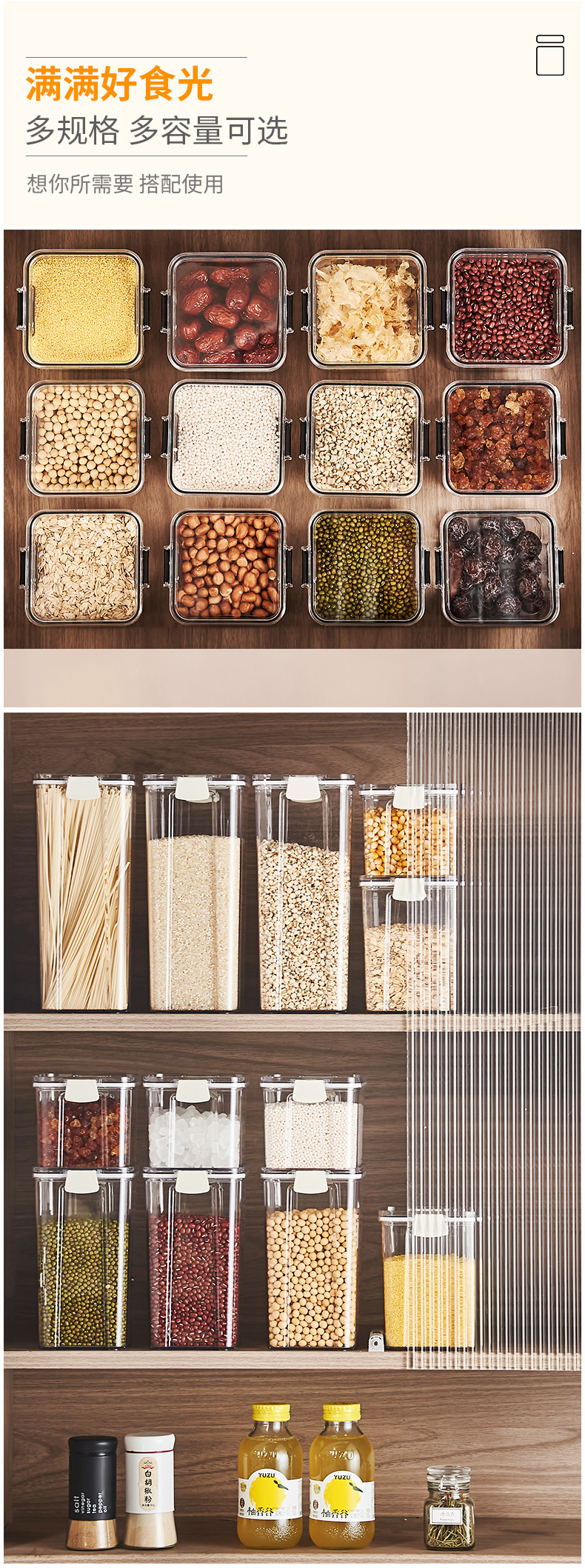 Toples penyimpan biji-bijian, toples penyimpanan biji-bijian permen kacang, toples penyimpanan kering gesper transparan persegi