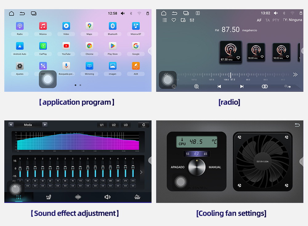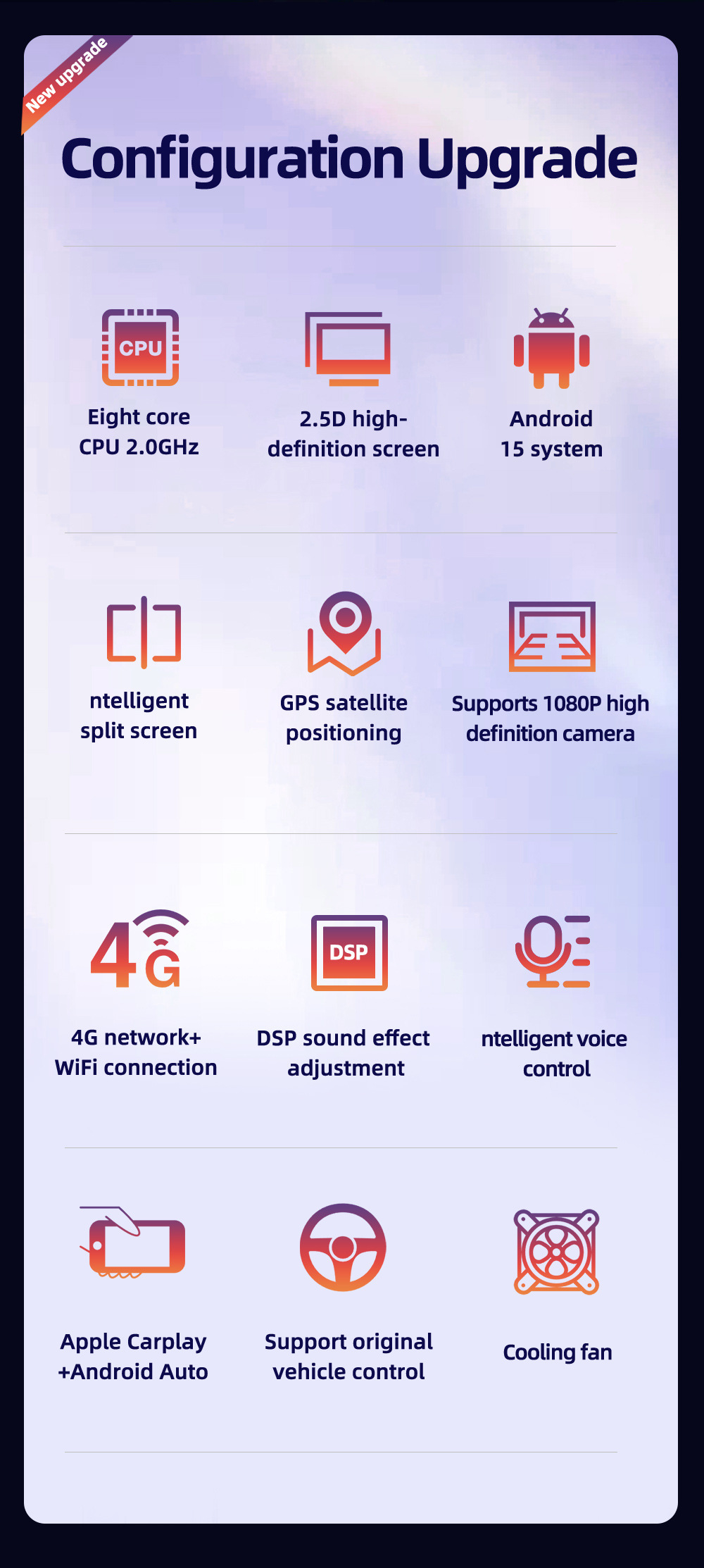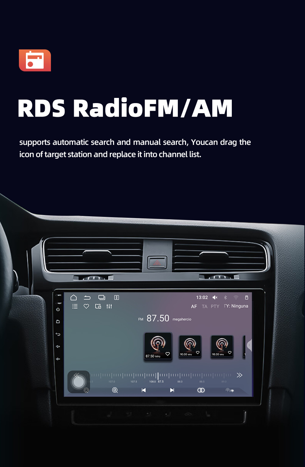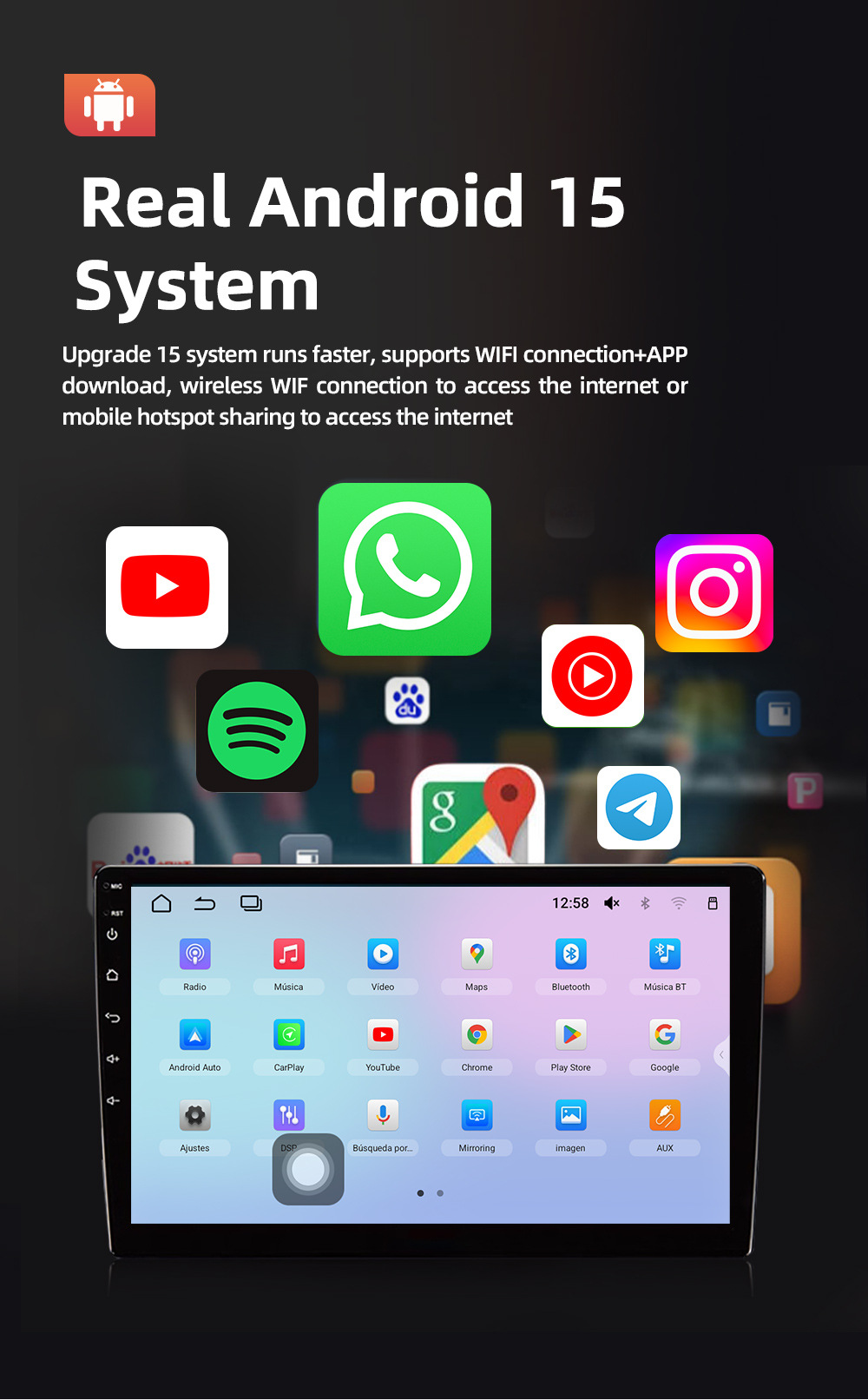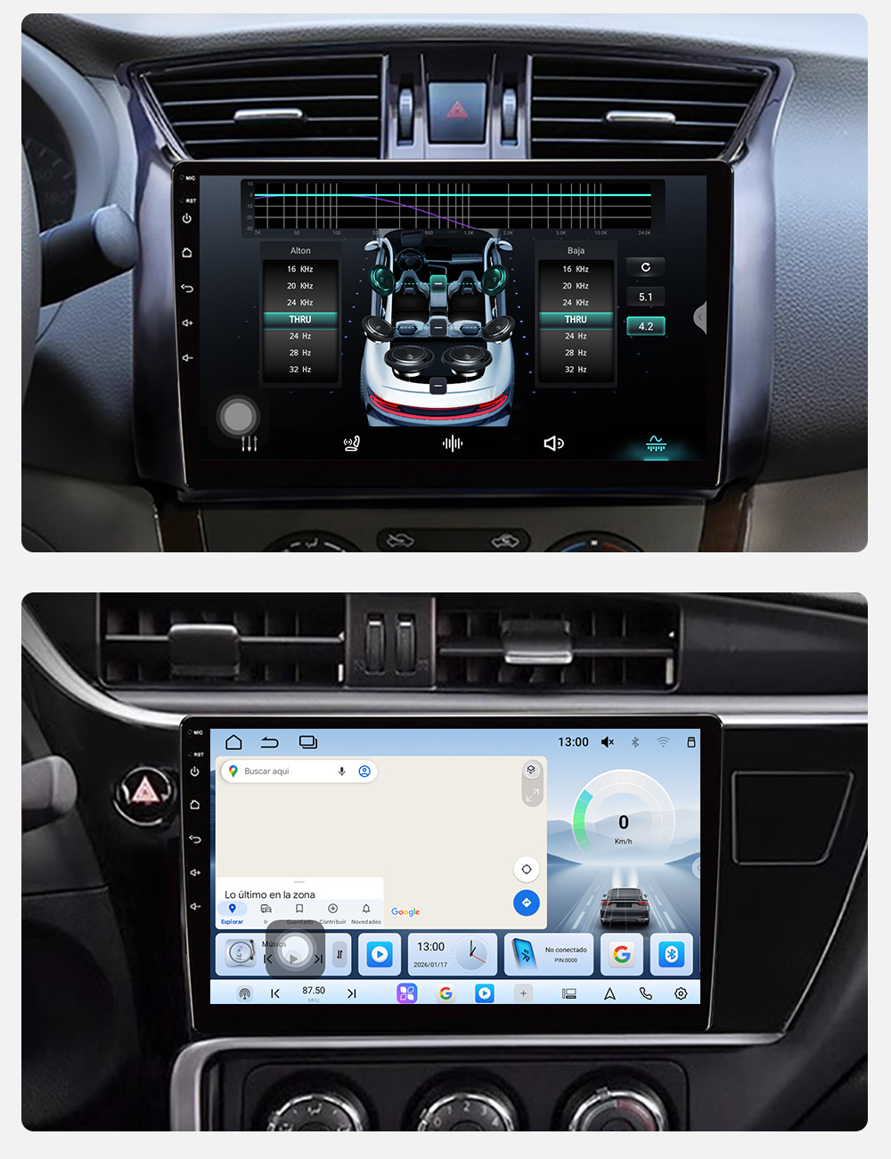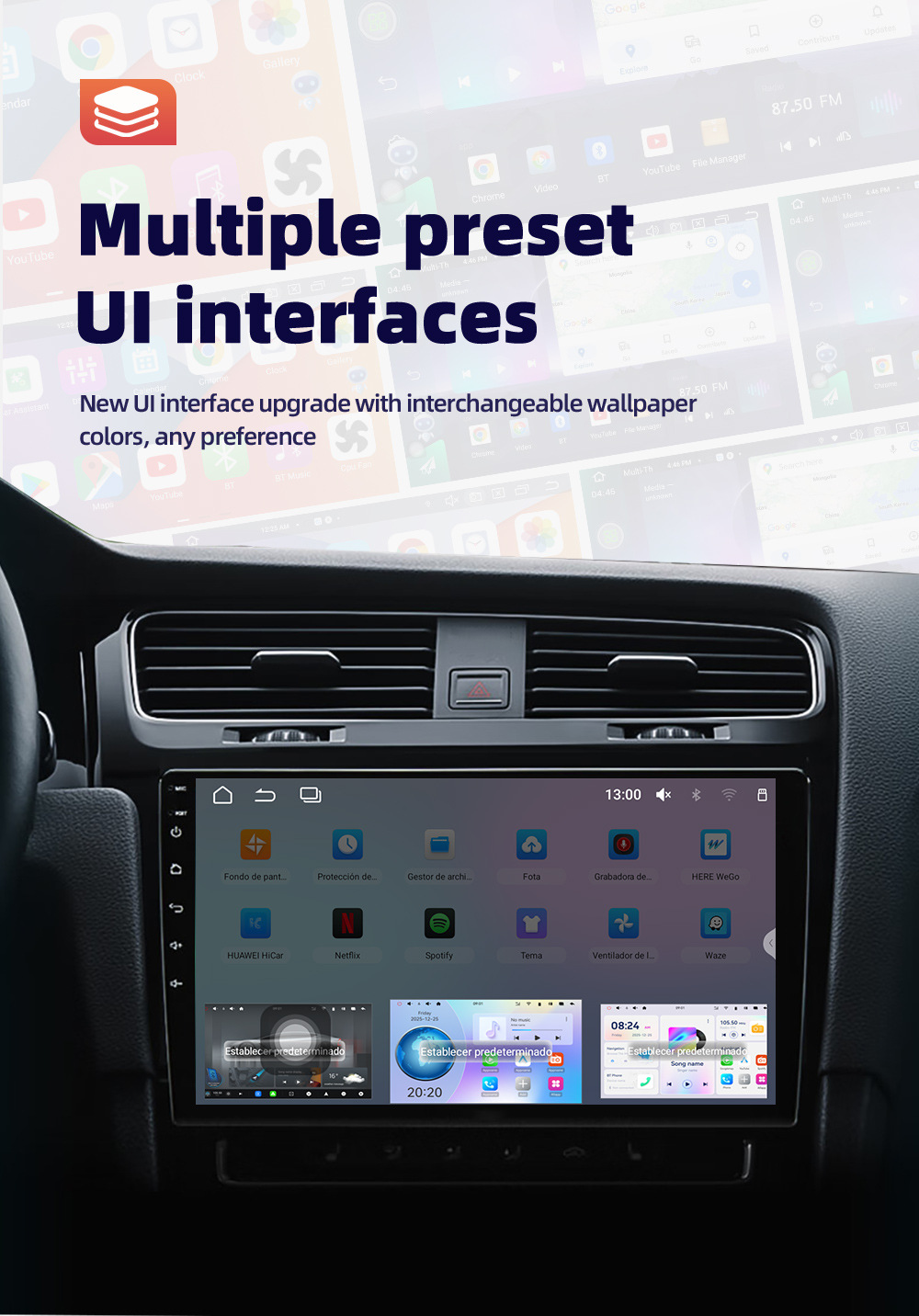 Sistem navigasi mobil layar besar 9-inci dan 10-inci lintas batas dengan konektivitas jaringan penuh, Bluetooth, CarPlay, dan kamera mundur terintegrasi.