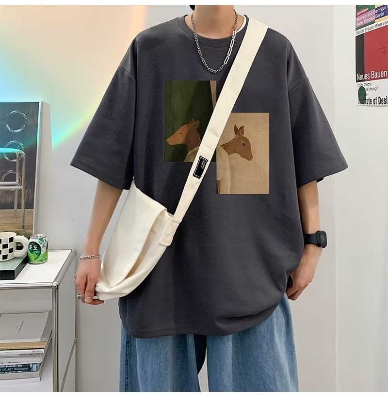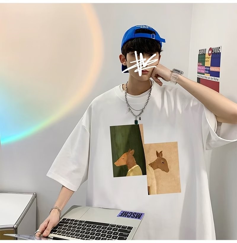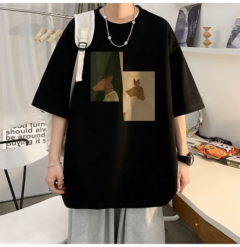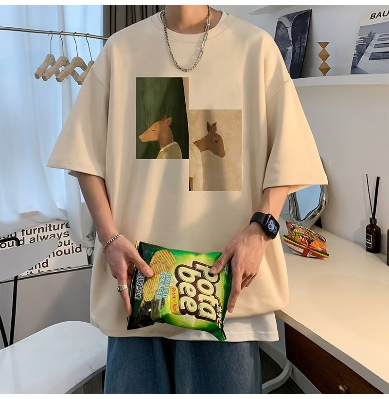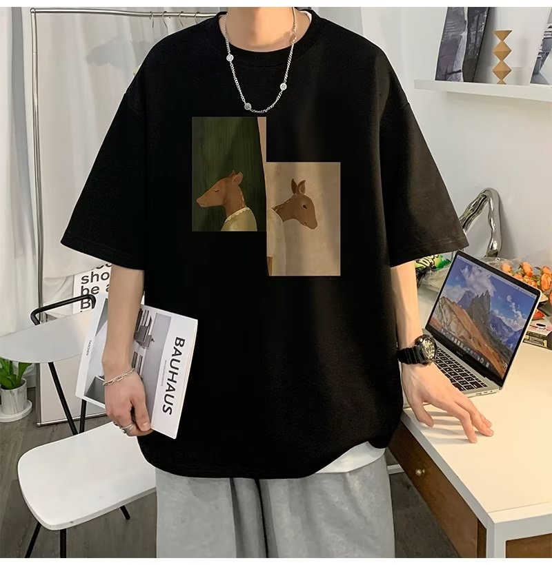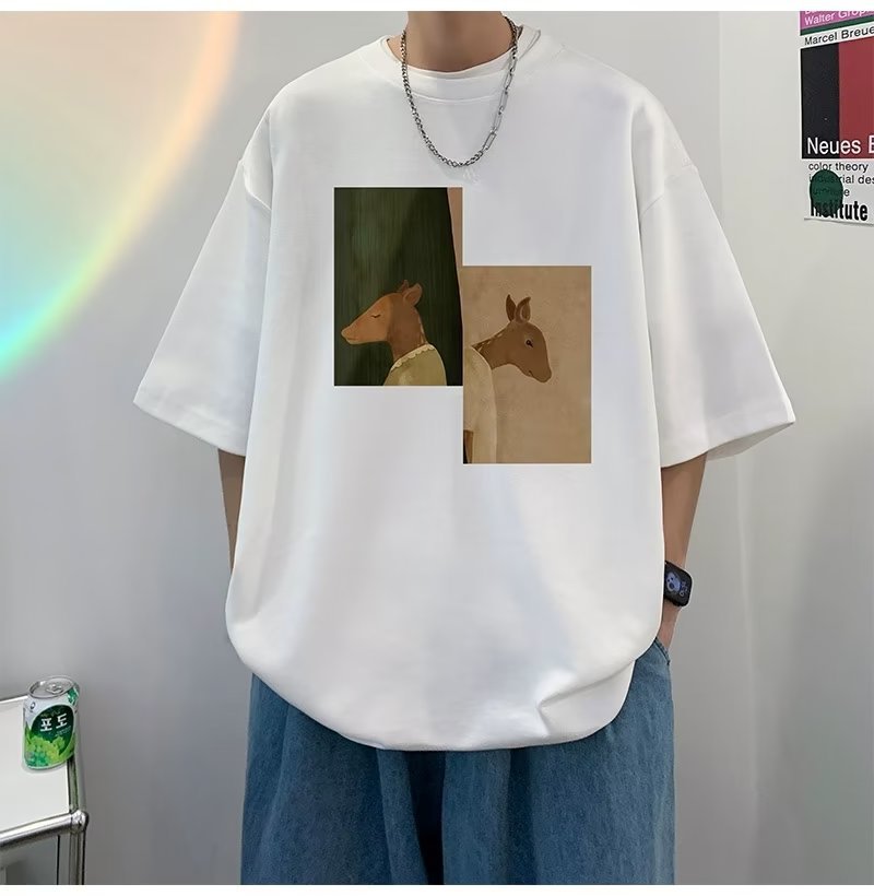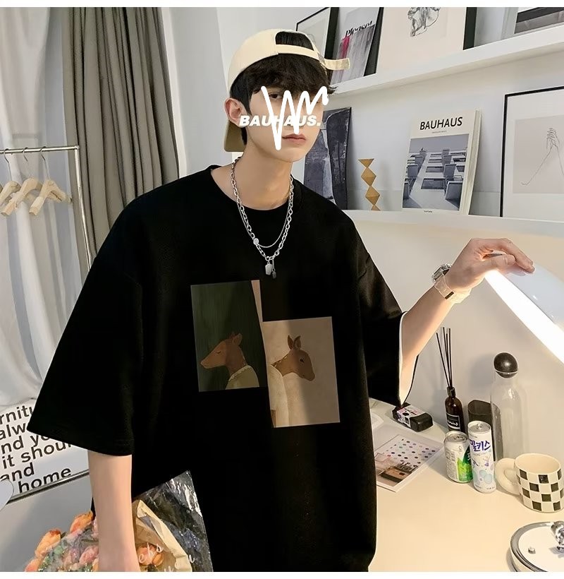 Kaus pria lengan pendek, kaus pria lengan pendek, mode longgar, kaus Amerika, retro, semua-cocok, atasan setengah lengan muda, musim panas