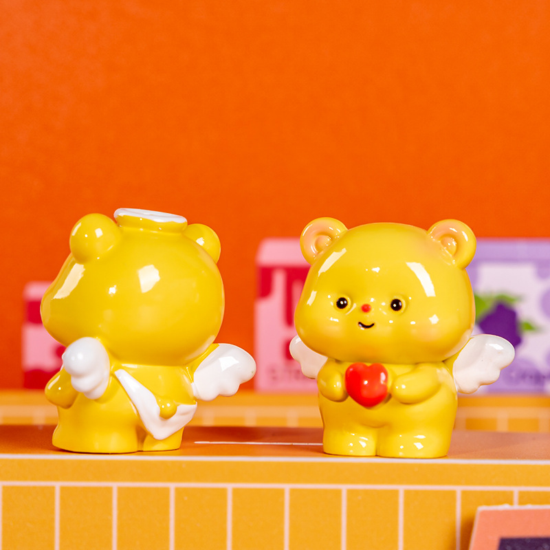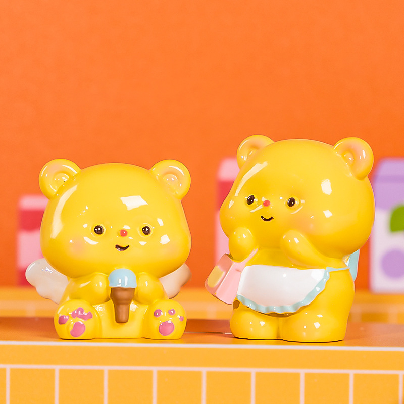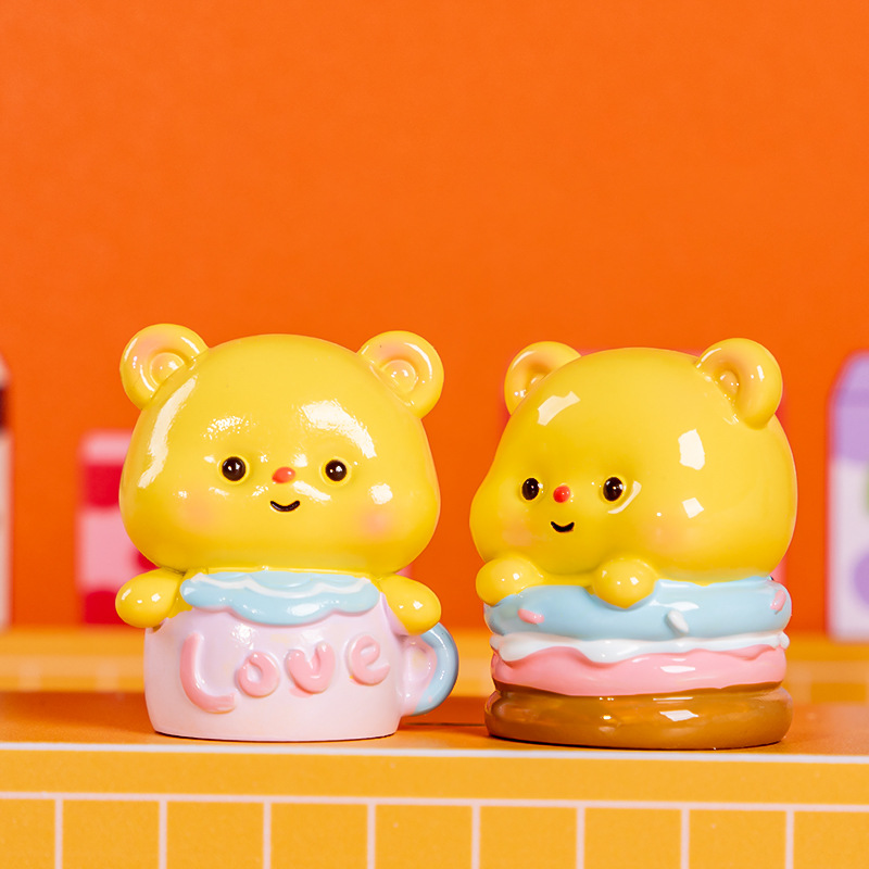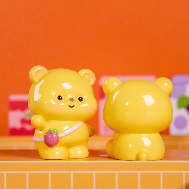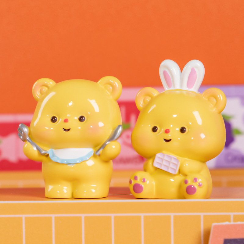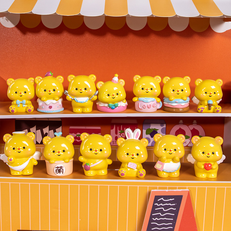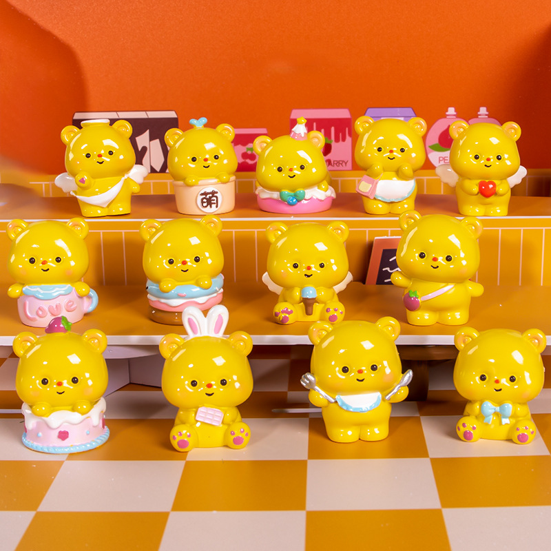 Kotak Buta Beruang Kecil Mentega Kotak Buta Beruang Kecil Kartun Trendi Mainan Tangan Resin Buta Hadiah Ornamen Meja Hadiah