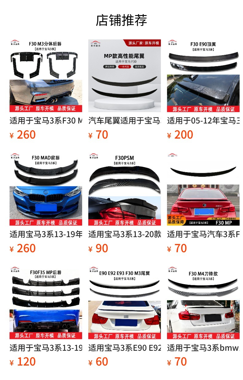 适用2013-2020宝马bmw 3系f30 318i 320i M4刀锋款尾翼顶翼改装件