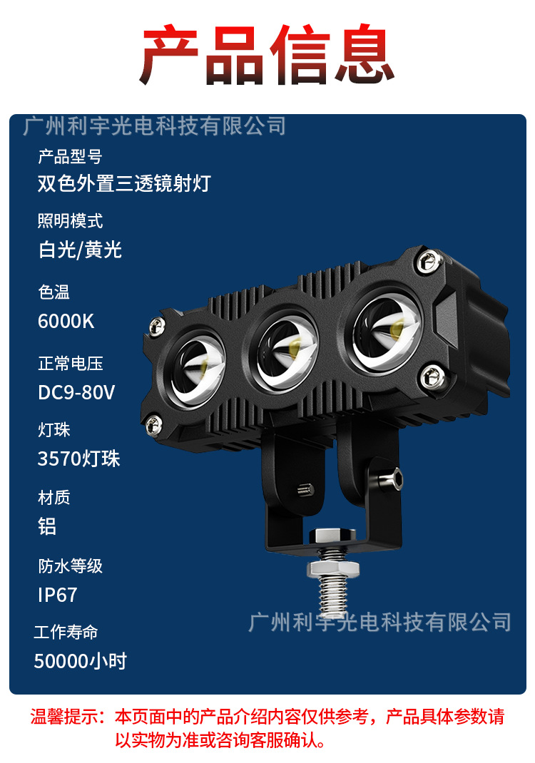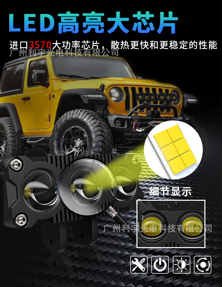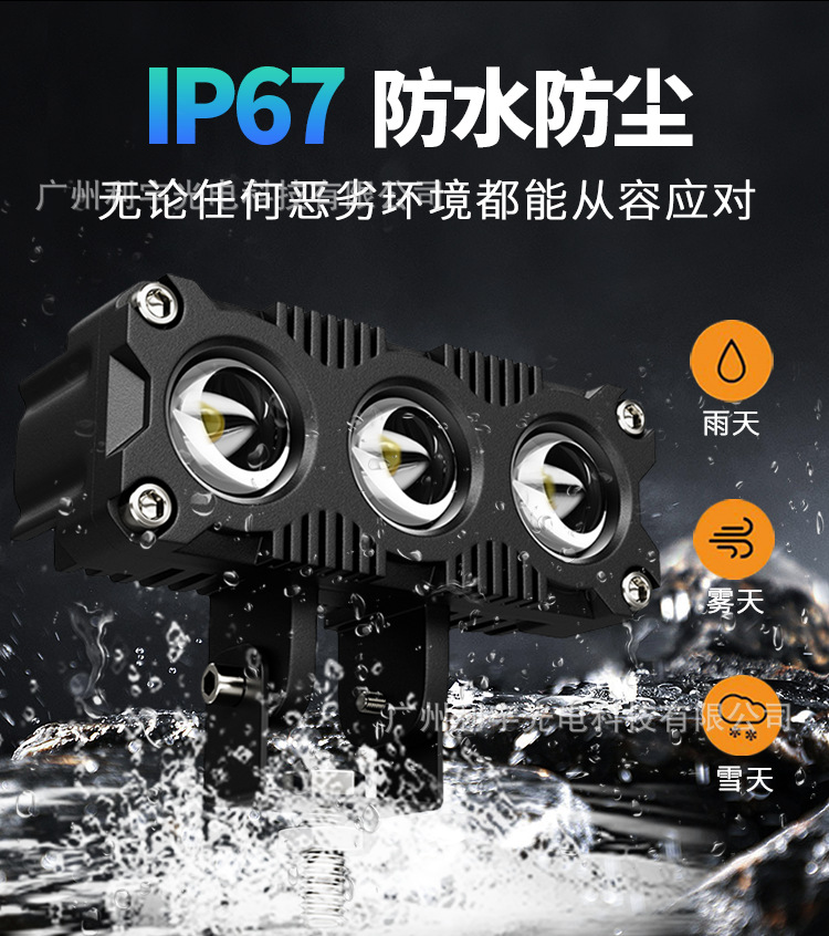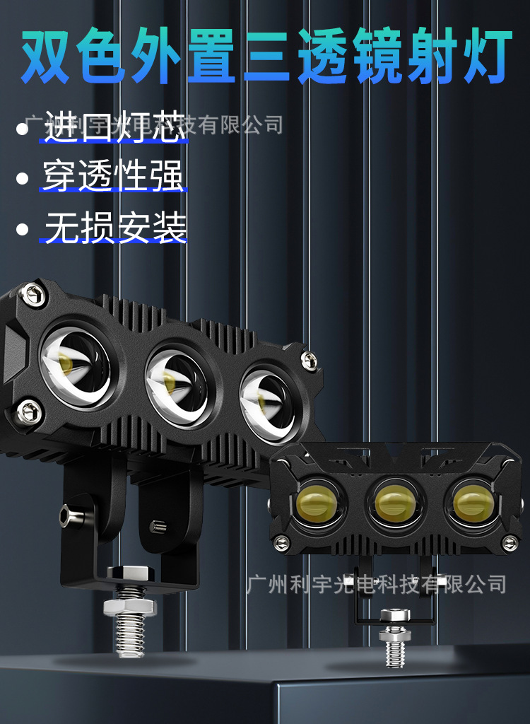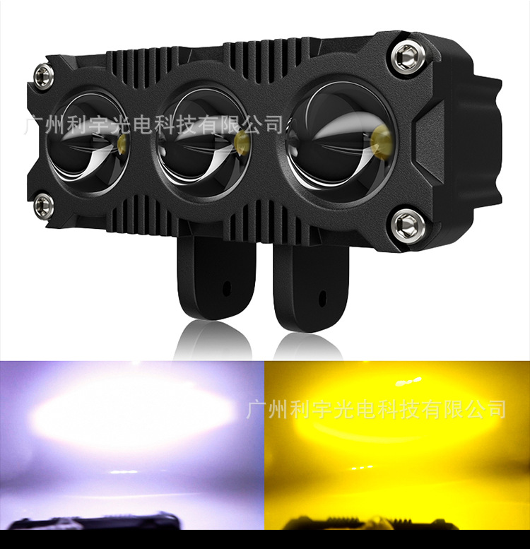 Lampu sorot led sepeda motor listrik, lampu depan mobil lensa tiga mata kuning putih, lampu bantu modifikasi kendaraan off-road