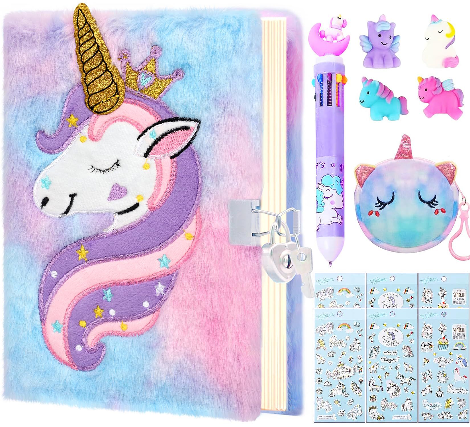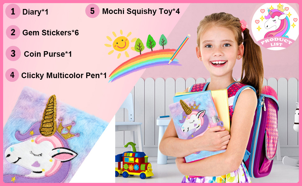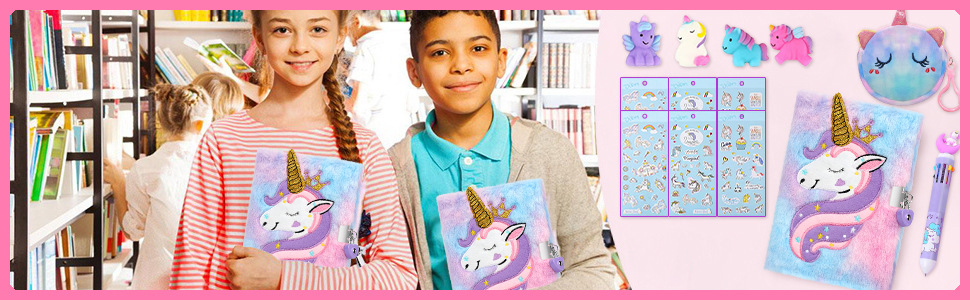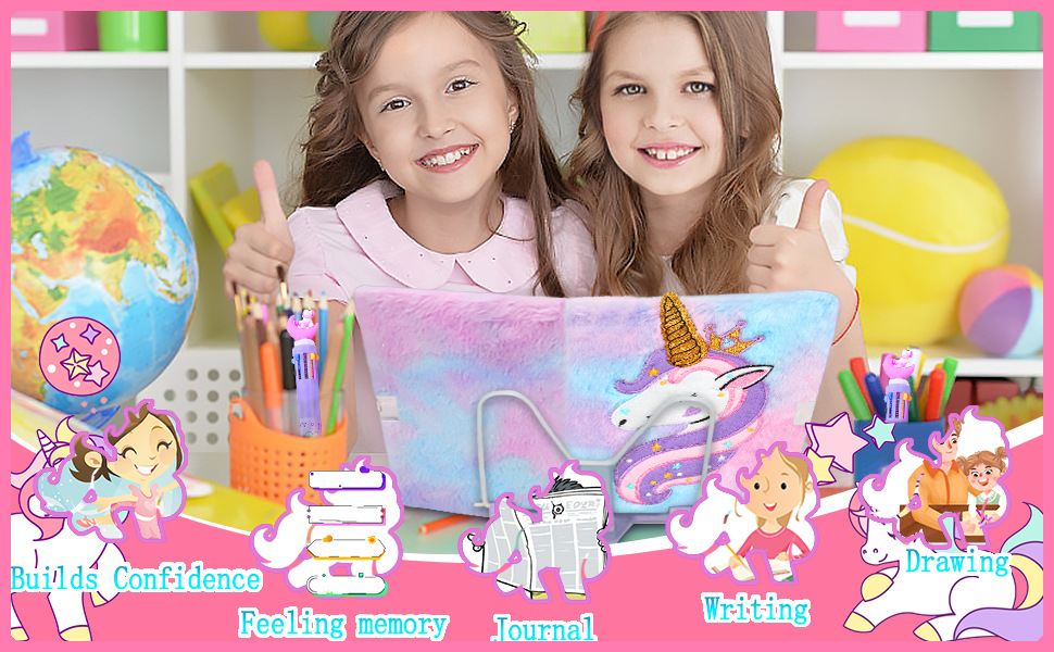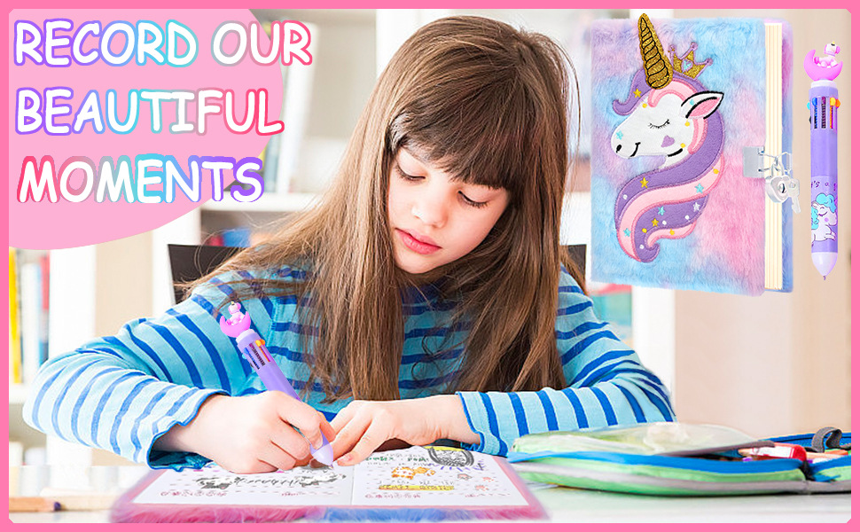Buku Harian Unicorn dengan kunci dan kunci setelan putri buku harian rahasia buku harian hadiah Natal anak perempuan