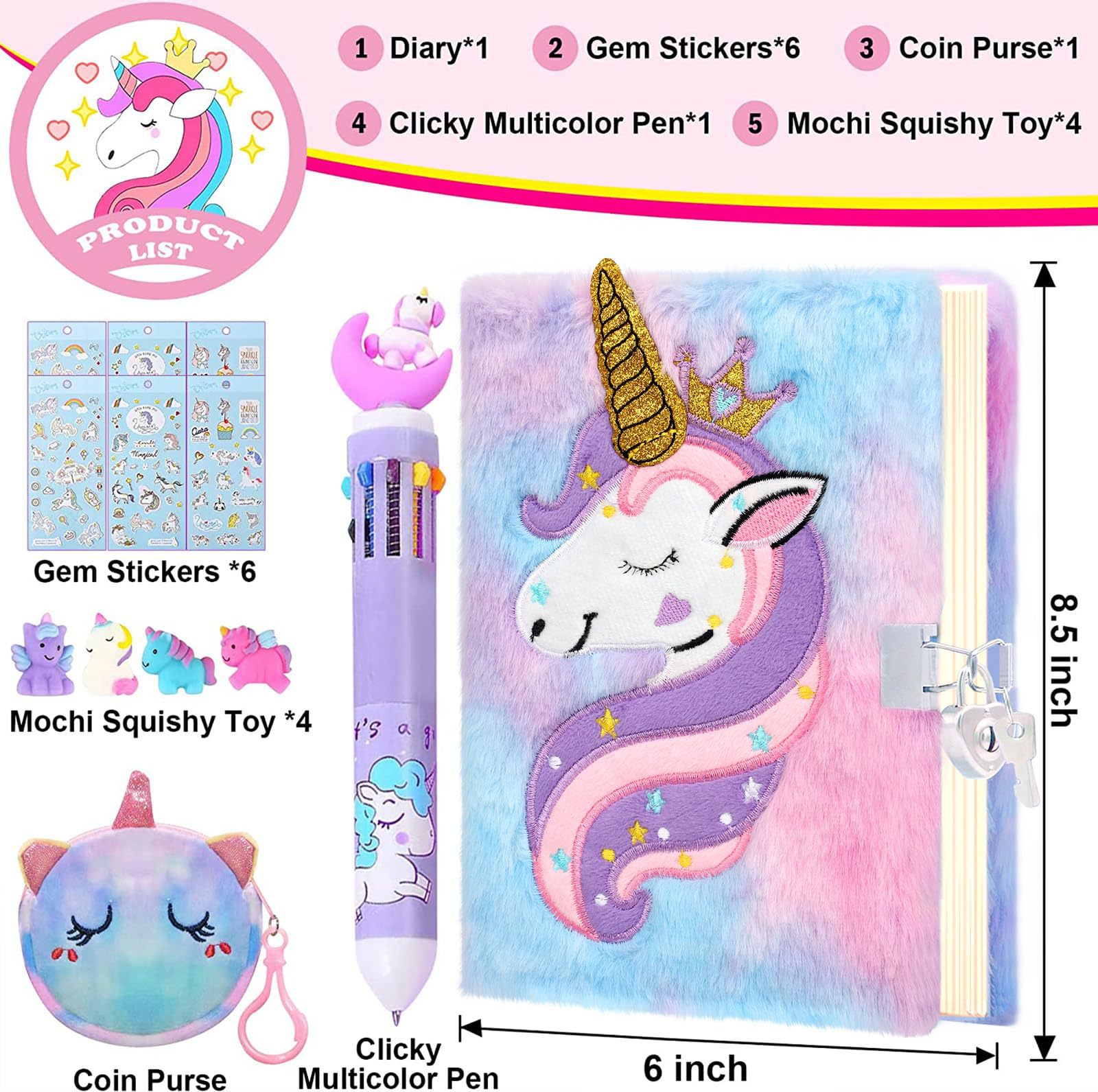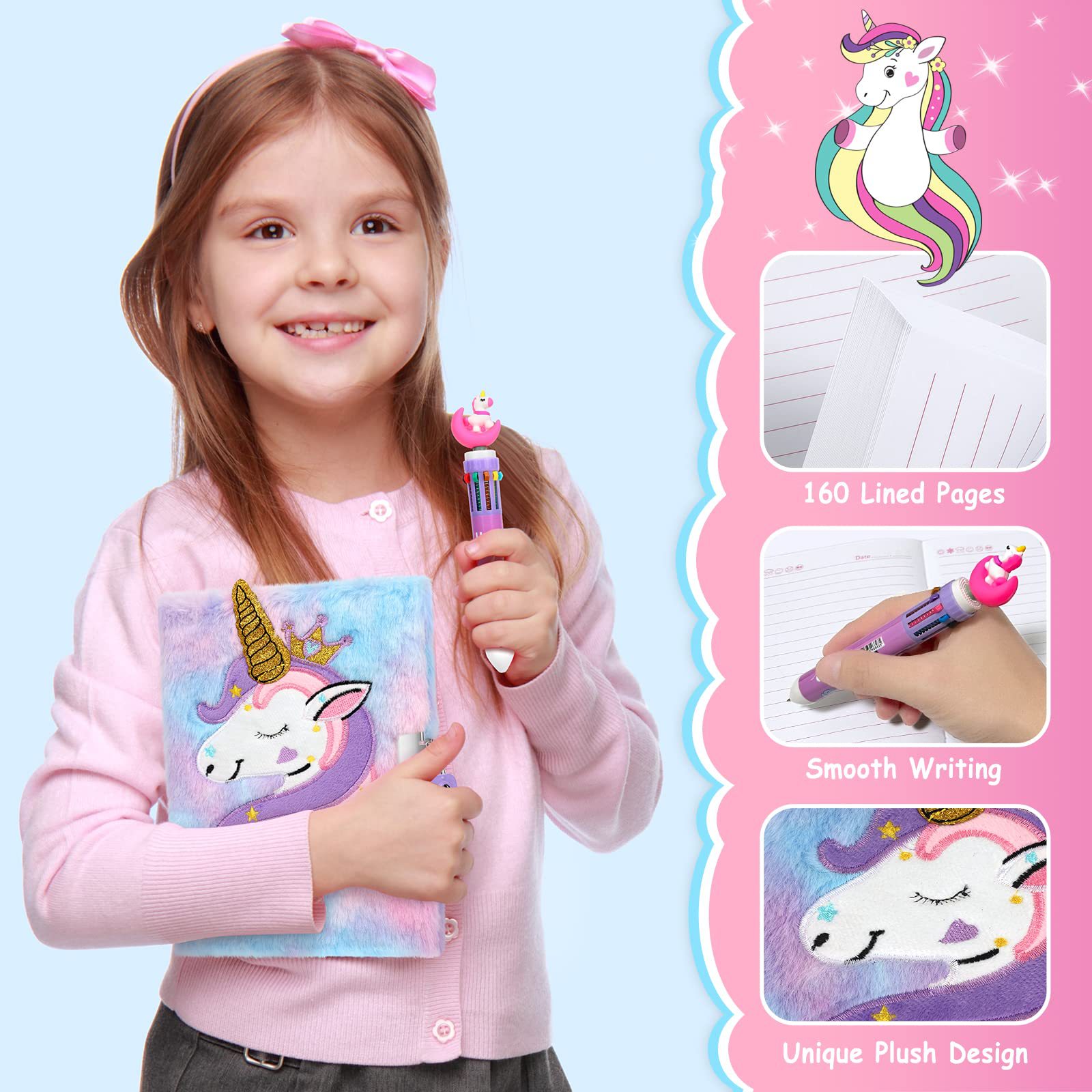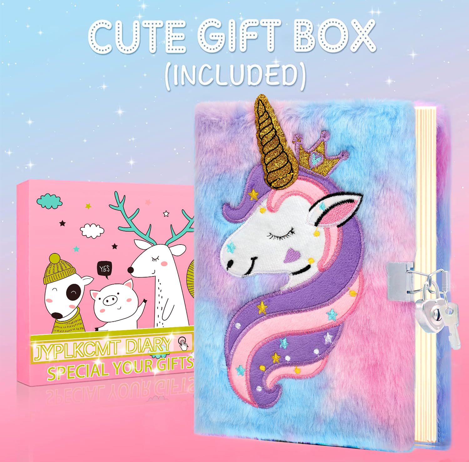 Buku Harian Unicorn dengan kunci dan kunci setelan putri buku harian rahasia buku harian hadiah Natal anak perempuan