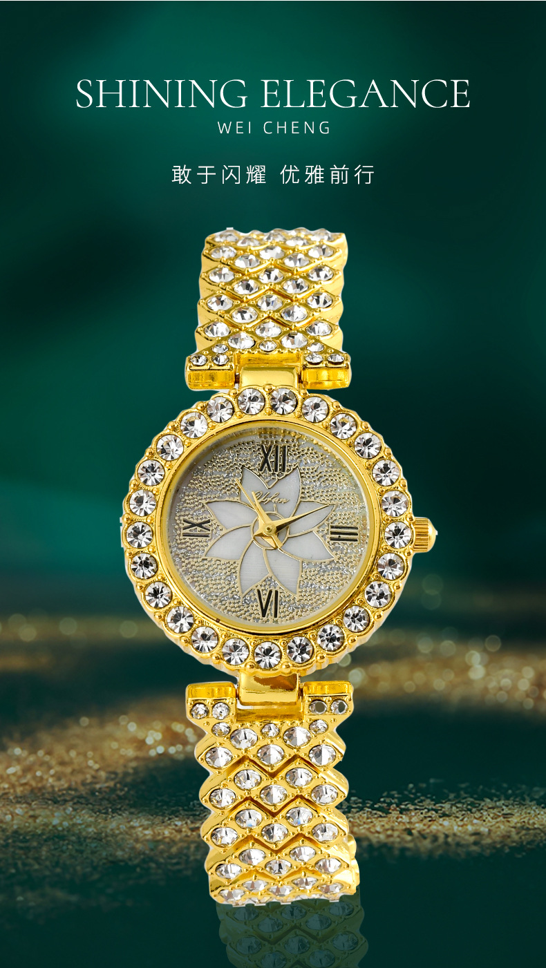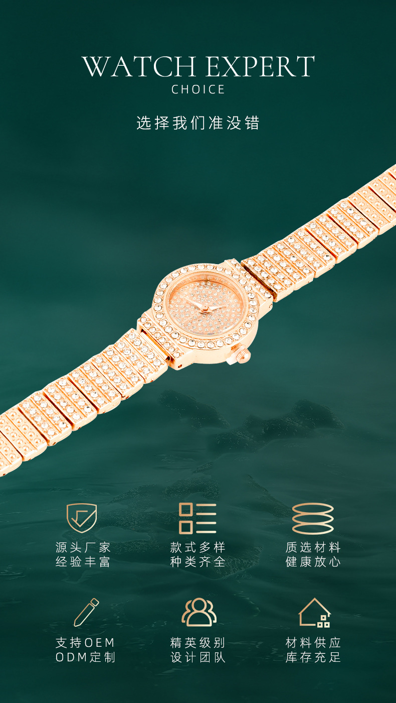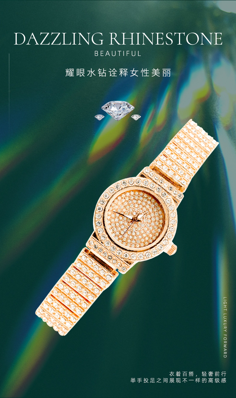 一件代发镶钻气质石英手表watch防水女款百搭罗马纹镶钻女士表