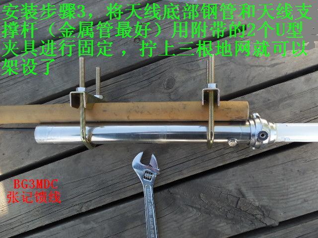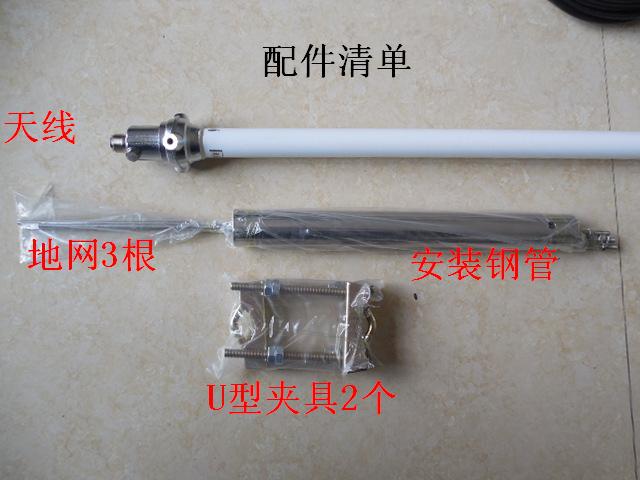 天线组装架设方法见宝贝图片介绍。附送2个U型固定夹具,找根金属管子或者木棍固定后垂直架设即可。天线底部馈线接口为M母接口(也叫SL16K接口),本宝贝不带馈线,如果需要,用户可以在本店另外购买,可以按照用户要求制作各种长度和接头的馈线。