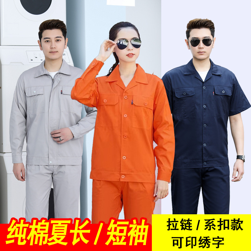 纯棉工作服薄款男装夏季短长袖工装工地工厂车间劳保服套装定制