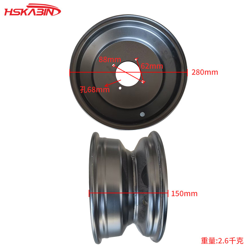ATV hub roda depan sepeda motor 10 inci, hub roda besi 4 lubang hitam
