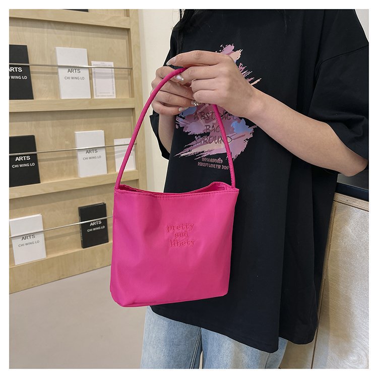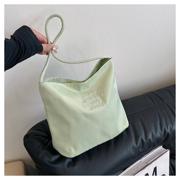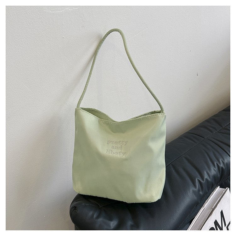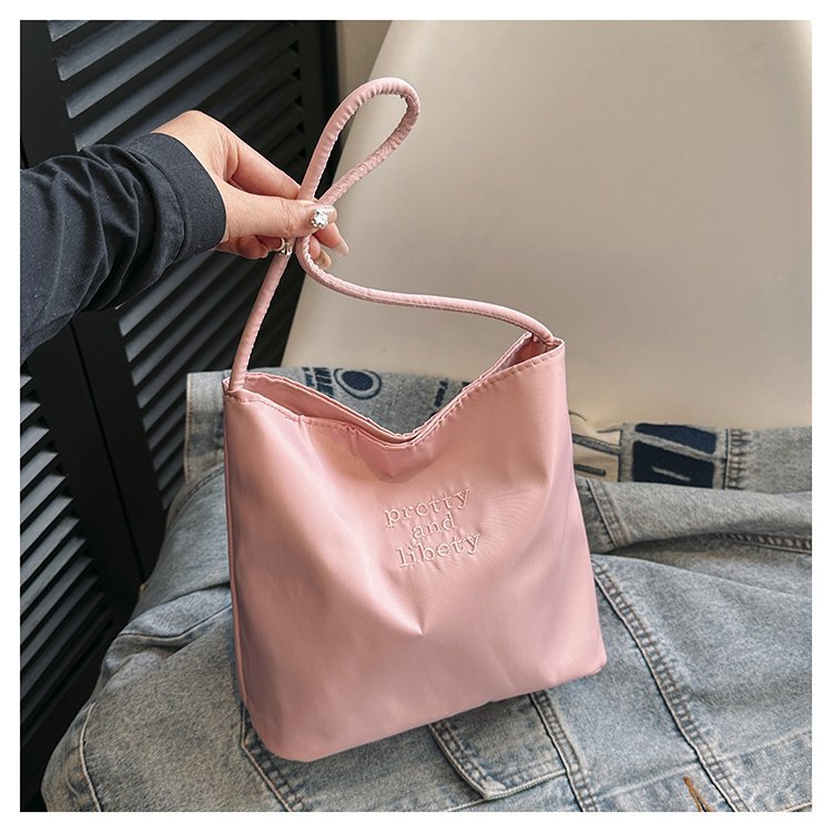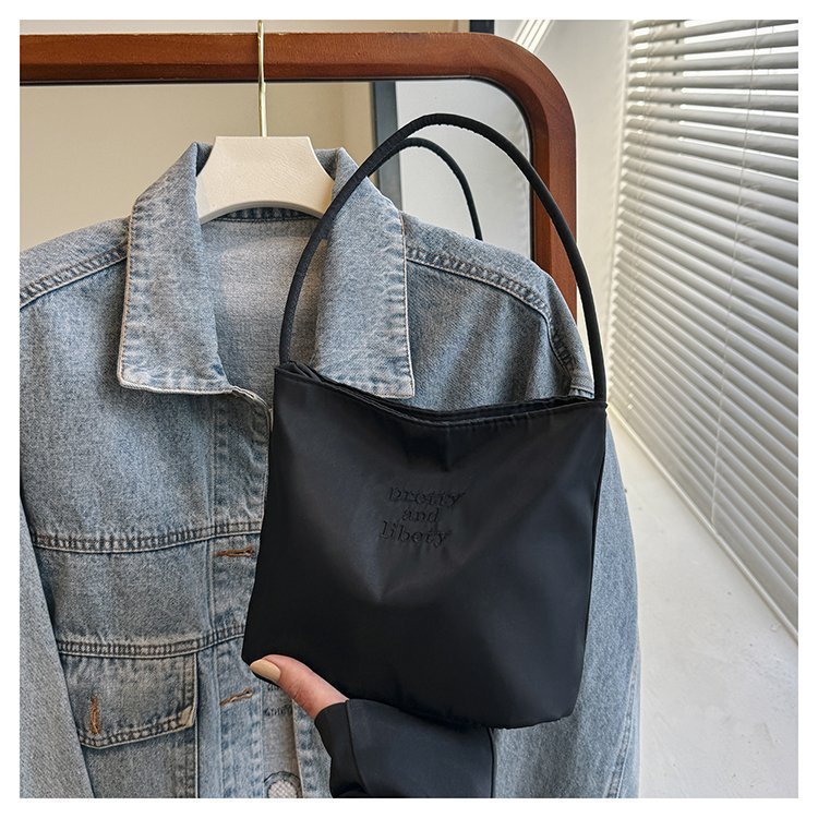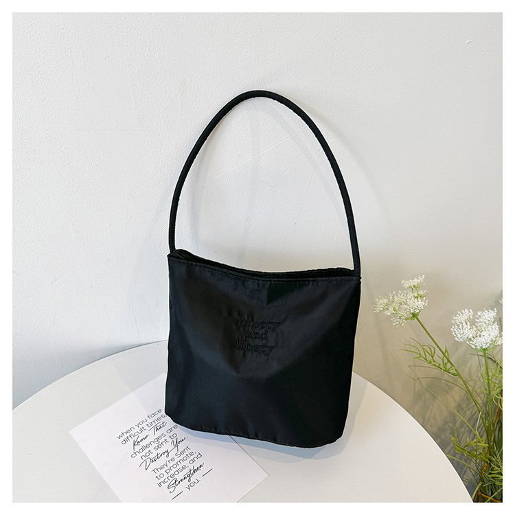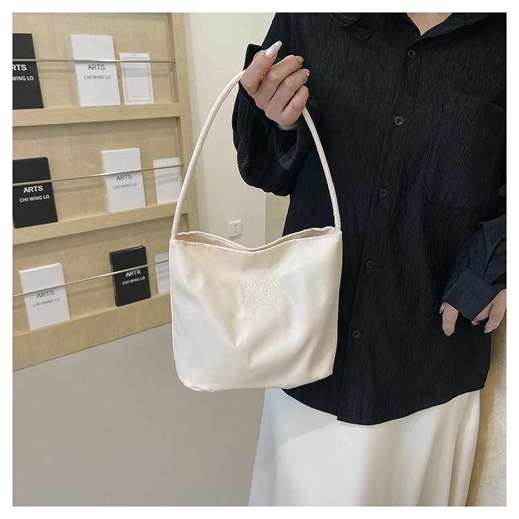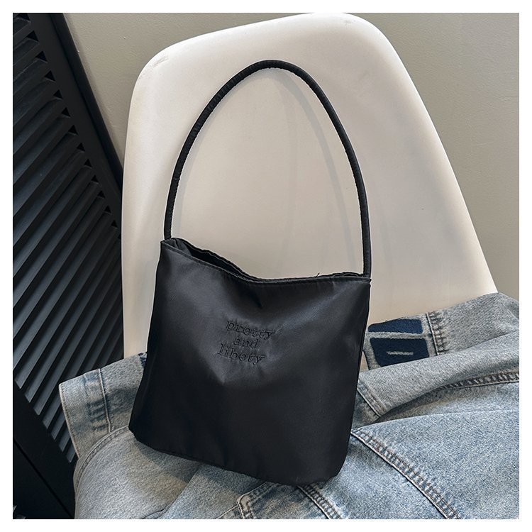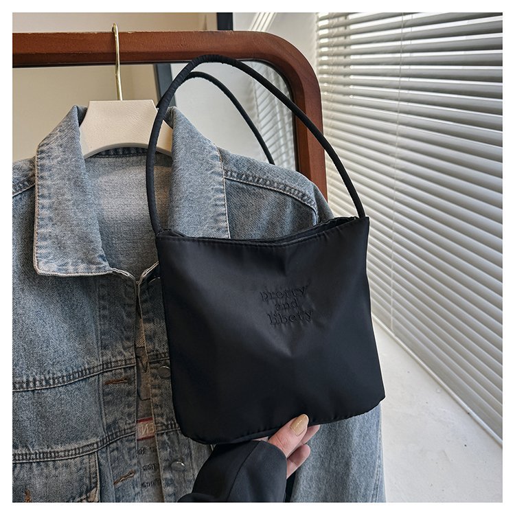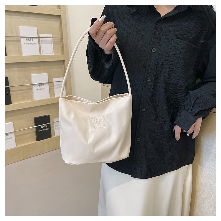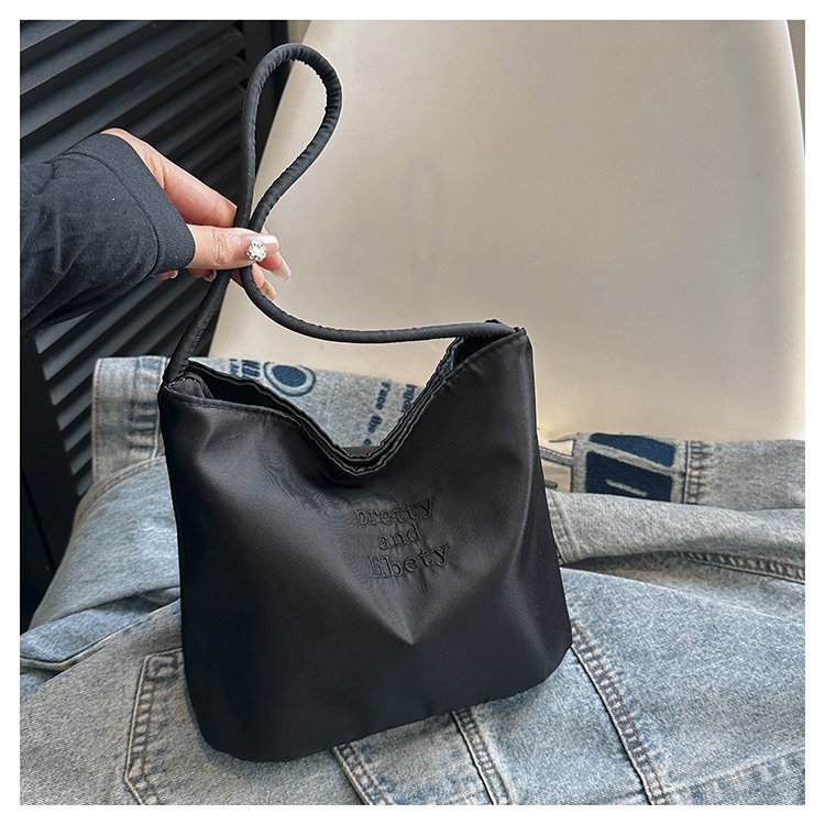 2024 musim panas baru sederhana nilon tas ketiak Korea Selatan desain ceruk huruf bordir portabel tas bucket komuter