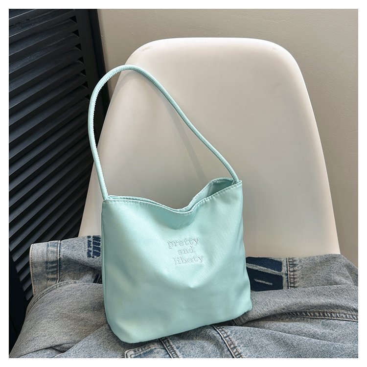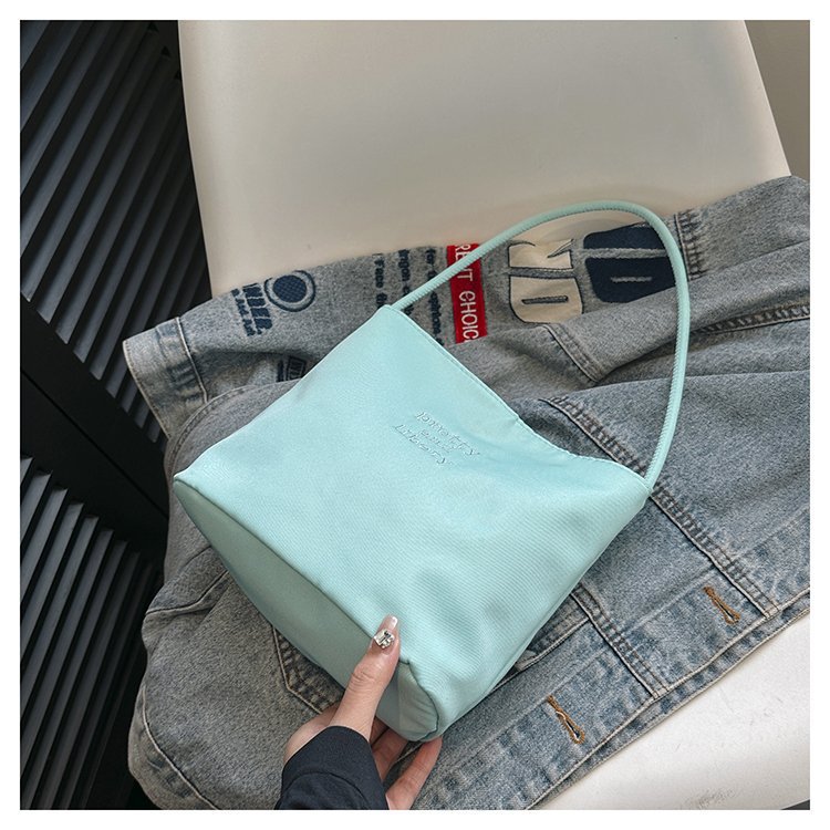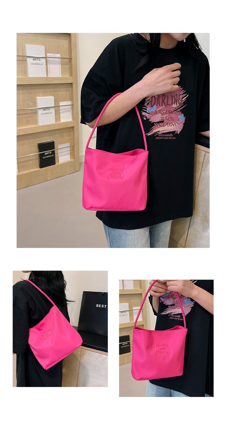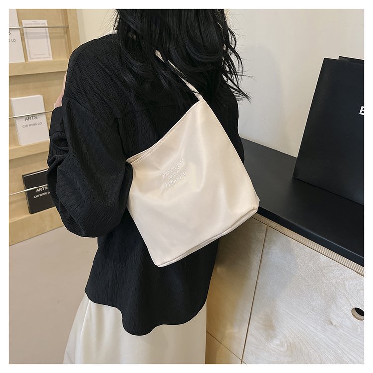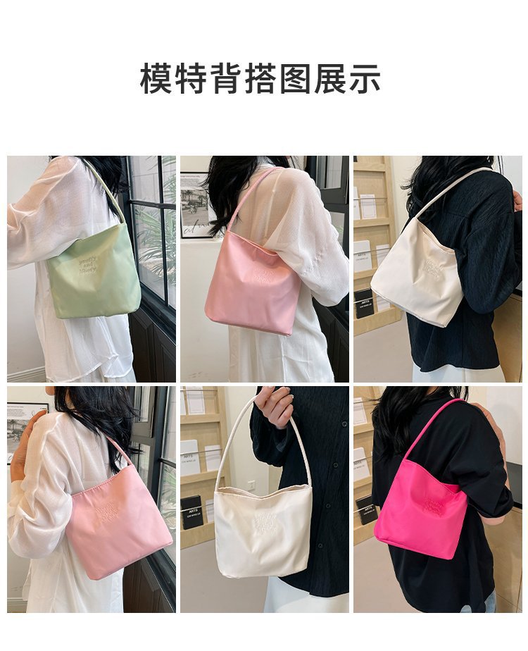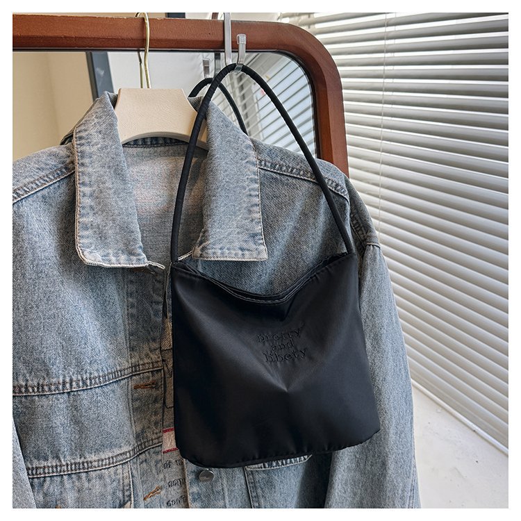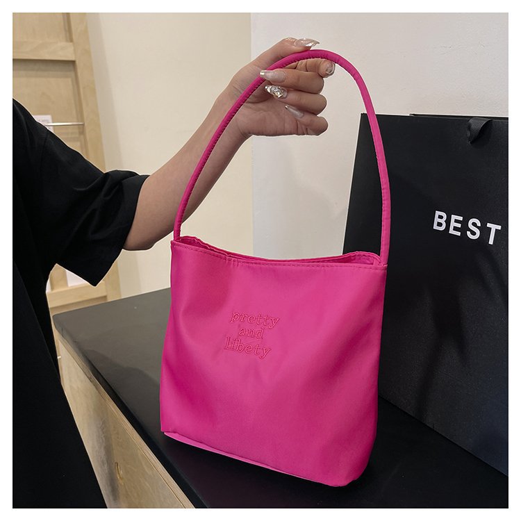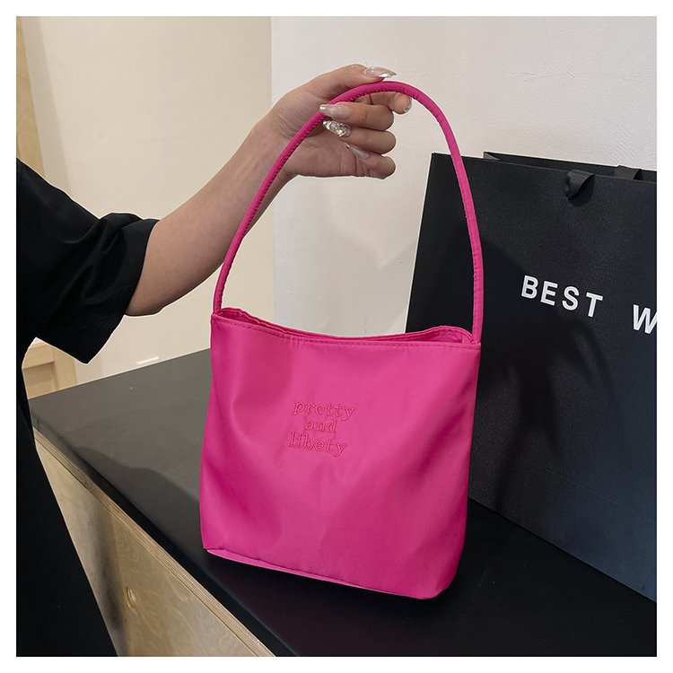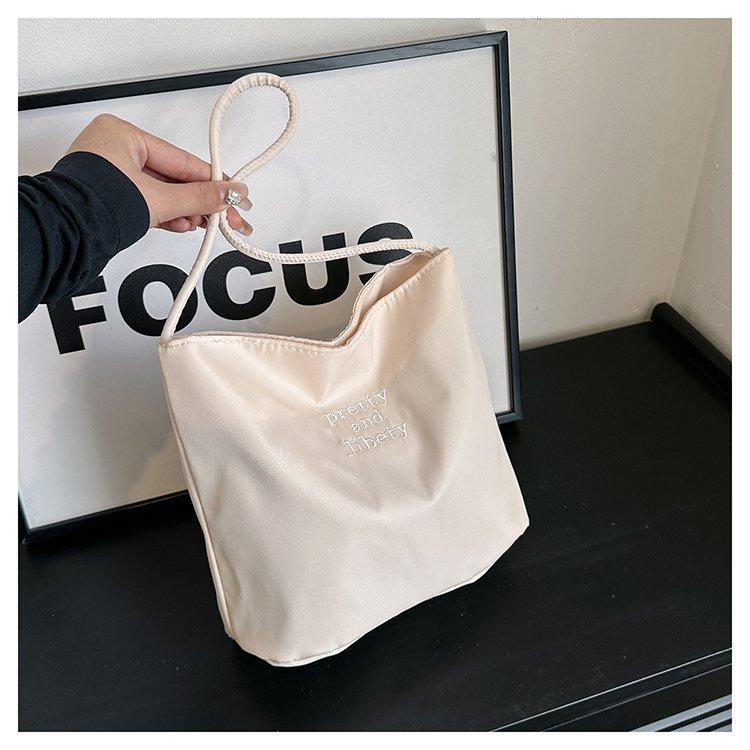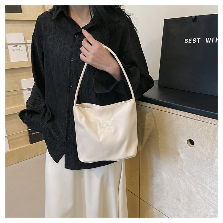2024 musim panas baru sederhana nilon tas ketiak Korea Selatan desain ceruk huruf bordir portabel tas bucket komuter