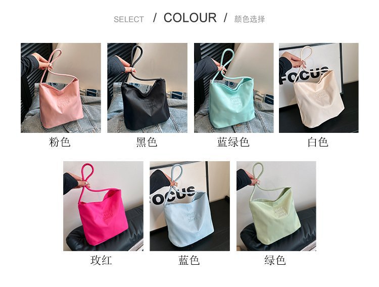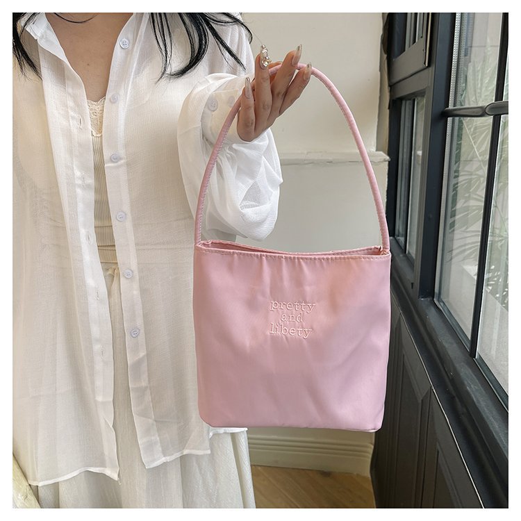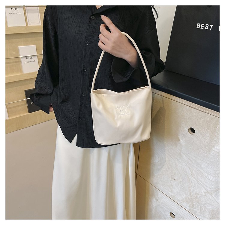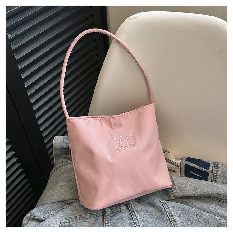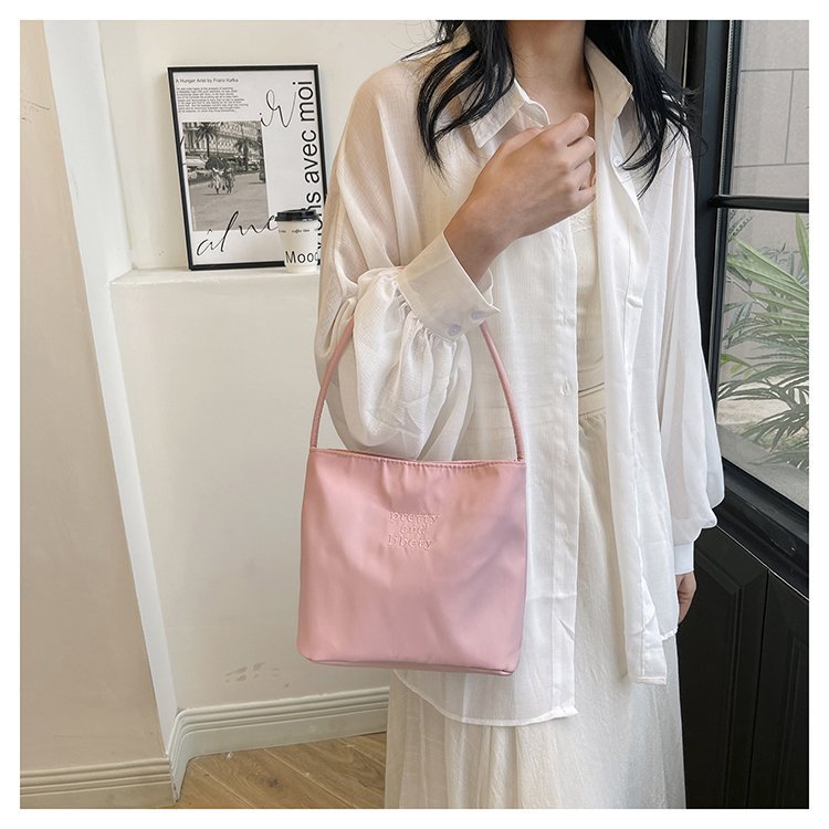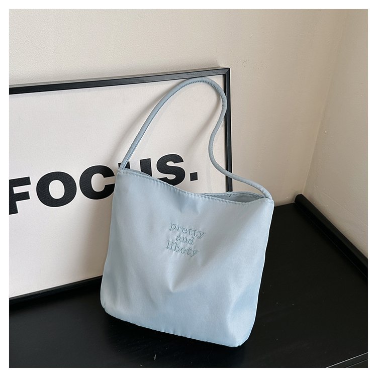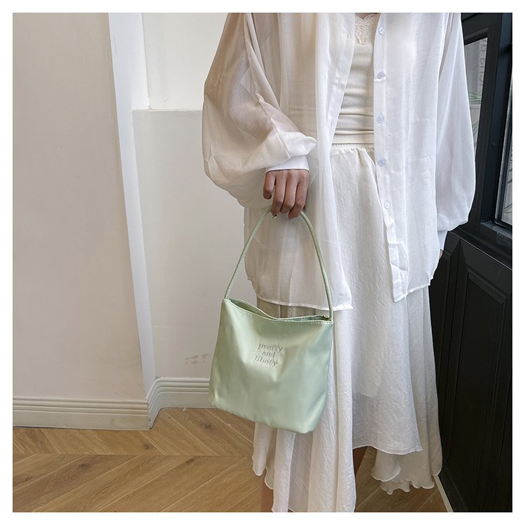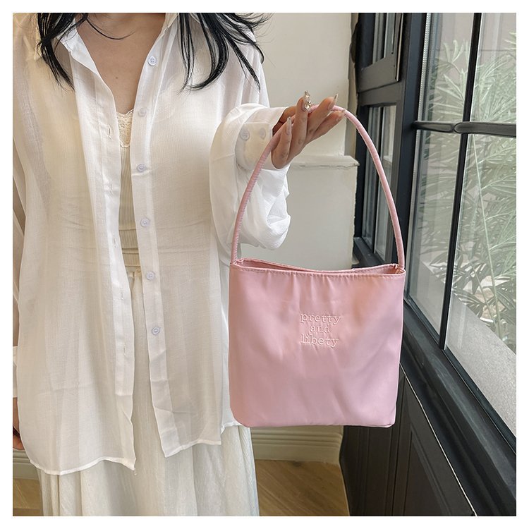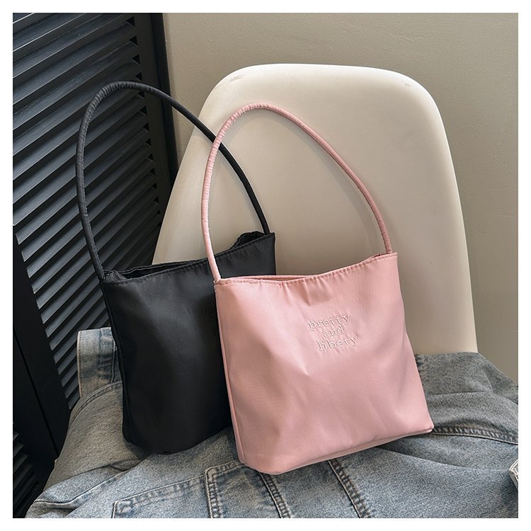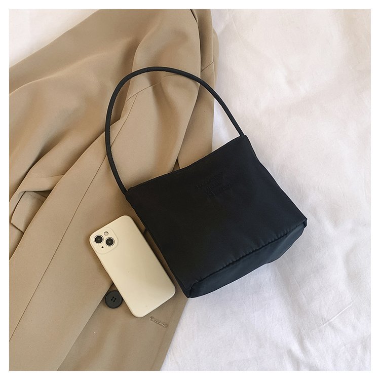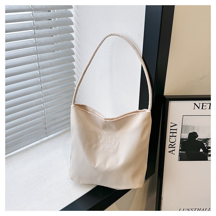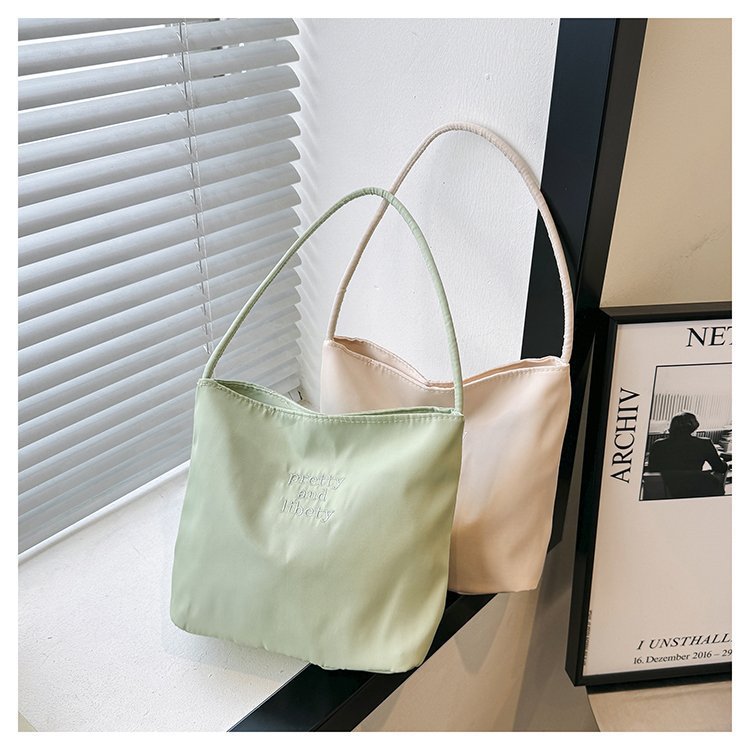 2024 musim panas baru sederhana nilon tas ketiak Korea Selatan desain ceruk huruf bordir portabel tas bucket komuter