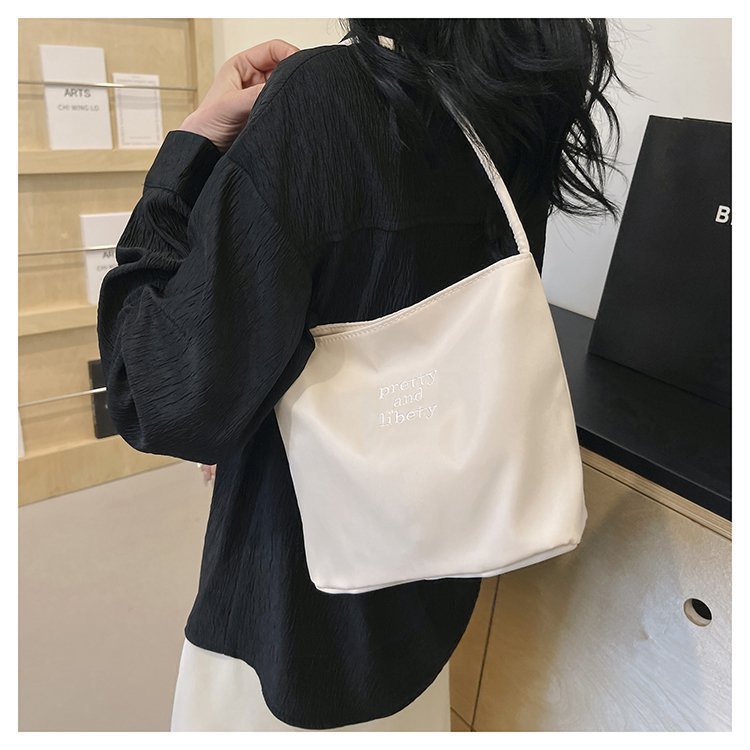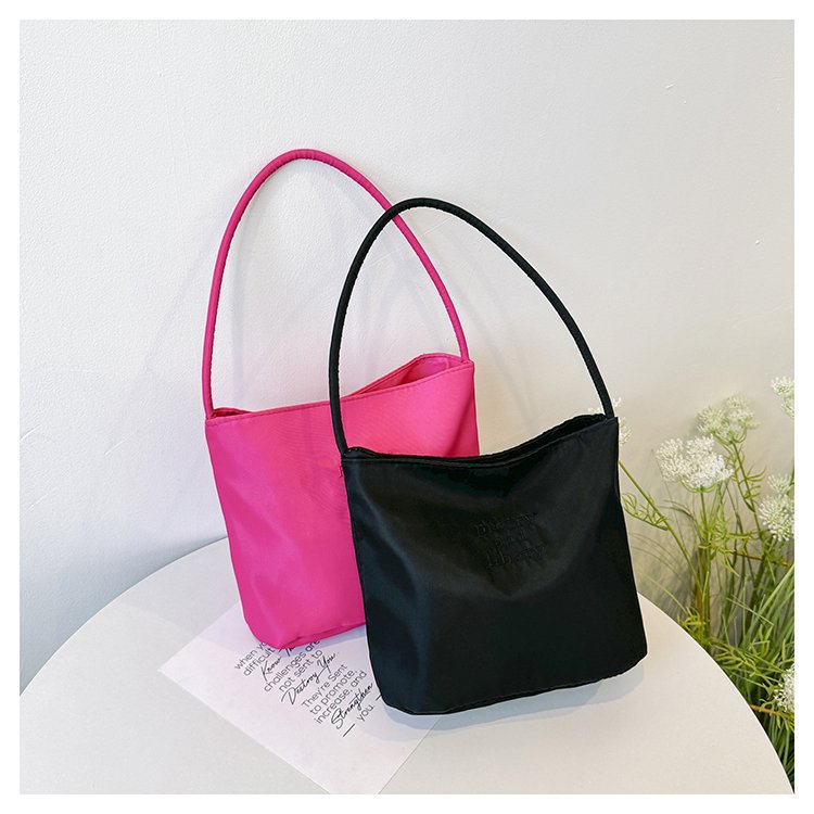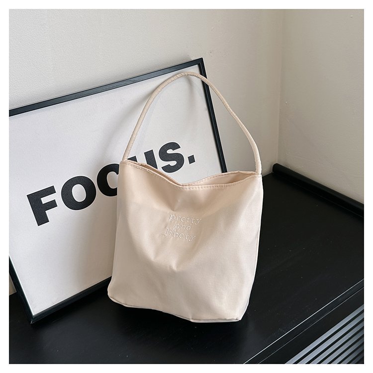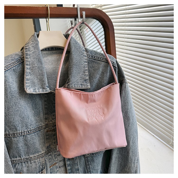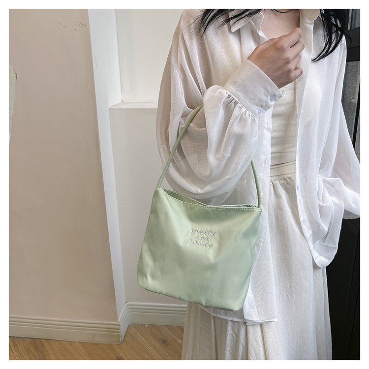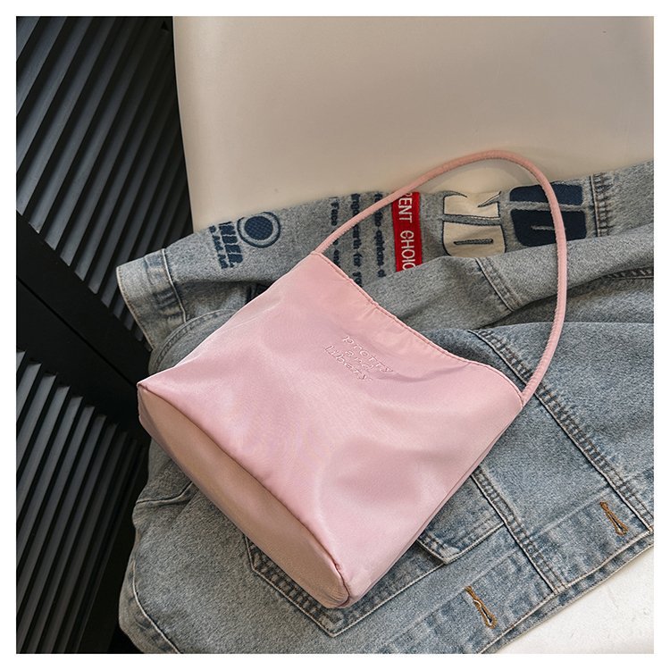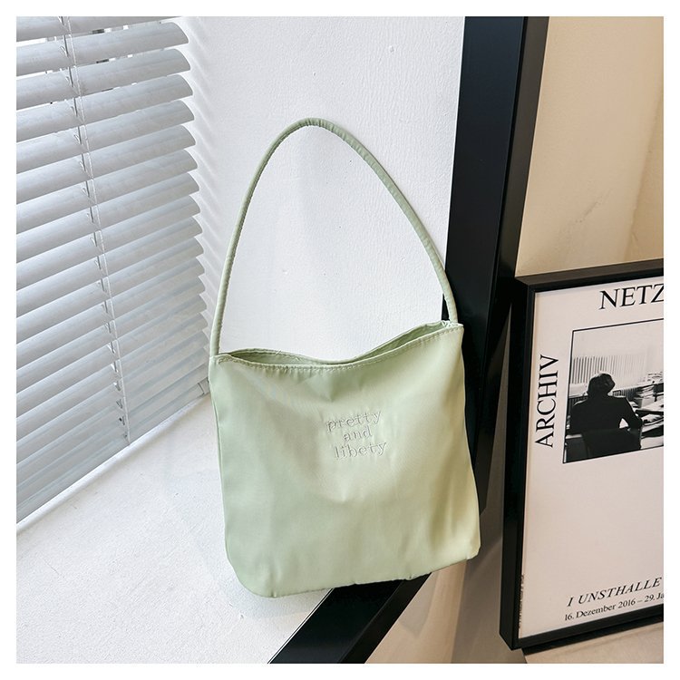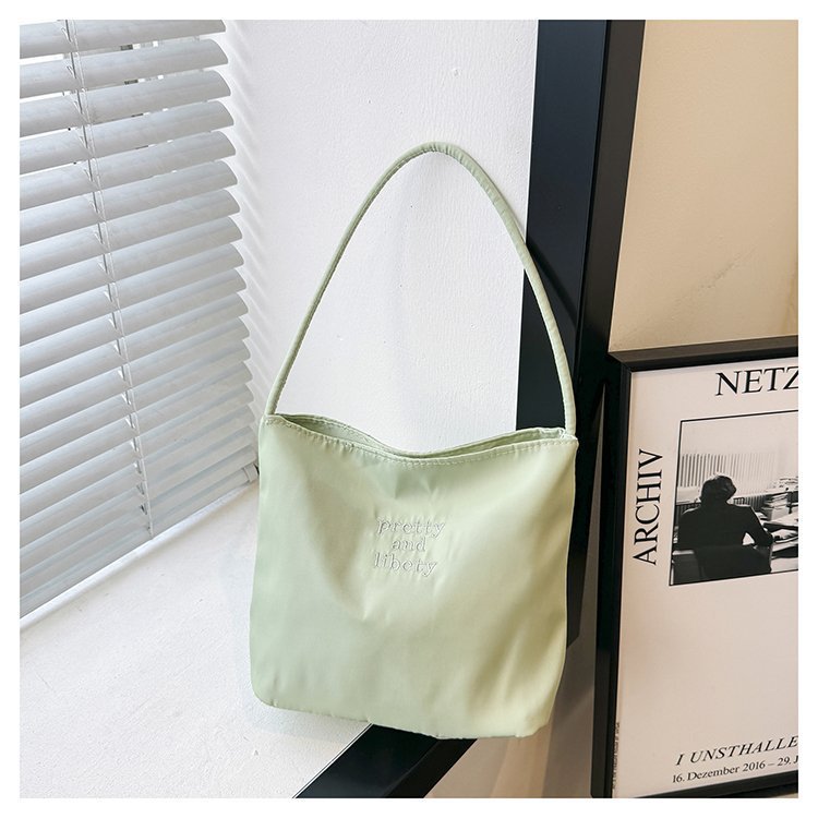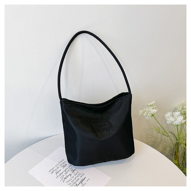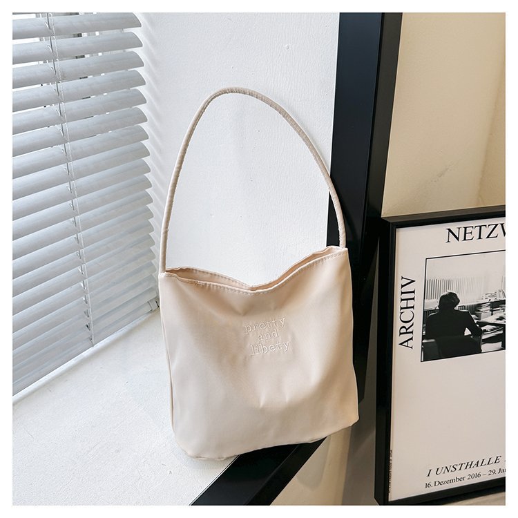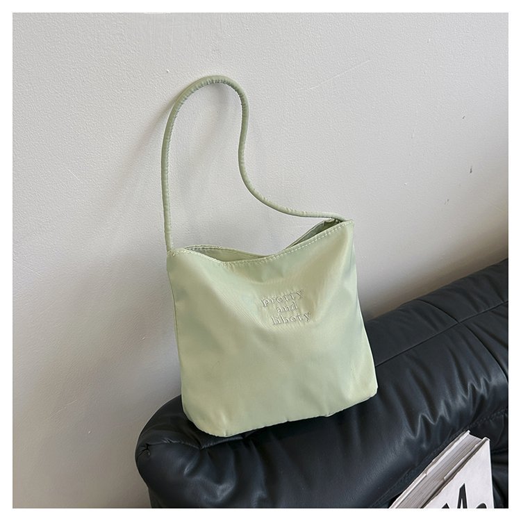 2024 musim panas baru sederhana nilon tas ketiak Korea Selatan desain ceruk huruf bordir portabel tas bucket komuter