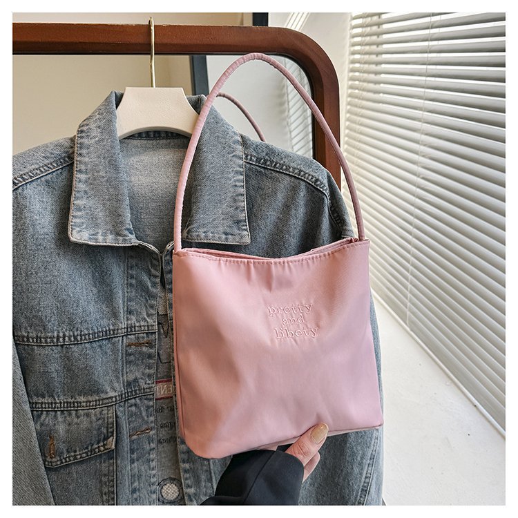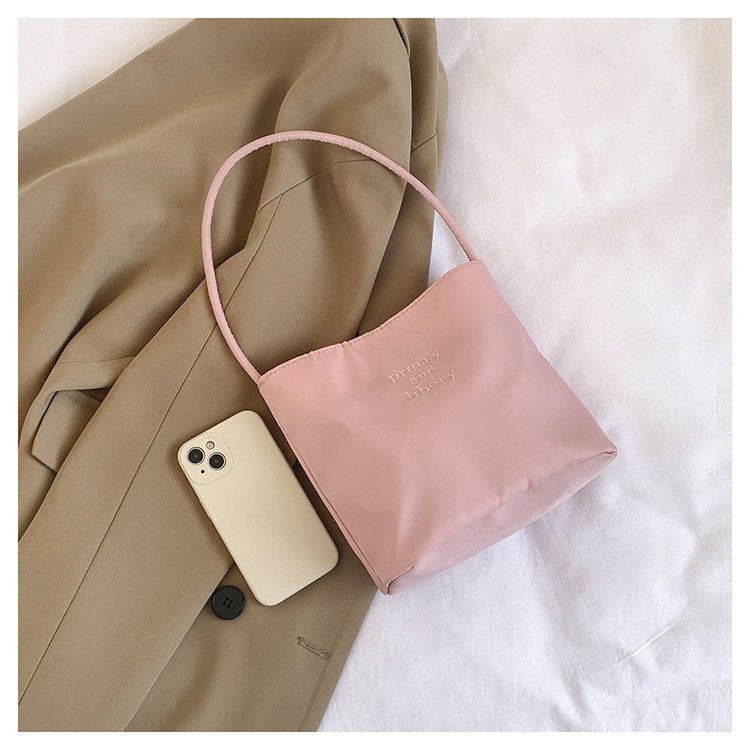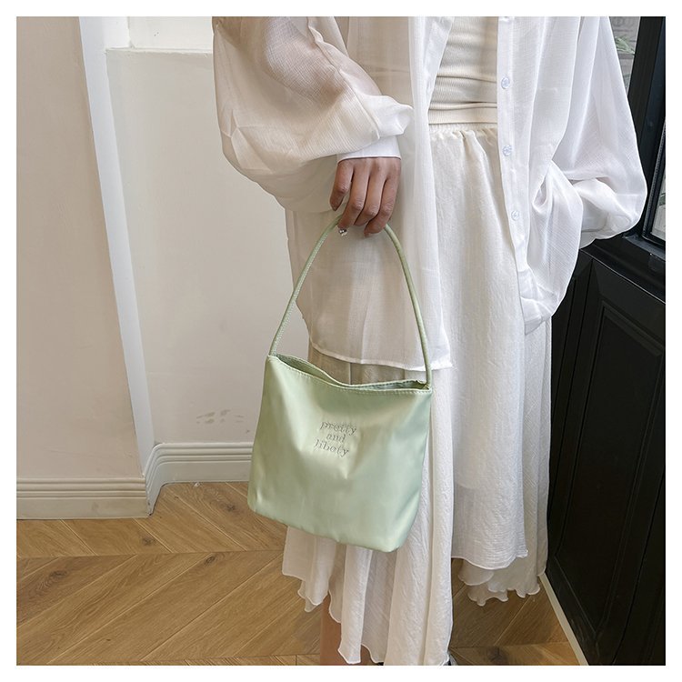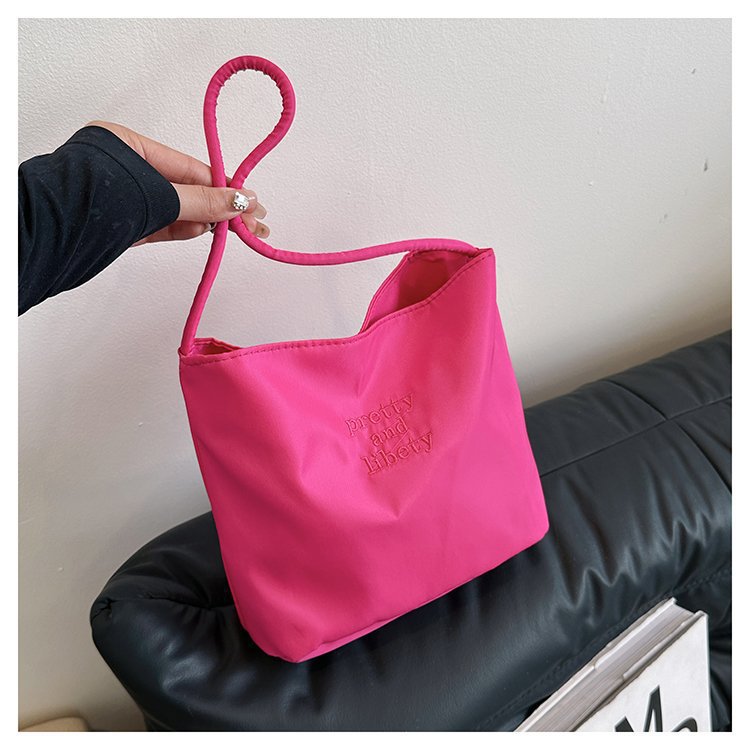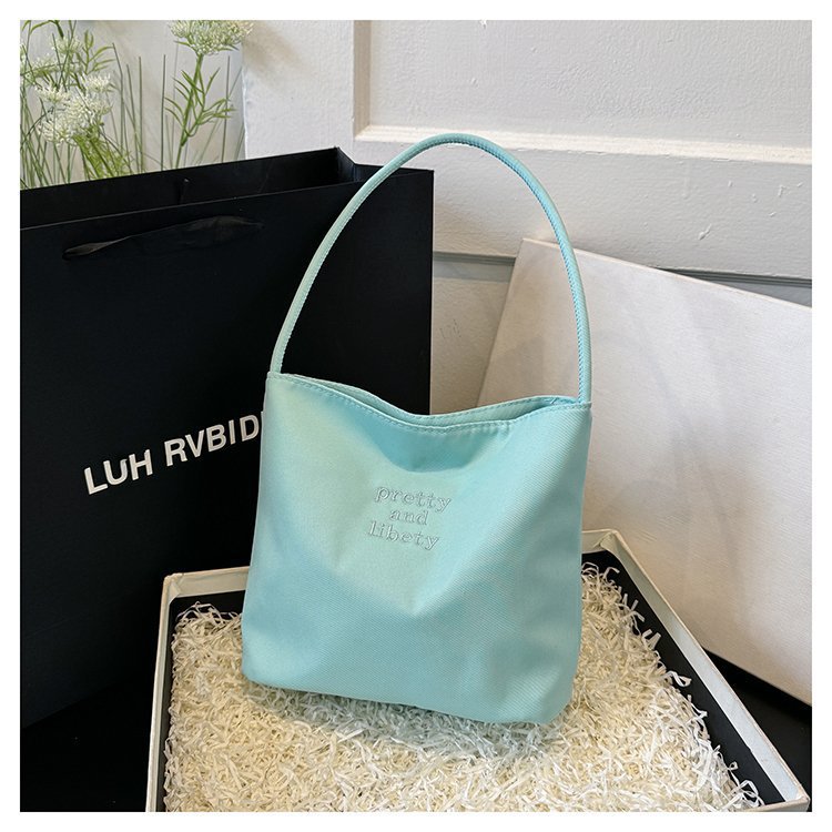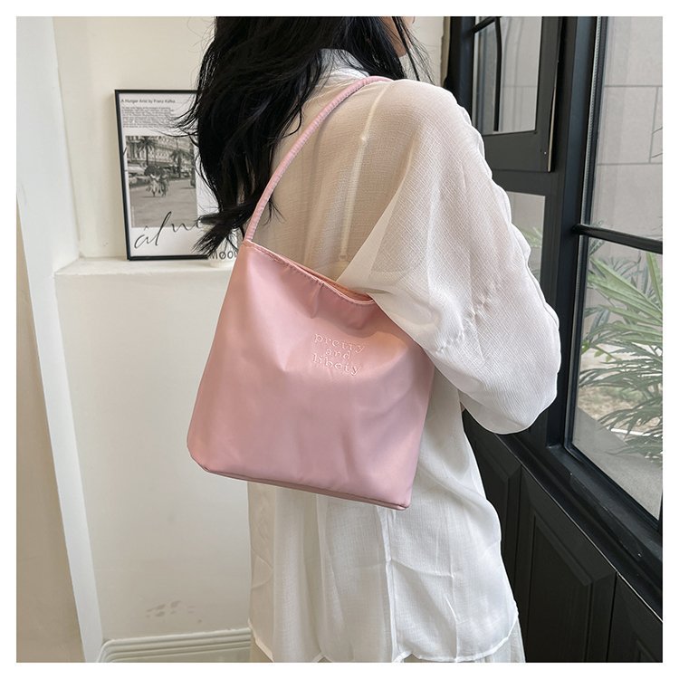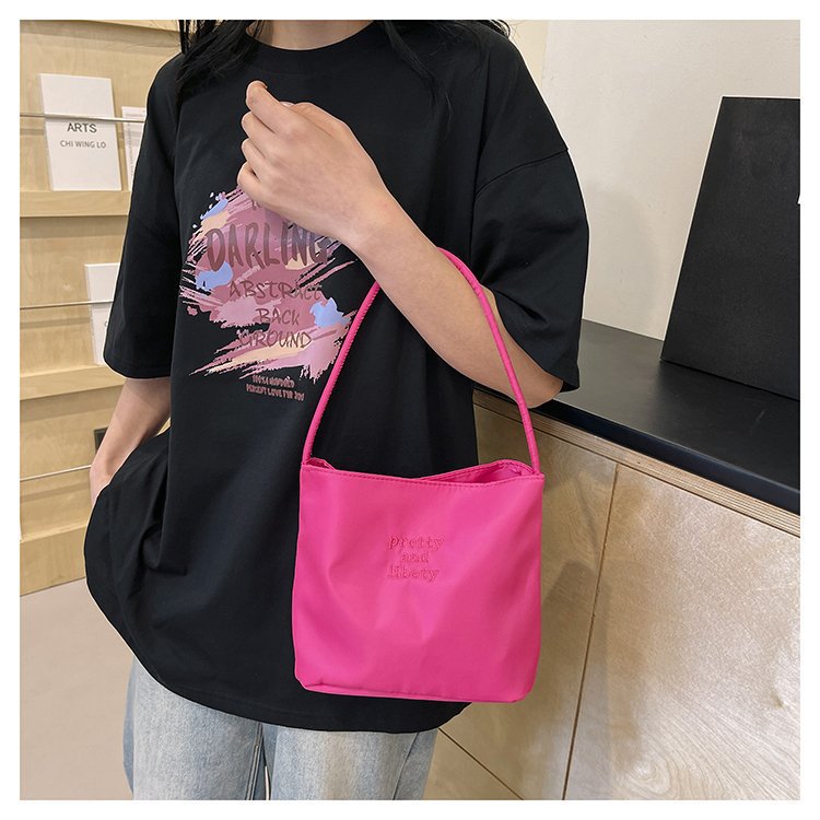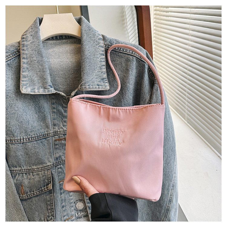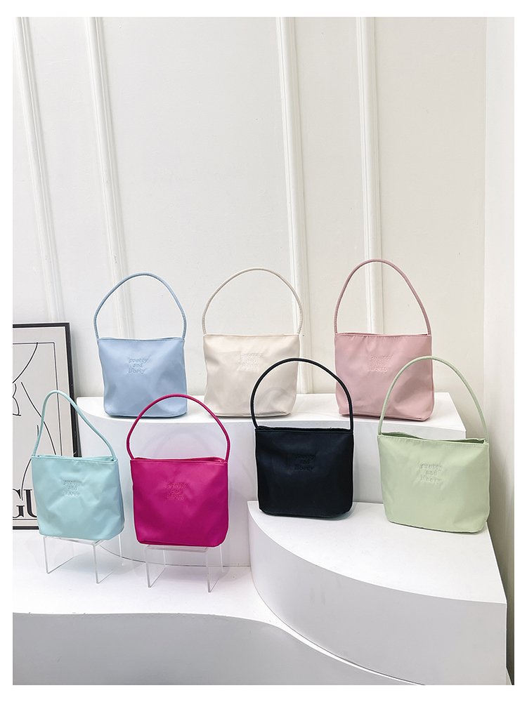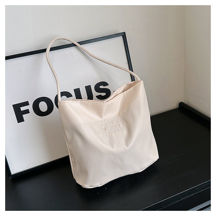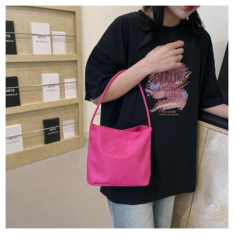 2024 musim panas baru sederhana nilon tas ketiak Korea Selatan desain ceruk huruf bordir portabel tas bucket komuter