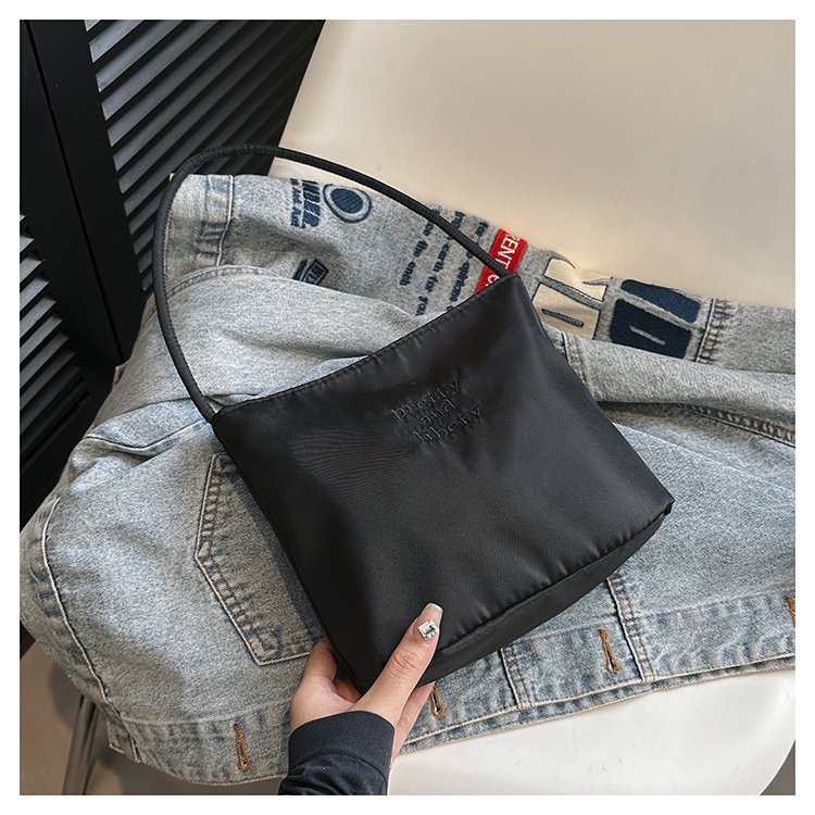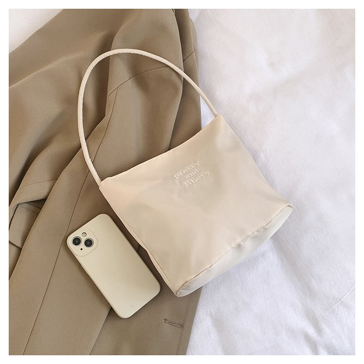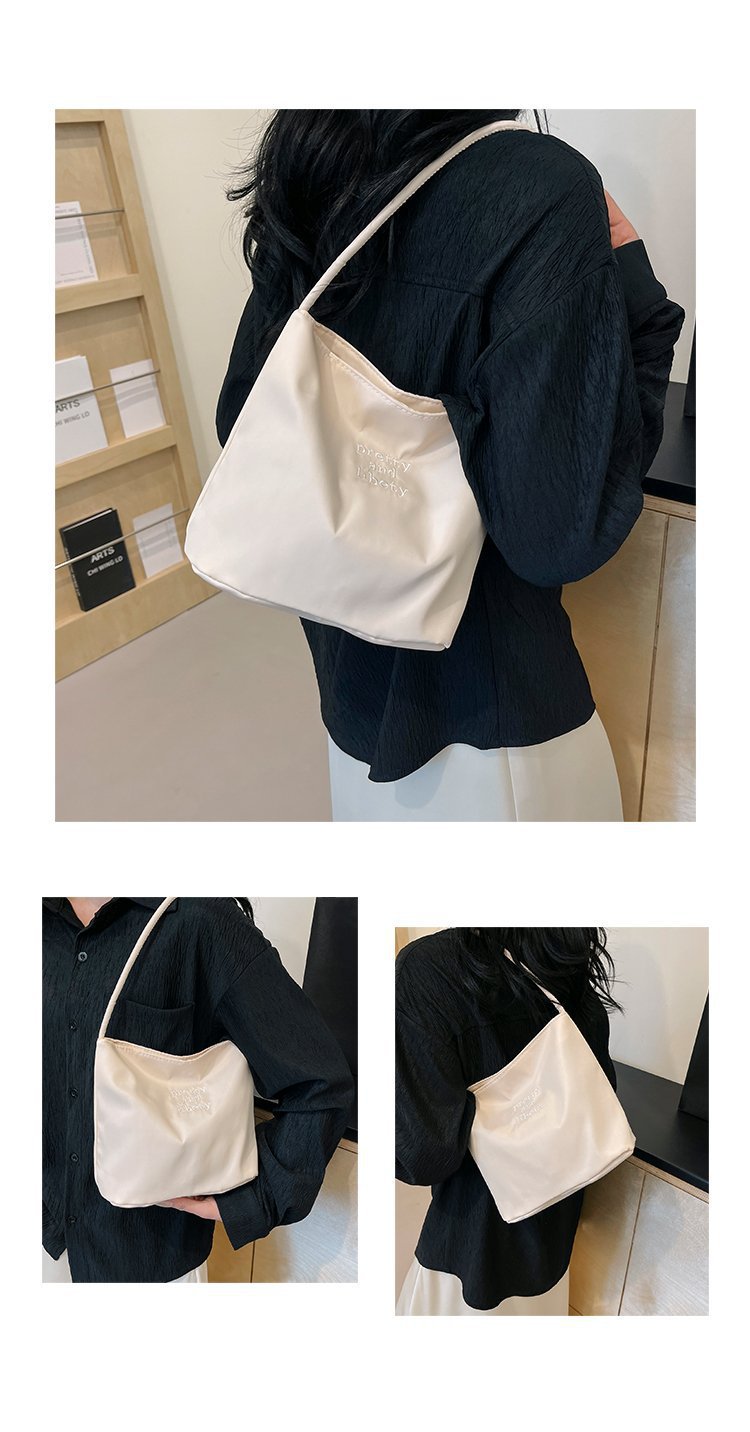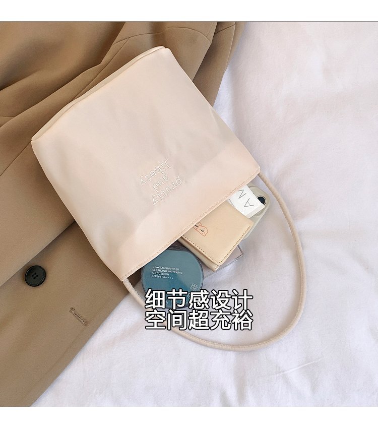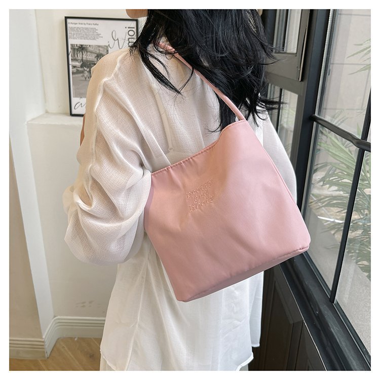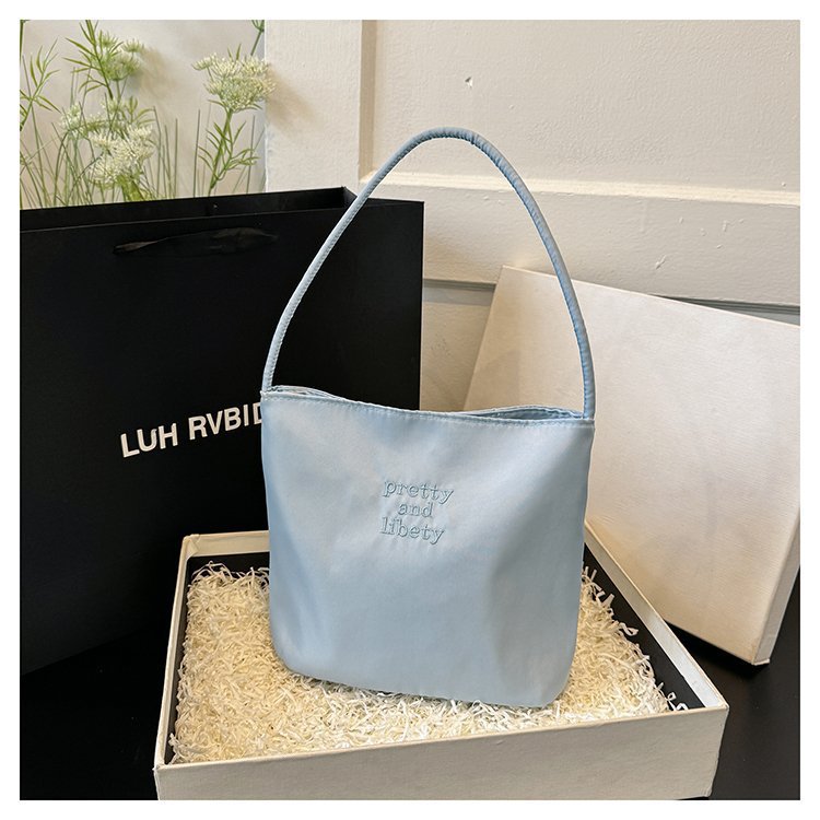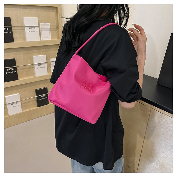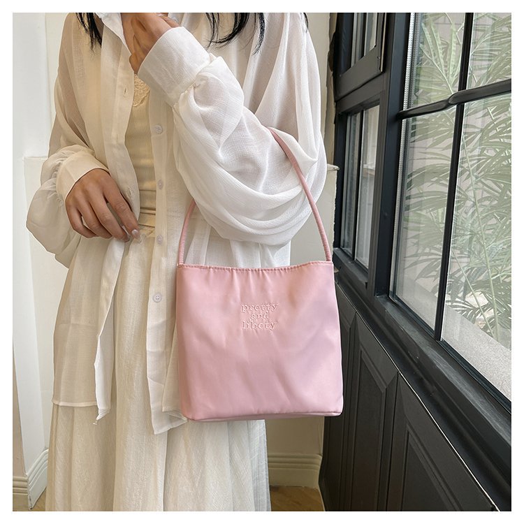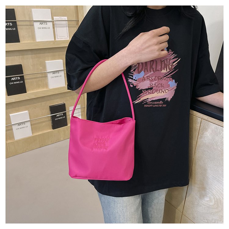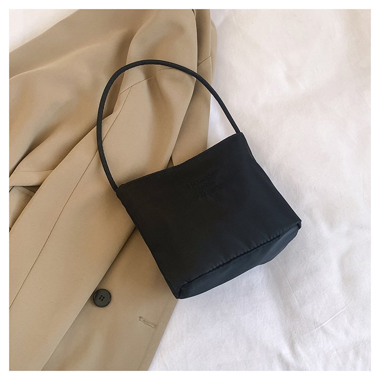2024 musim panas baru sederhana nilon tas ketiak Korea Selatan desain ceruk huruf bordir portabel tas bucket komuter
