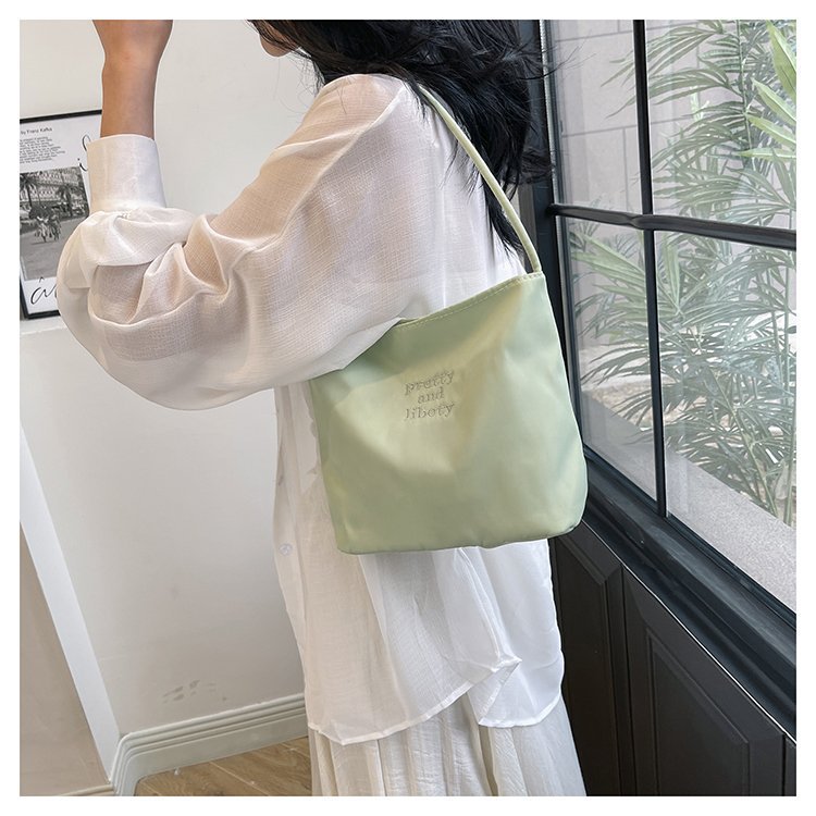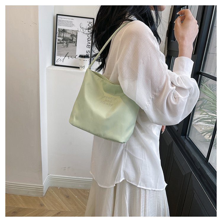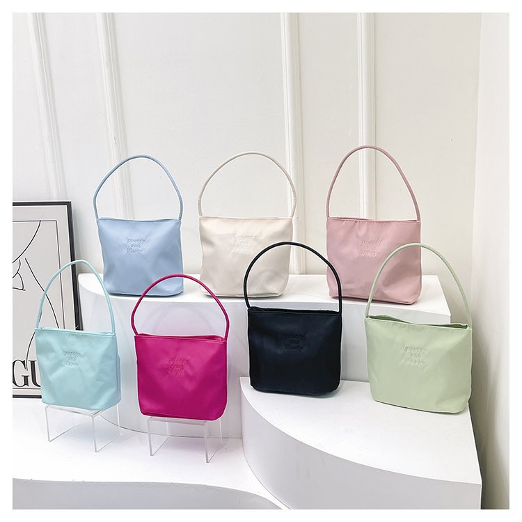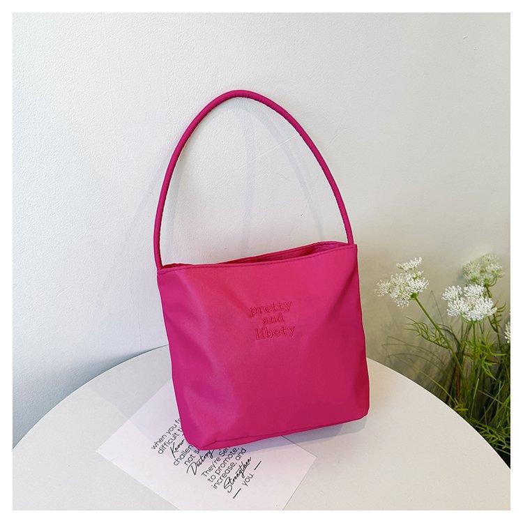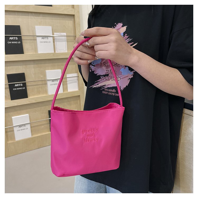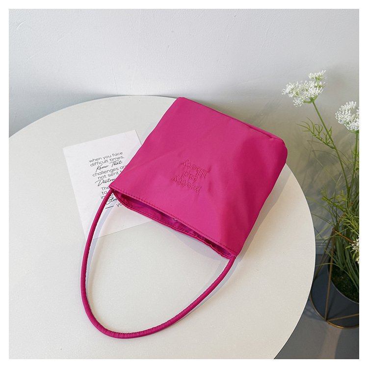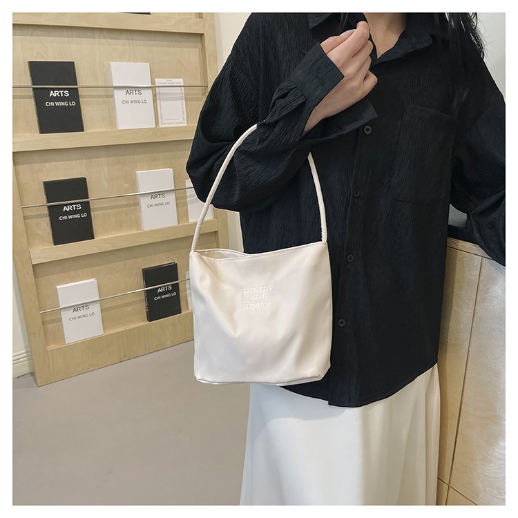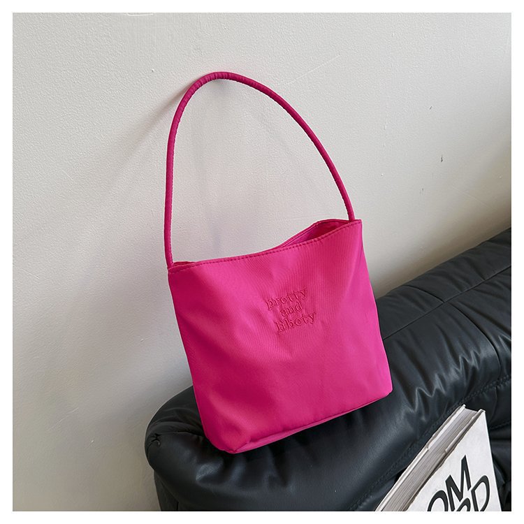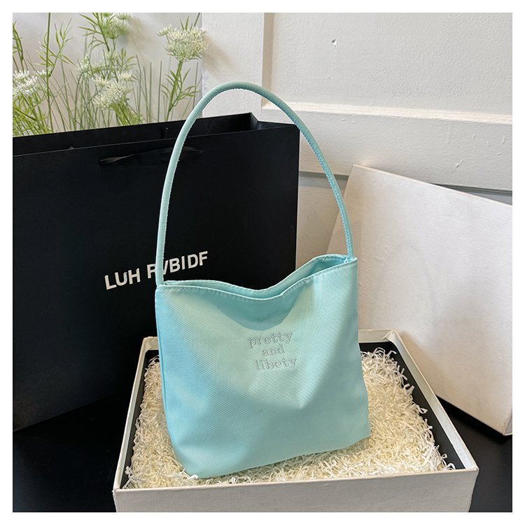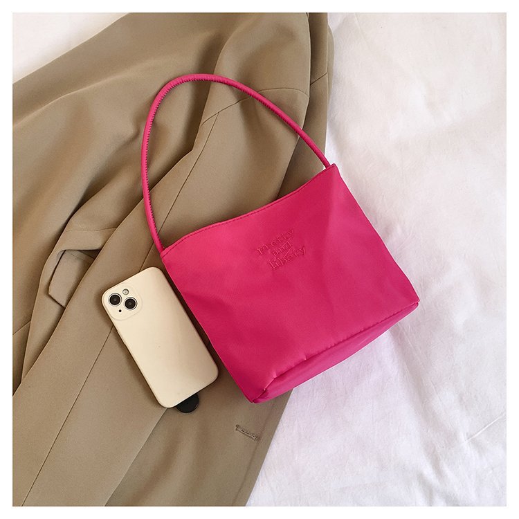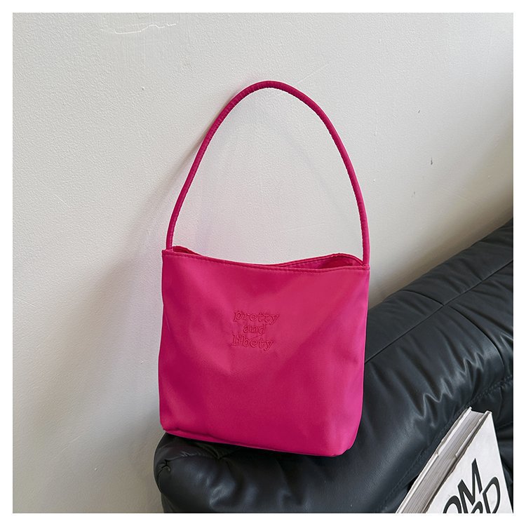 2024 musim panas baru sederhana nilon tas ketiak Korea Selatan desain ceruk huruf bordir portabel tas bucket komuter
