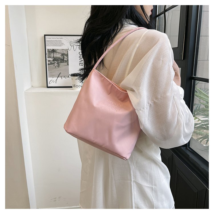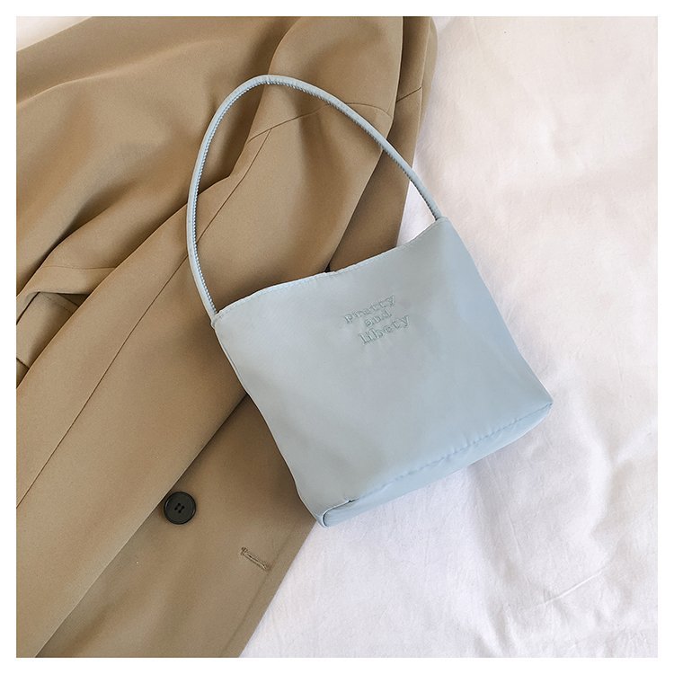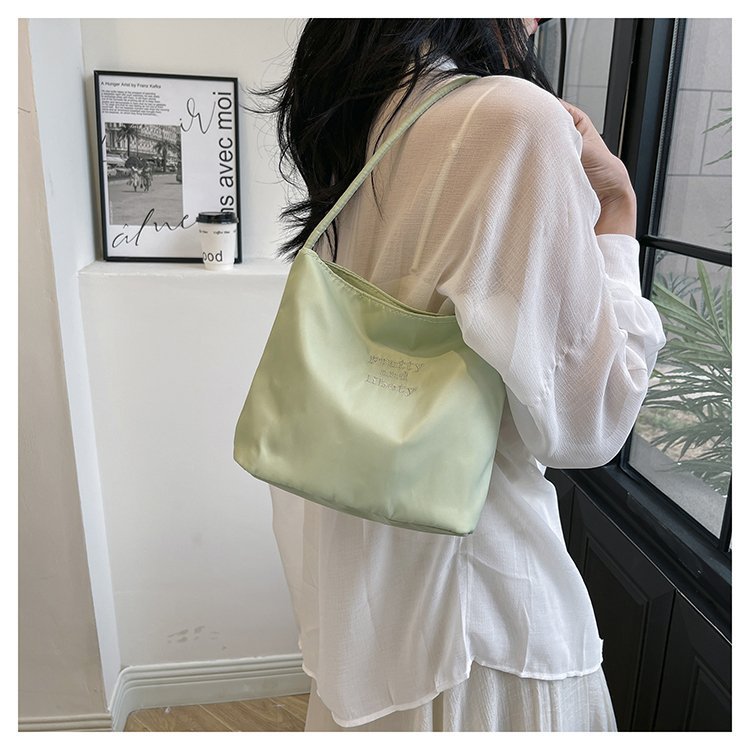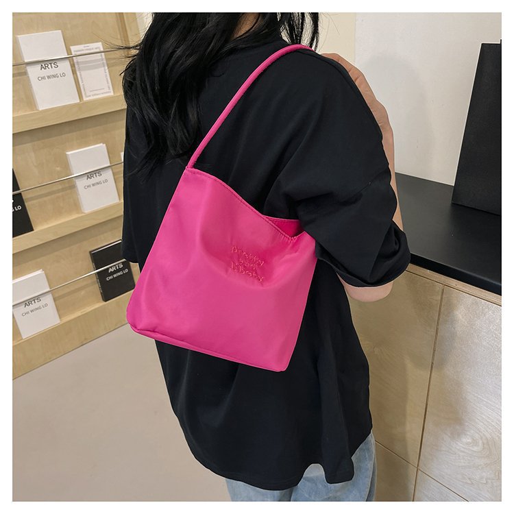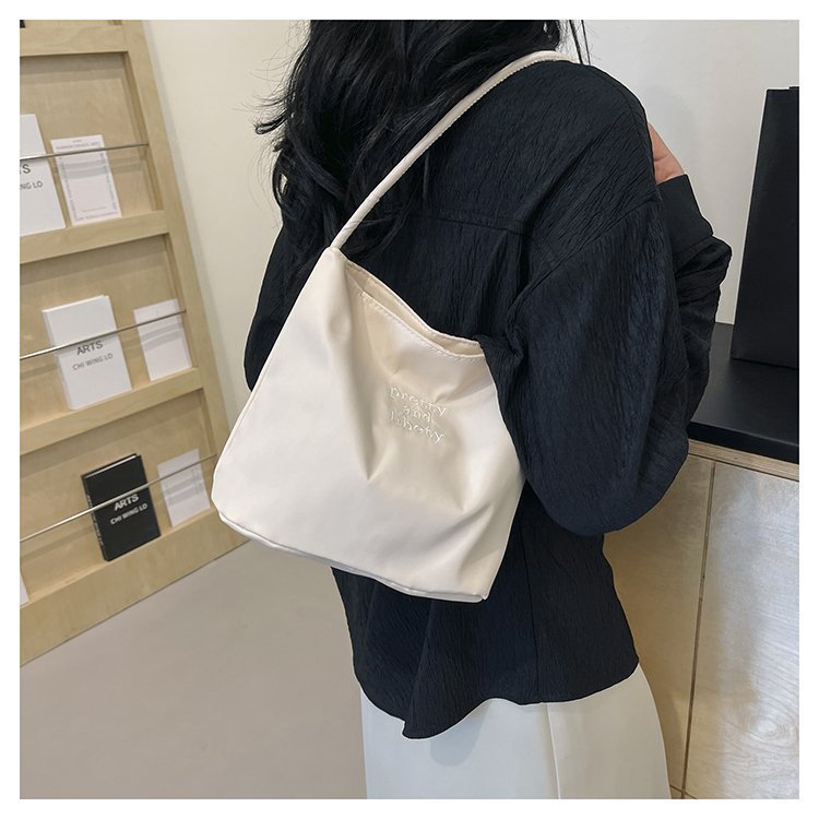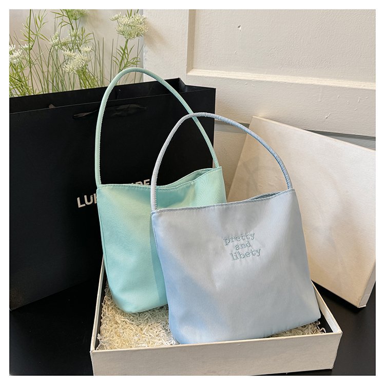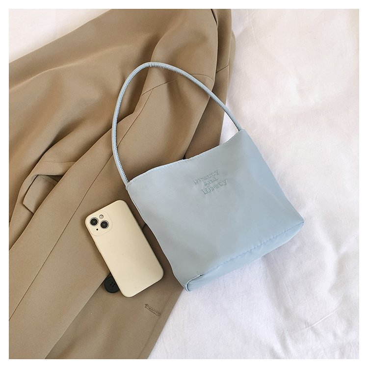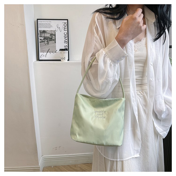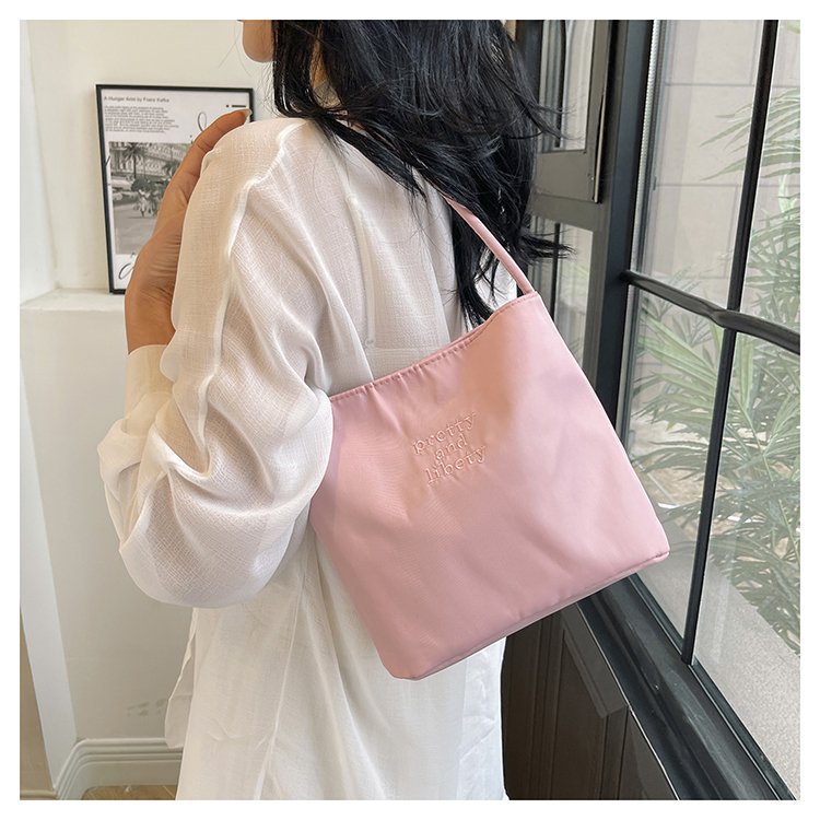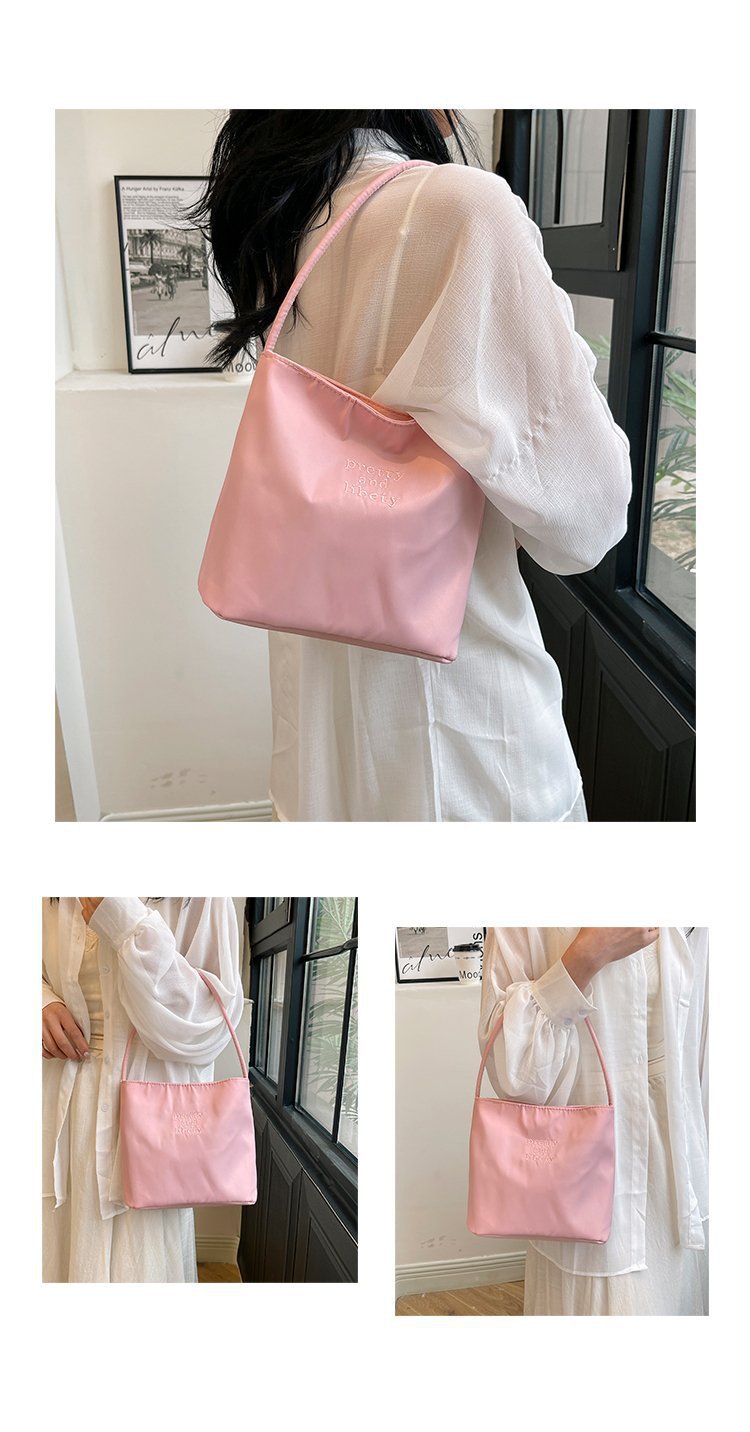 2024 musim panas baru sederhana nilon tas ketiak Korea Selatan desain ceruk huruf bordir portabel tas bucket komuter
