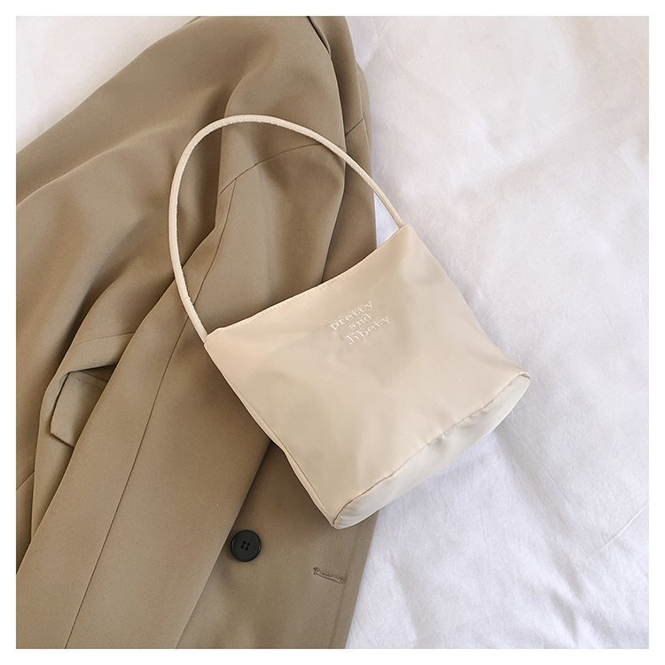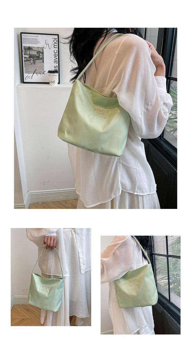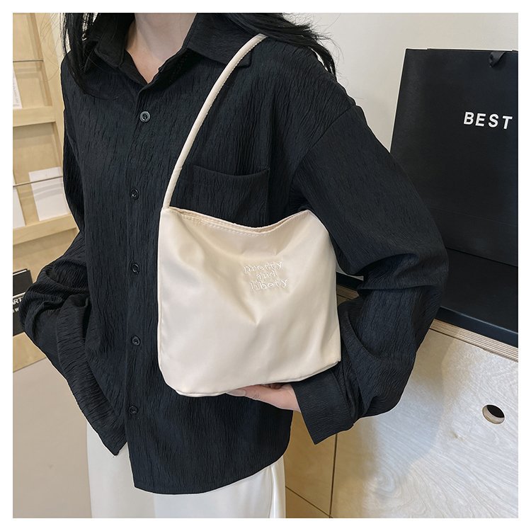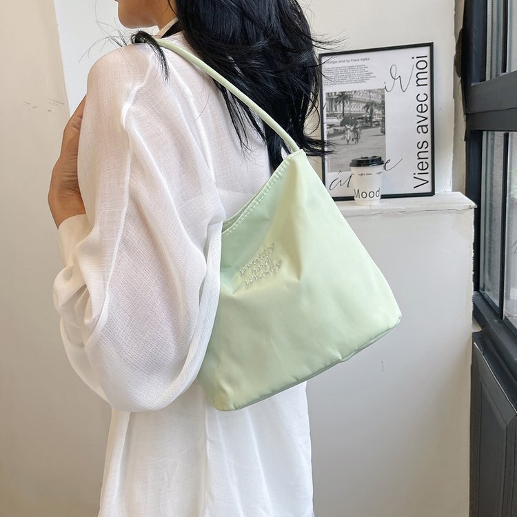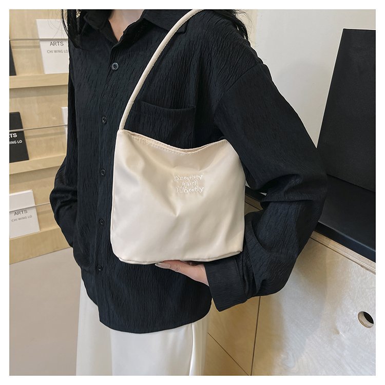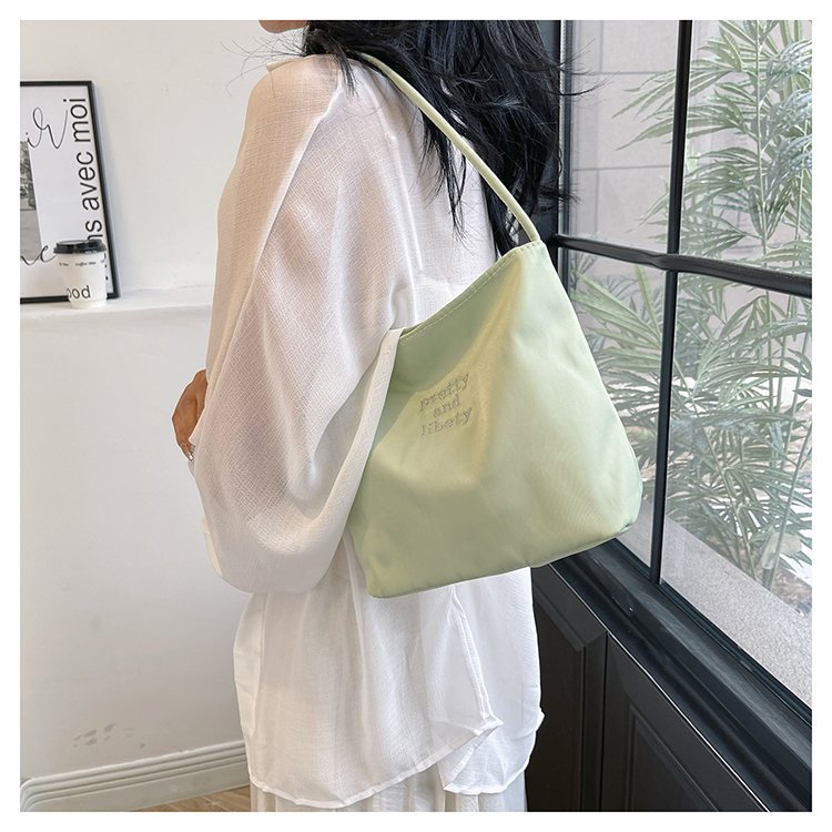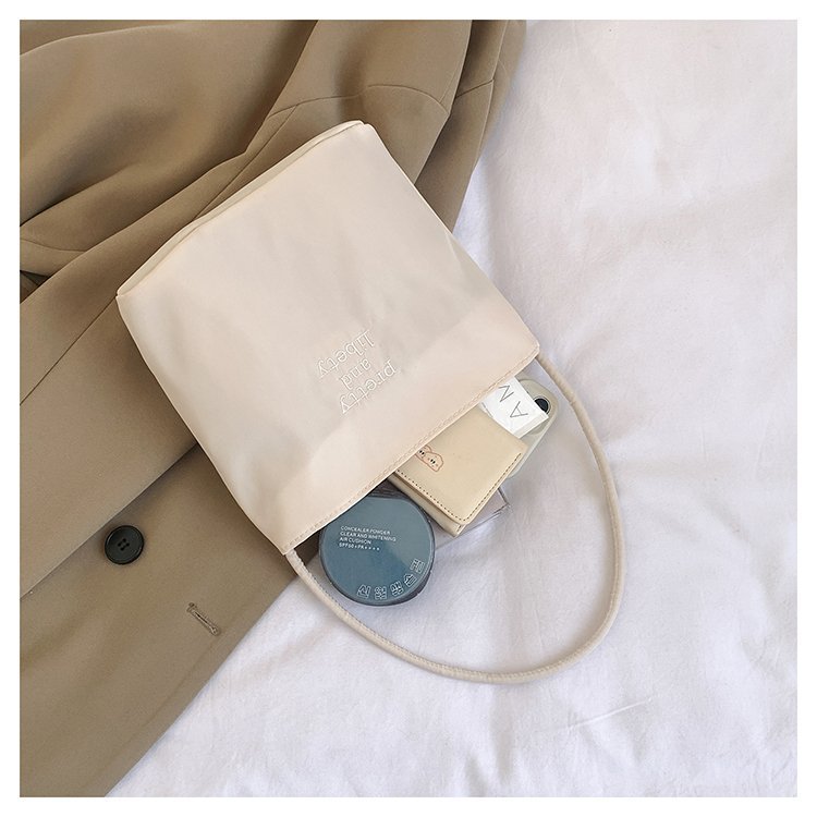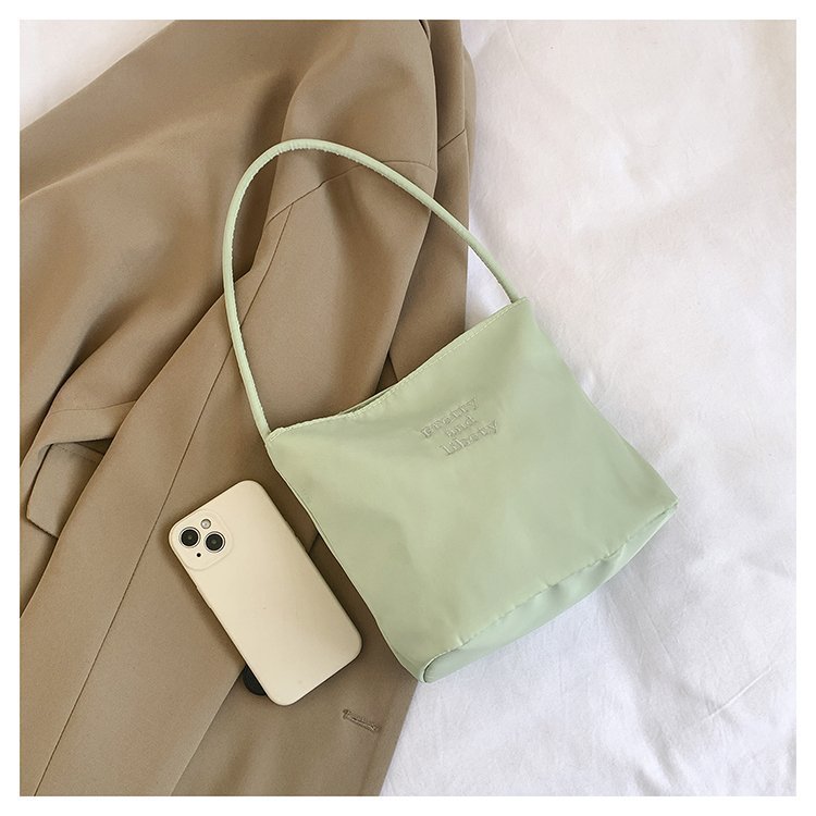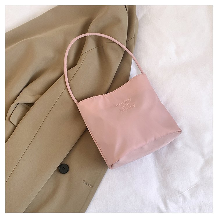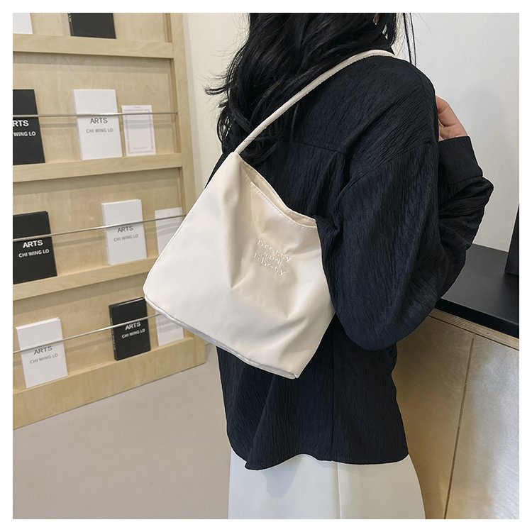 2024 musim panas baru sederhana nilon tas ketiak Korea Selatan desain ceruk huruf bordir portabel tas bucket komuter