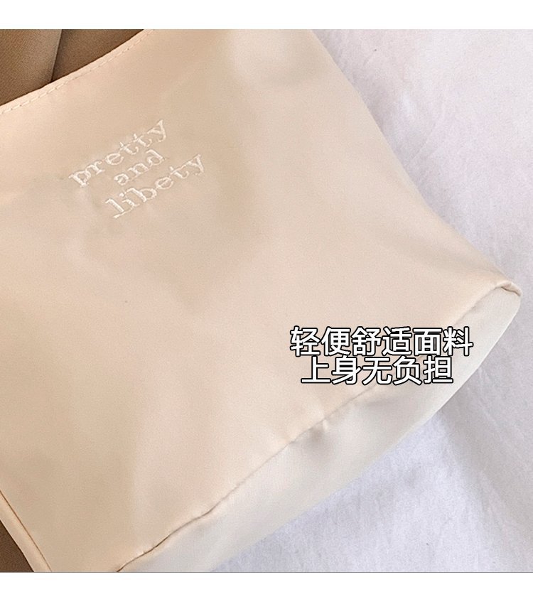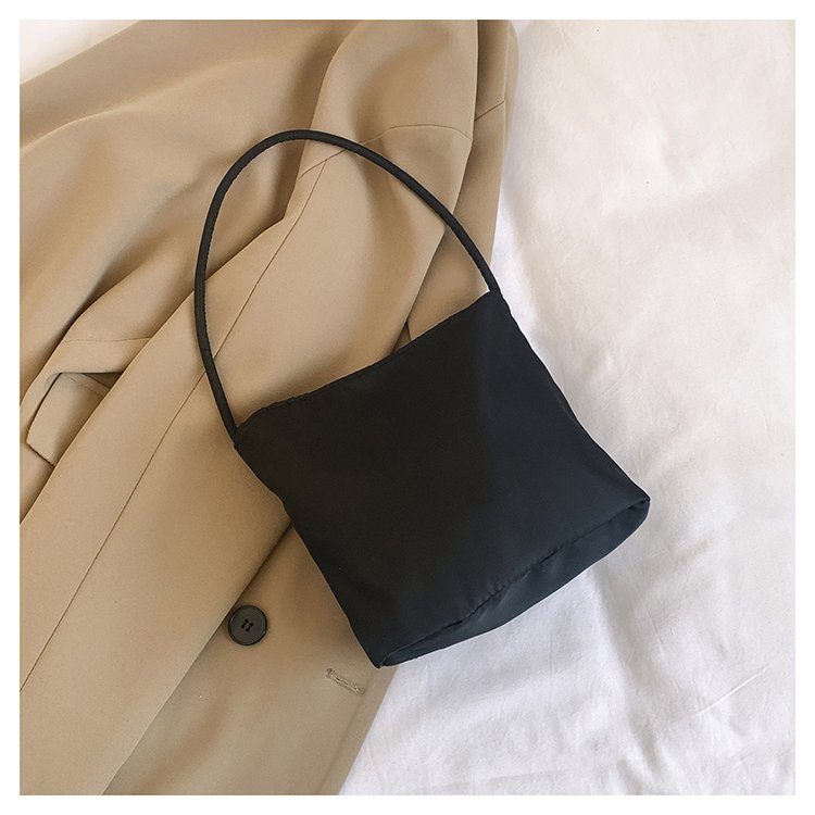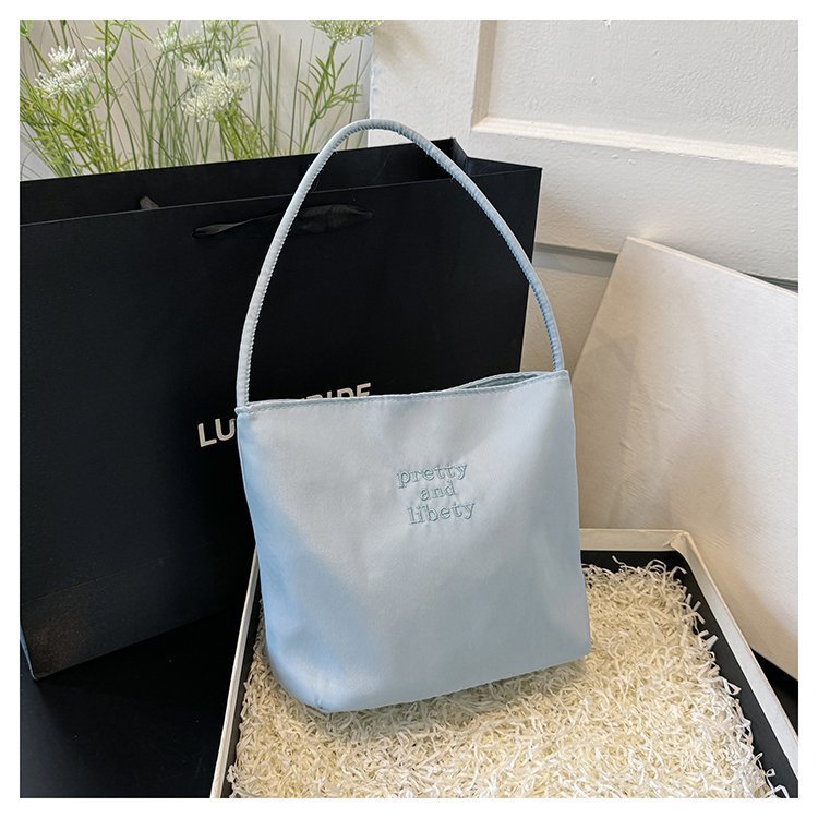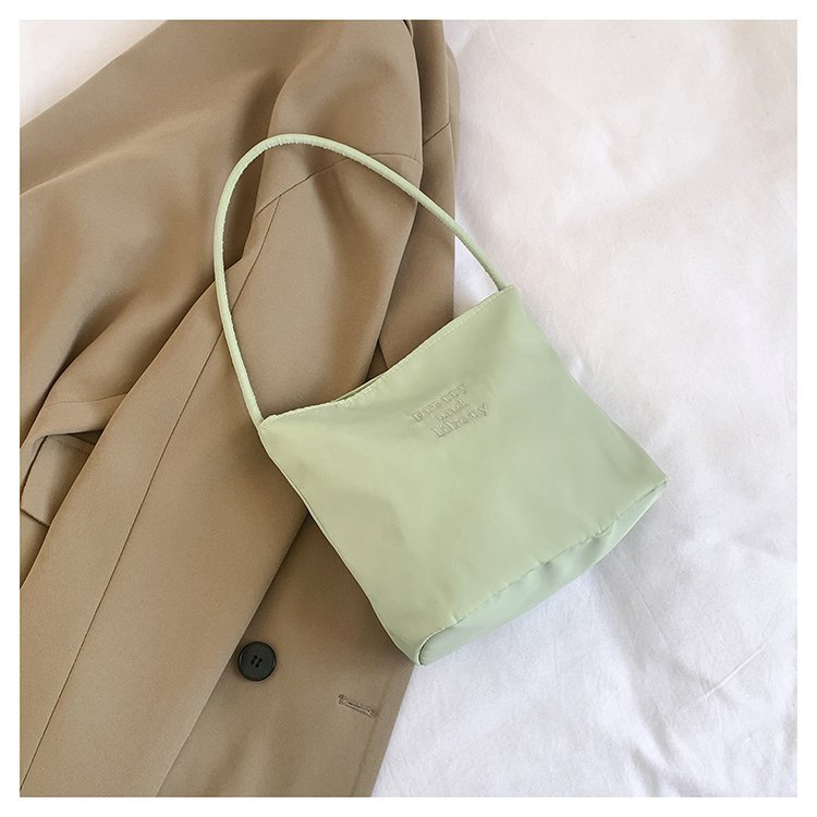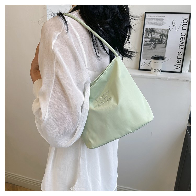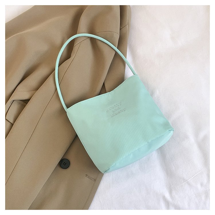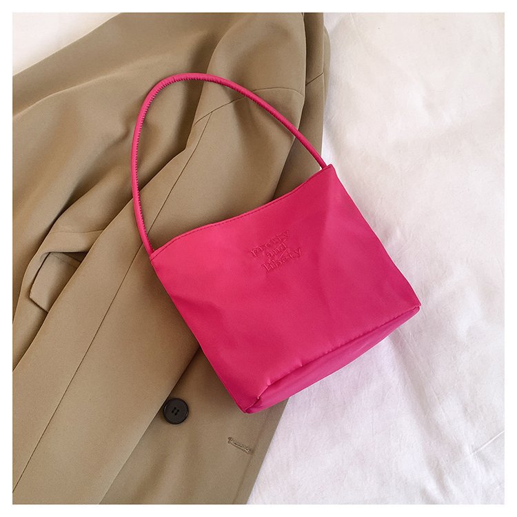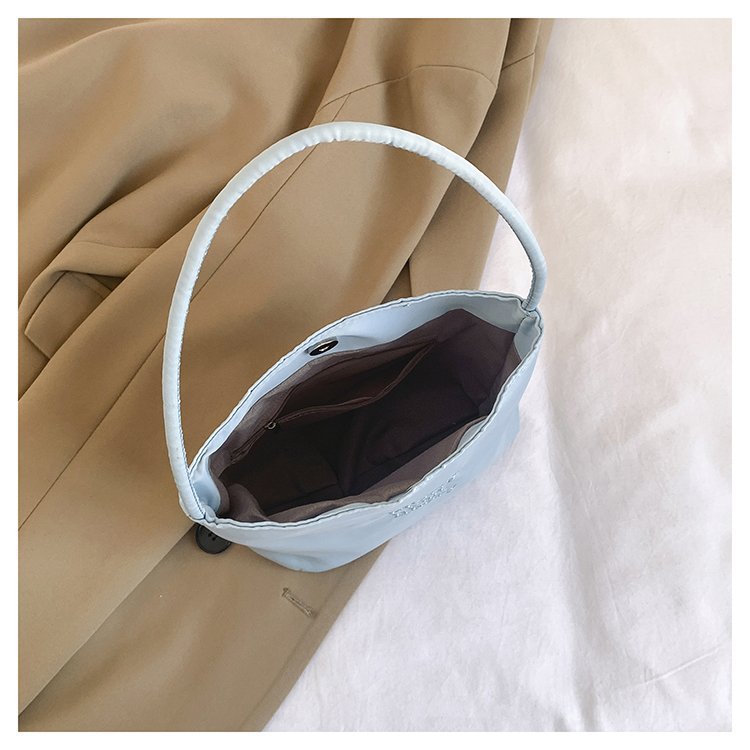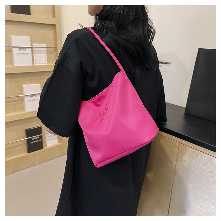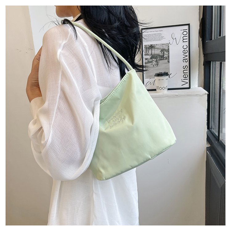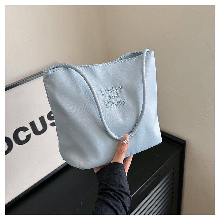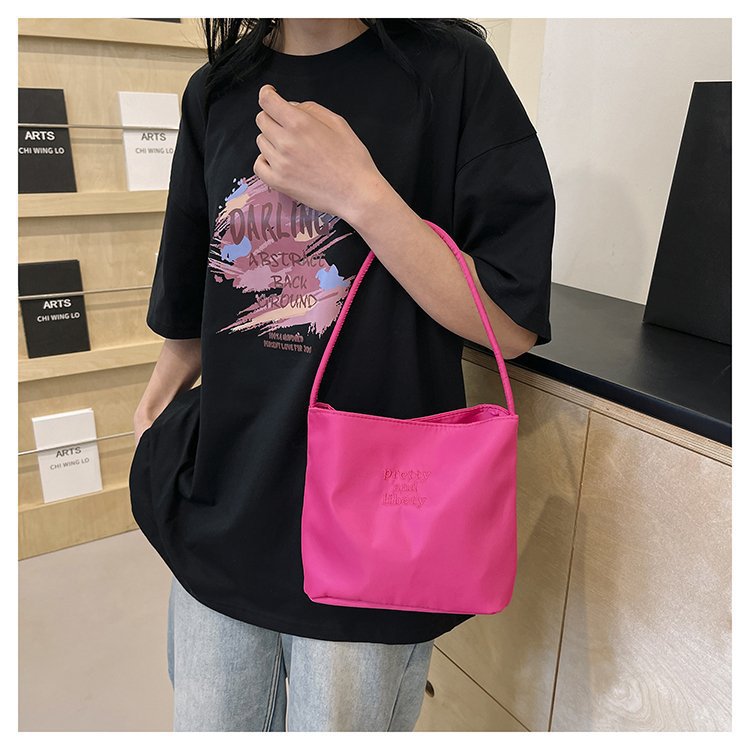 2024 musim panas baru sederhana nilon tas ketiak Korea Selatan desain ceruk huruf bordir portabel tas bucket komuter